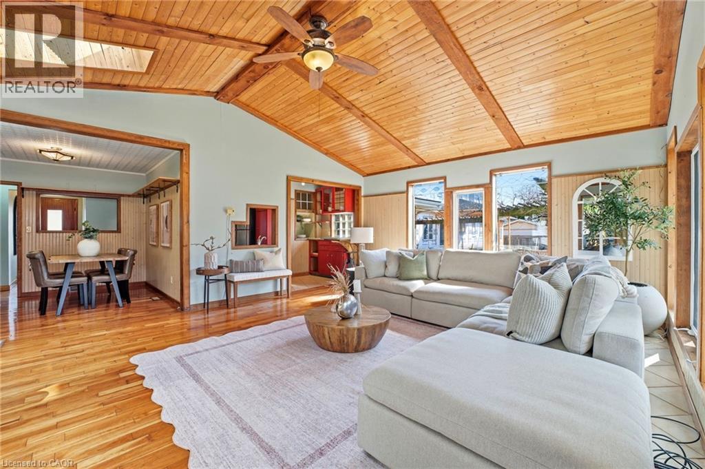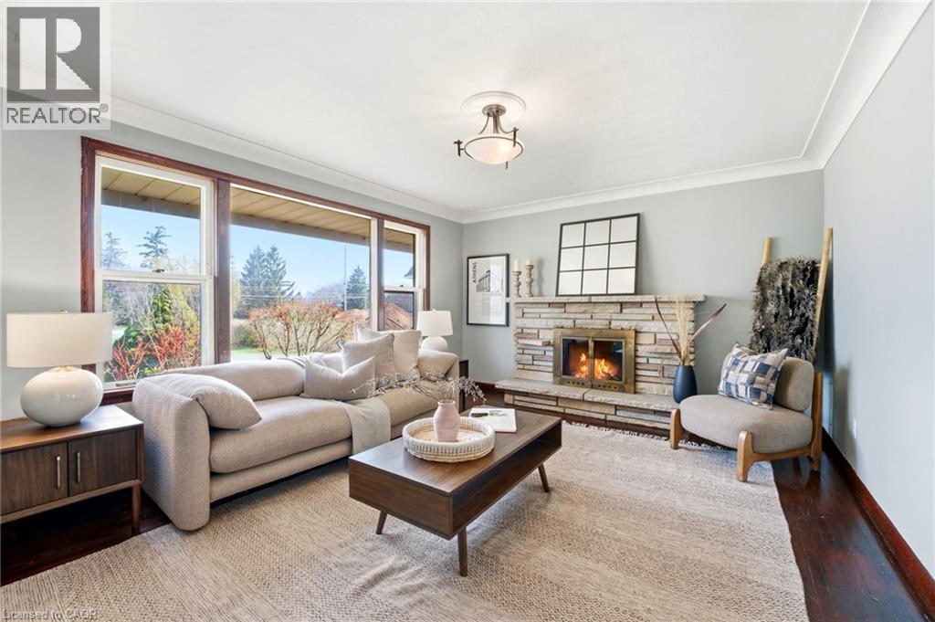 A rare blend of country-sized living with city convenience — right in the heart of Grimsby. Set on just under half an acre of mature, beautifully landscaped grounds, this charming 2-bedroom bungalow offers the perfect balance of privacy and accessibility. Inside, you’ll find a spacious family room with vaulted ceilings and a cozy gas potbelly stove, along with a separate formal living room featuring a wood-burning fireplace — ideal for entertaining or relaxing with family. Ideally located just minutes from the new West Lincoln Hospital, QEW, and GO Transit, commuting is effortless, with quick access to the U.S. border (30 minutes), Hamilton (20 minutes), and downtown Toronto (approximately one hour). Families will appreciate proximity to the new West Niagara Secondary School. Enjoy the serenity of a generous lot without sacrificing convenience — and if the existing home doesn’t suit your vision, this property also presents an exceptional opportunity to build your custom dream home in a highly desirable location. (id:64974)