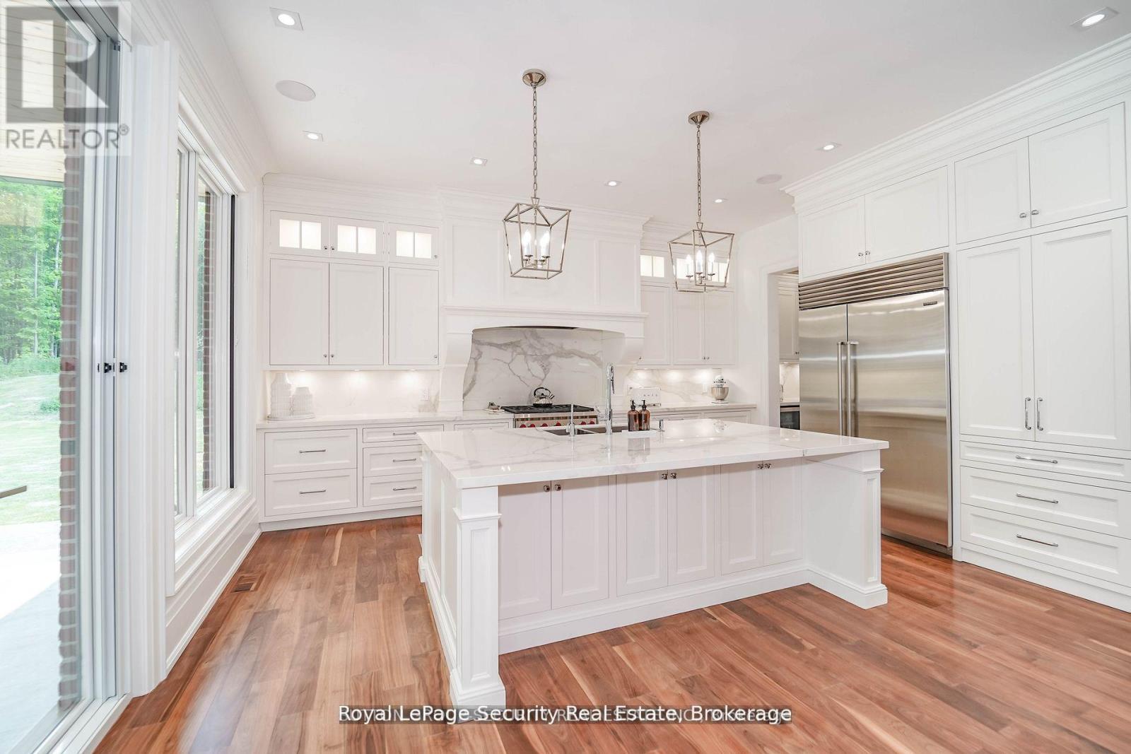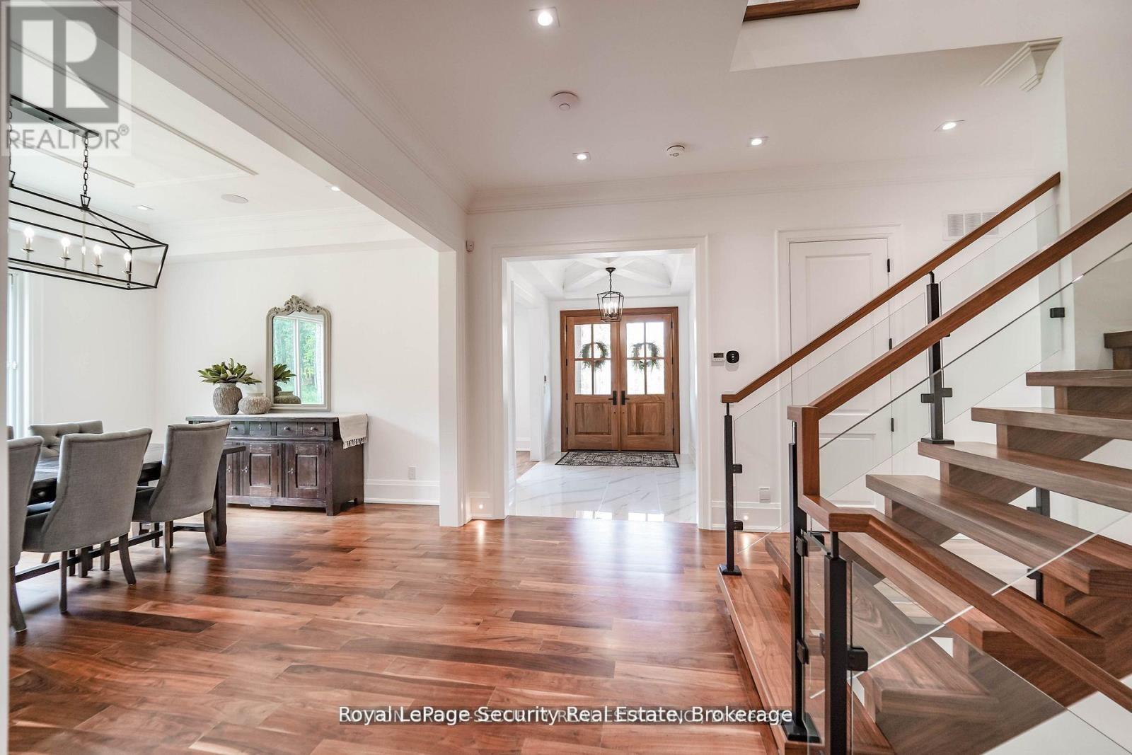 Spectacular Private Gated Country Estate. Designed & Completed in 2021 This Fortress Encompasses The Tranquility Of The Natural Beauty Of This 9 Acre Manicured Estate Along With A Residence Built With Impeccable Standards To Craftsmanship, Using The Finest Natural Materials& Finishes. Chiseled Natural Indiana Limestone & Brick Exterior, American Walnut Front Entrance Doors, Flooring & Staircases With Modern Glass Railing, Carved Natural Limestone Fireplace, All Automated Lighting/Sound/Temp/Security/ Camera Systems. Innovated Magic Window Company Throughout Including A Retractable Window Wall That Truly Brings Your Outdoor Living Experience To A New Level. The Outstanding Chef Inspired Framed Kitchen, Pantry & Butler Bar Has Been Crafted By Award Wining Renown Cabinet Makers "Bloomsbury Fine Cabinetry" Along With All Vanities, Mudroom & Laundry. Bookmarked Porcelain & Solid Walnut Countertops. Enjoy Multiple Main Floor Offices/Den/Art Room And A Heated 1700 sqft 6 Car Garage **EXTRAS** 6 Car Garage W/Car Wash Bay & Private Custom Bathroom. Gated Estate Has Over 500 Feet Of Cedar Fenced Frontage Along W/A Natural Spring Fed Pool W/Waterfall, Cedar Diving Dock, Beach & Firepit. Extensive Outdoor Lighting, Sound & Security (id:64974)