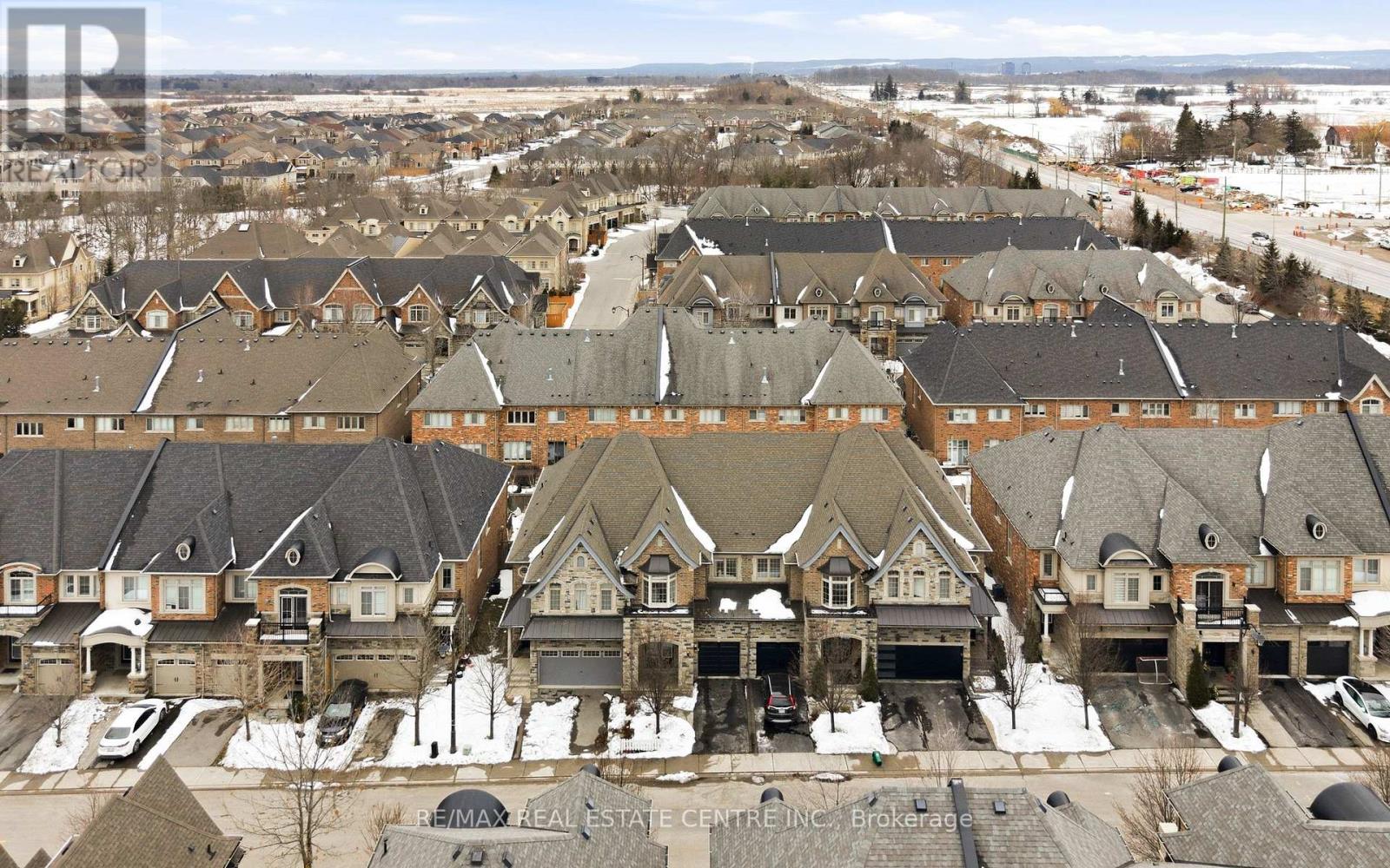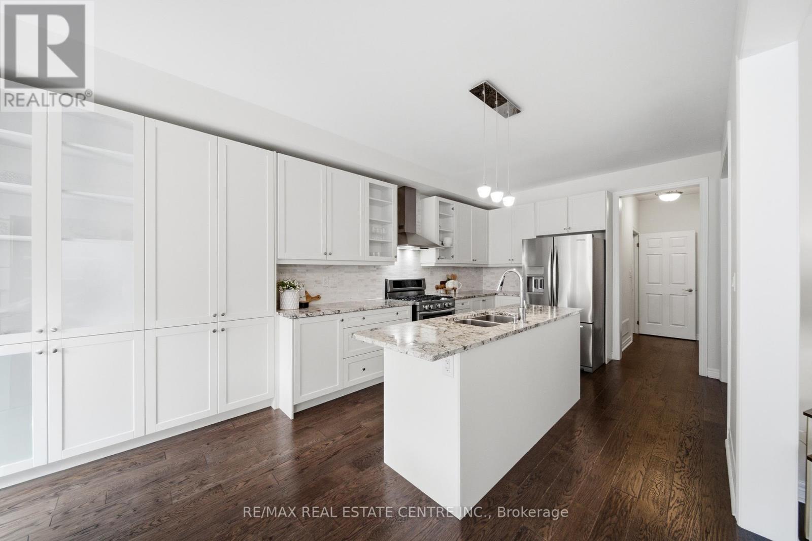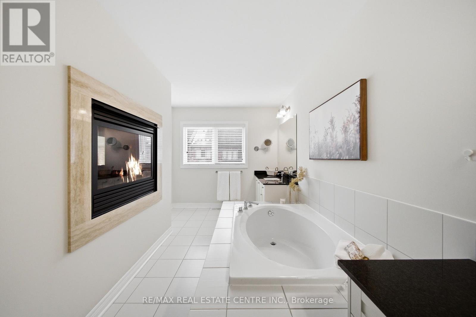 Welcome to this executive townhome nestled in a private enclave in Oakville's prestigious Bronte Creek community. Beautiful curb appeal with stone arched entrance, double front doors and lookout balcony. Designed for spacious and luxurious living, this home offers 9' ceilings and rich plank hardwood flooring throughout the main level. The open-concept layout features a combined living and dining room highlighted by crown moulding and elegant coffered ceilings, flowing seamlessly into the family room with a cozy gas fireplace. The modern white kitchen is beautifully appointed with extended cabinetry including pots-and-pan drawers, granite countertops, stylish backsplash, and stainless steel appliances. A sliding glass door leads to the fully fenced backyard with stone patio-perfect for outdoor entertaining. A convenient laundry room and powder room complete the main floor. Upstairs, the expansive primary retreat showcases a unique double-sided gas fireplace, walk-in closet, and spa-inspired ensuite with double sinks, granite counters, separate glass shower, and soaker tub. Two additional bright bedrooms, a full main bath, and a versatile second-floor office loft complete the upper level. The professionally finished lower level offers quality plank laminate flooring, pot lights, and exceptional additional living space including a large recreation room, teen retreat, additional 4th bedroom and full 4-piece bathroom. Ideally located within walking distance to schools, parks, and scenic trails, and just minutes to shopping, transit, and major highways-this home delivers the perfect blend of comfort and convenience. (id:64974)