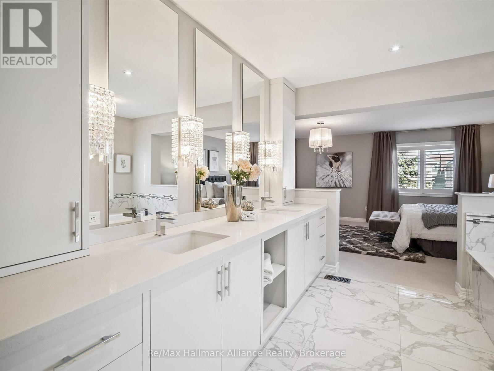Experience elevated family living in sought-after Lakeshore Woods with this breathtaking, extensively upgraded home offering over 4,500 sq ft of luxurious finished living space (including 3,035 sq ft above grade). Showcasing a striking brick and stucco exterior, a newer front door, and timeless curb appeal, the home opens to a bright, sophisticated interior highlighted by a dramatic 20-foot, double-height family room that sets the tone for refined everyday living and effortless entertaining. The gourmet kitchen is beautifully appointed with upscale cabinetry and designed as the heart of the home, flowing seamlessly to an impressive formal dining room with servery-perfect for hosting family gatherings and celebrations. Gleaming hardwood floors add warmth and elegance throughout. Retreat to the spacious primary suite, featuring a stunning, recently fully renovated 5-piece ensuite for spa-like comfort. Thoughtful functionality continues with a main-floor office, ideal for working from home, and main-floor laundry for added convenience. Step outside to a private backyard oasis with fully landscaped and interlocked grounds, a pergola, low-maintenance gardens, and a multi-level deck-an ideal setting for summer dining, relaxation, and entertaining. Perfectly located just minutes to Lake Ontario, Bronte Harbour waterfront, top shopping, highways, and the GO Station, this is a rare opportunity to own an exceptional home in one of Oakville's most desirable lake-adjacent communities. (id:64974)