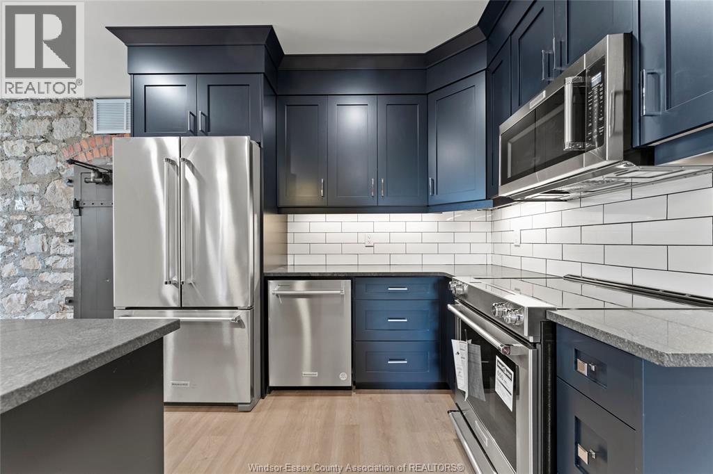 WELCOME TO THE 2042 SQFT MAJOR MODEL AT THE HIGHLY ANTICIPATED LOFTS AT ST. ANTHONY. ENJOY THE PERFECT BLEND OF OLD WORLD CHARM & MODERN LUXURY WITH THIS UNIQUE LOFT STYLE CONDO. FEATURING GLEAMING ENGINEERED HARDWOOD FLOORS, QUARTZ COUNTER TOPS IN THE SPACIOUS MODERN KITCHEN FEATURING LARGE CENTRE ISLAND AND FULL APPLIANCE PACKAGE. 2 SPACIOUS BEDROOMS COMPLETE WITH PRIMARY SUITE WITH ENSUITE BATH & WALK IN CLOSET. IN SUITE LAUNDRY. ADDITIONAL DEN PERFECT FOR AN OFFICE SPACE. BRIGHT AIRY LIVING ROOM WITH PLENTY OF WINDOWS. PRIVATE 295 SQ FT WALK OUT TERRACE WITH BBQ HOOK UP. THIS ONE OF A KIND UNIT FEATURES PLENTY OF ORIGINAL EXPOSED BRICK AND STONE. SITUATED IN A PRIME AMHERSTBURG LOCATION WALKING DISTANCE TO ALL AMENITIES INCLUDING AMHERSTBURG'S DESIRABLE DOWNTOWN CORE. DON'T MISS YOUR CHANCE TO BE PART OF THIS STUNNING DEVELOPMENT. (id:64974)