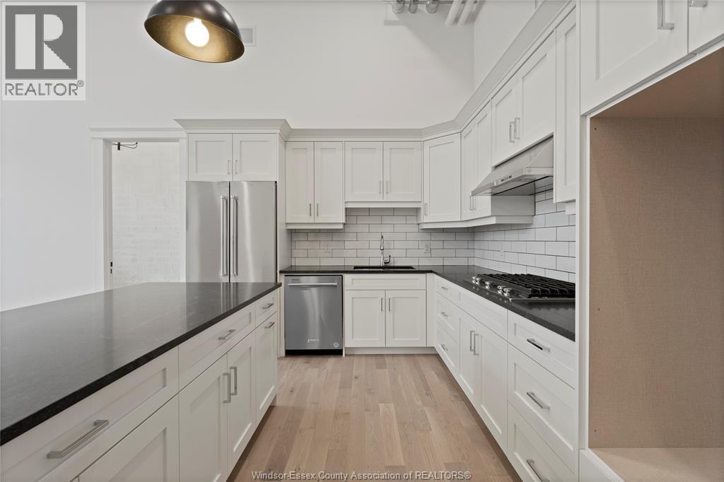 WELCOME TO THE 1405 SQFT ESSEX MODEL AT THE HIGHLY ANTICIPATED LOFTS AT ST. ANTHONY. ENJOY THE PERFECT BLEND OF OLD WORLD CHARM & MODERN LUXURY WITH THIS UNIQUE LOFT STYLE CONDO - FEATURING GLEAMING ENGINEERED HARDWOOD FLOORS, QUARTZ COUNTER TOPS IN THE SPACIOUS MODERN KITCHEN FEATURING LARGE CENTRE ISLAND AND FULL APPLIANCE PACKAGE- 2 SPACIOUS BEDROOMS COMPLETE WITH PRIMARY SUITE WITH WALK IN CLOSET AND BEAUTIFUL 5 PIECE ENSUITE BATHROOM. IN SUITE LAUNDRY. BRIGHT AIRY LIVING ROOM WITH PLENTY OF WINDOWS. PRIVATE BALCONY WITH BBQ HOOKUP. THIS ONE OF A KIND UNIT FEATURES SOARING CEILINGS & PLENTY OF ORIGINAL EXPOSED BRICK AND STONE. SITUATED IN A PRIME AMHERSTBURG LOCATION WALKING DISTANCE TO ALL AMENITIES INCLUDING AMHERSTBURG' S DESIRABLE DOWNTOWN CORE. DON'T MISS YOUR CHANCE TO BE PART OF THIS STUNNING DEVELOPMENT. (id:64974)