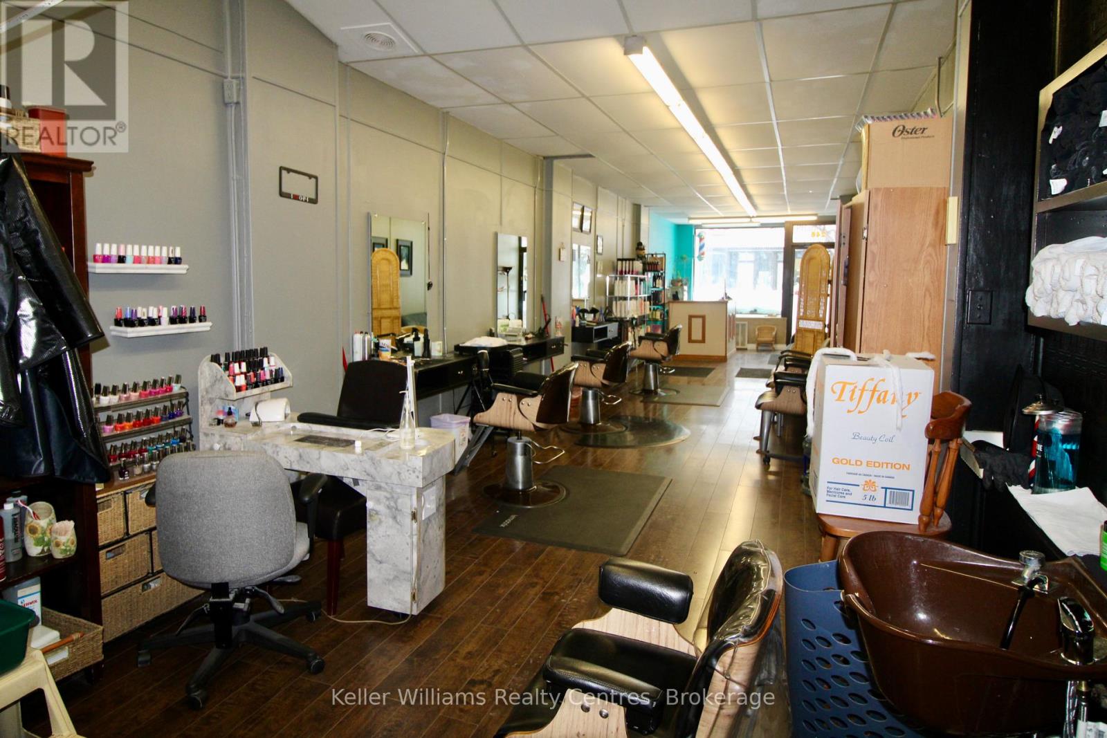 Well-maintained commercial building offering two separately metered commercial units in a prime downtown Walkerton location. This versatile property is ideal for owner-operators or investors seeking strong exposure and reliable income potential. The main unit (approx. 1,940 sq. ft.) is configured for retail use and will be provided with vacant possession, allowing you to establish your own business or select your own tenant. The space features a large open retail area, multiple storage spaces, a 2-piece washroom, kitchenette area, and a finished workshop at the rear. The workshop has been fully finished & insulated, and includes a concrete floor, separate entrance, and an 8' x 7' garage door opening to the rear laneway with parking for up to four vehicles. Major mechanical updates were completed in 2022, including a new gas forced-air furnace, air conditioning, and hot water tank. This unit is in great condition and truly move-in ready. The second unit (approx. 1,276 sq. ft.) is currently set up as a salon and includes a 2-piece washroom and laundry. A strong long-term tenant is in place, providing consistent rental income to help offset operating costs or mortgage payments. Situated on Walkerton's main street with excellent visibility and street parking directly out front, this property presents a fantastic opportunity for both business owners and commercial investors alike. (id:64974)