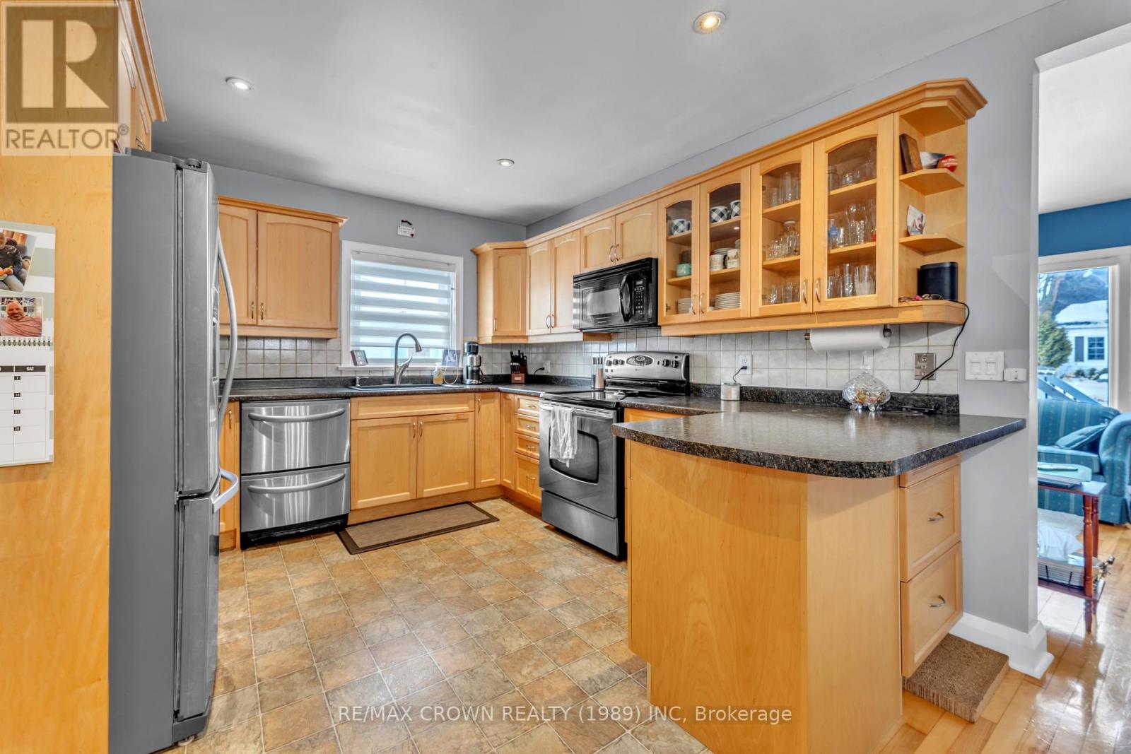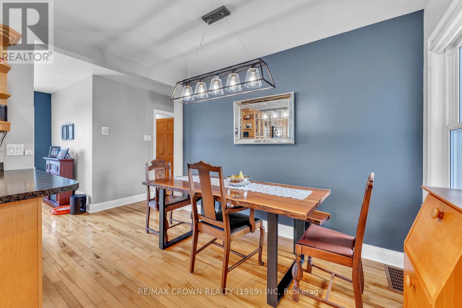 Welcome to 247 Elmwood, a well maintained raised bungalow set in a friendly, family oriented neighborhood close to schools, the hospital, and everyday amenities. This home is a great opportunity for first time buyers, young families, or investors looking for a practical property in a convenient location. The main level offers three bedrooms along with a full bathroom, making it ideal for comfortable day to day living. Hardwood floors run throughout the main living areas, adding warmth and character. A spacious foyer welcomes you in and leads directly to the eat in kitchen and dining area, ample cabinetry, and plenty of room for a family table. From there, you move into the bright living room, where large windows bring in an abundance of natural light. Down the hall are two well sized bedrooms and the main bathroom, while the third bedroom is positioned just off the main living area, offering flexibility for a nursery, home office, or guest room. The lower level provides additional living space with a cozy rec room featuring a wood fireplace, along with a second bathroom, a large utility room, and generous storage space that works well for a busy household. Outside, the fully fenced backyard offers privacy and space to relax or entertain, complete with a deck and hot tub ready to enjoy. A detached single car garage adds everyday convenience and additional storage. With a functional layout, great outdoor space, and room to grow, 247 Elmwood is a smart move whether you're entering the market, expanding your portfolio, or settling into your next family home. (id:64974)
