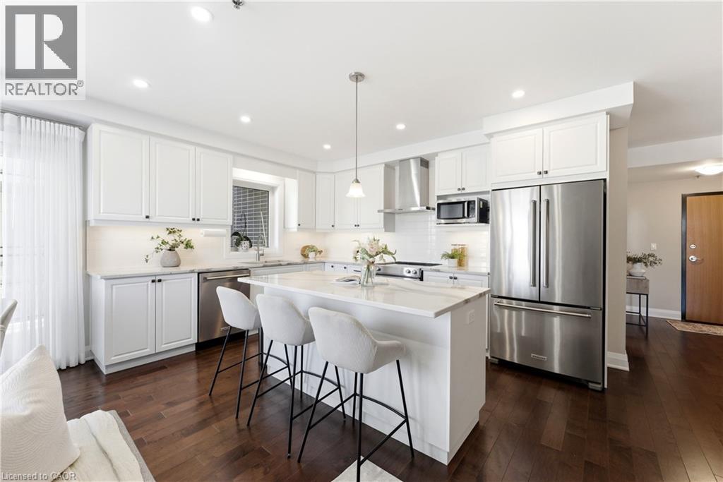 Experience the height of urban sophistication at Unit 306, 247 Grey Silo Road, located in Waterloo’s premier Carriage Crossing neighbourhood. This expansive, 1,100+ square foot residence is designed for those who appreciate high-end finishes and a seamless, open-concept flow. The interior is anchored by a gourmet kitchen featuring sleek stone countertops, premium stainless steel appliances, and a substantial centre island that serves as the focal point for both daily life and upscale entertaining. The layout is thoughtfully partitioned, offering two generous bedrooms including a primary suite with a double-sided walkthrough closet and a private, modern ensuite. Rare for condo living, the massive wrap-around balcony offers a commanding outdoor space for relaxation or hosting guests. Residents benefit from an elite suite of building amenities, from the designer rooftop terrace to secure underground parking. Situated just moments from the Grey Silo Golf Course, RIM Park and the region's best dining and shopping, this property represents a top-tier opportunity to secure a residence in one of the city’s most coveted and well-established communities. (id:64974)
