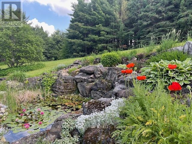 Make lifelong memories at this amazing refined country estate offering privacy, luxury, and an exceptional lifestyle just minutes from Orangeville. Set on a paved road amid Mono's rolling hills, this four-bedroom, three-bathroom sidesplit is surrounded by mature trees and offers a meticulously maintained 5 acres, delivering tranquil rural living with everyday convenience. Steps from the Bruce Trails and minutes to Hockley Valley Resort and Adamo Estate Winery, the location blends nature, recreation, and refined leisure. Professionally landscaped, the grounds create a private resort-style retreat. Meandering gardens, elegant lighting, and a stunning inground pool framed by expansive travertine patios set the stage for unforgettable entertaining. Deck, rockery with water feature, large shed/workshop, fenced paddock, and serviced barn site (hydro & water in place) add versatility and hobby farm potential. Inside, the home is thoughtfully designed with around 3000 sq/ft of living space. Eat-in kitchen features quartz countertops, induction cooktop, built-in wall oven, breakfast bar seating, and generous cabinetry. Dining area walks out to the deck for seamless indoor-outdoor living. A sunken living room with 9' ceilings and striking fieldstone wood-burning fireplace offers both grandeur and comfort. Oversized insulated 2 car garage and main floor powder room complete this level. Upstairs, three spacious bedrooms include two with custom built-ins. Primary suite overlooks the gardens and pool, offering a walk-in closet and four-piece ensuite with heated floors and double sinks. A finished bonus level provides a family room, fourth bedroom or office and secret office/craft room with built-ins and loft storage access. Lower level features a large recreation room with electric fireplace and walkout to the pool, plus a well-equipped laundry room. Extensive upgrades include a whole-home reverse osmosis system, natural gas heating, 400-amp service, fibe internet at the road. (id:64974)