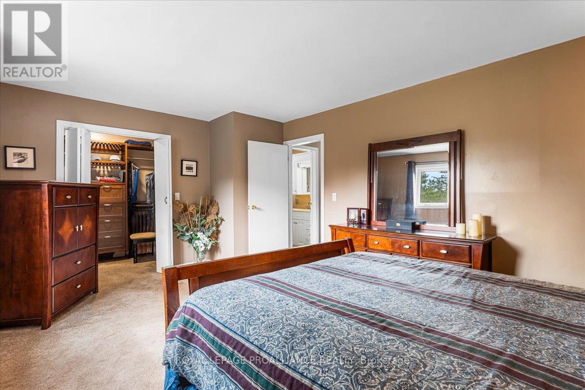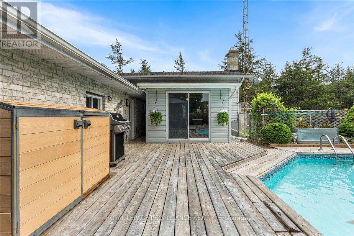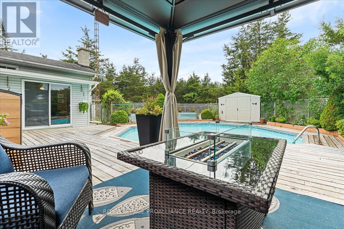 Escape the hustle without sacrificing convenience on this private, three-lined 2+ acre retreat just 8 minutes to the 401 and 15 minutes to town. Tucked away on a quiet private road, this spacious home offers 4 generous bedrooms, a beautifully renovated bathroom, granite kitchen counters, a bright sun-room, and a massive re room with kitchenette-perfect for entertaining or multi-generational living. Step outside to your own backyard oasis featuring a new deck, gazebo, in-ground pool, and fully fenced, landscaped yard. A double car garage, large gravel drive, and plenty of space for trailers or toys complete the package. With a reliable well, water softener, RO & UV systems, newer roof and fresh paint throughout, this is turnkey country living at its best. No offer hold-move in and enjoy. (id:64974)