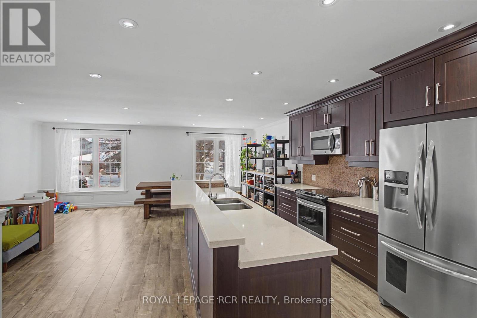 This beautifully renovated 3-bedroom raised bungalow is perfectly located in the heart of Newmarket, directly across from Dennis Park, and situated in a high-demand, family-friendly neighborhood close to schools, parks, transit, and all major amenities. Just minutes from Upper Canada Mall, this move-in-ready home offers both comfort and convenience. Step outside to a private backyard-a peaceful retreat ideal for entertaining, gardening, or simply relaxing. The main level features a bright, open-concept living and dining area filled with natural light, complemented by a newer gourmet kitchen with contemporary cabinetry, newer countertops, and stainless steel appliances. Three generous bedrooms provide ample space for families, guests, or a home office. Beautiful Stone Fireplace rough in. The fully finished basement adds valuable living space, featuring a versatile recreation room, Wet Bar, a 3 piece bathroom, and potential for an in-law suite or private work-from-home setup. This exceptional home is the perfect blend of modern updates, functionality, and an unbeatable central location. (id:64974)