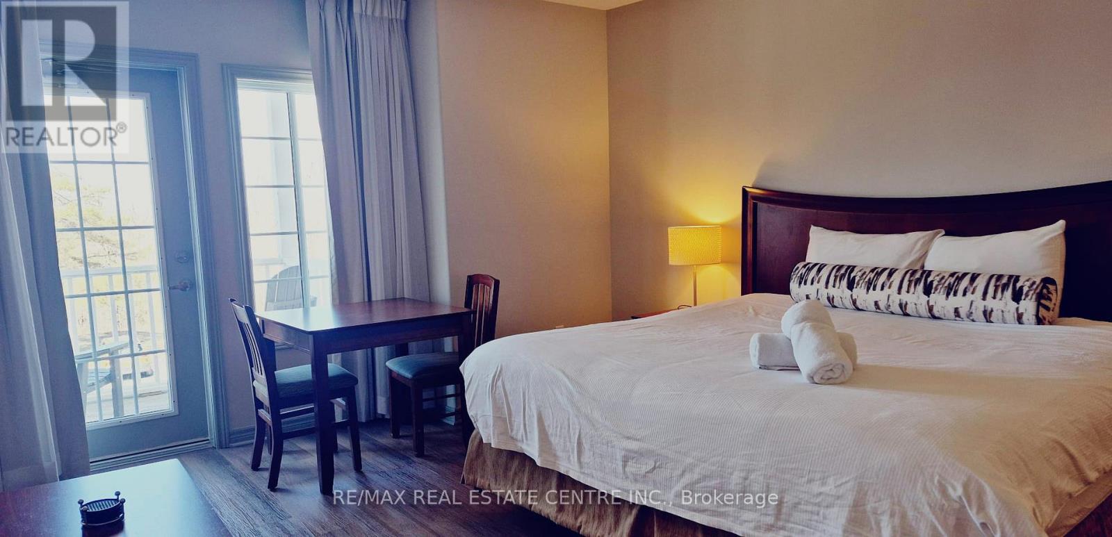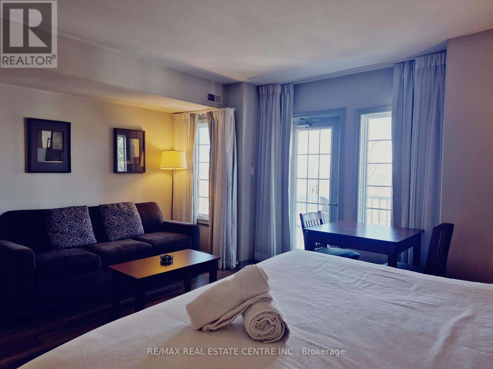 Welcome to Highland Estates, one of Oro-Medonte's most desirable areas! This fully furnished studio is carpet free and move-in ready. Condo is perfect for year-round enjoyment. Located within a vibrant resort-like community, you'll be surrounded by scenic trails, top-rated golf courses, a luxurious spa, BBQ, both indoor and outdoor pools, sauna, gym. Inside, enjoy the comfort of a well-appointed space featuring a king bed, pull-out sofa bed, flat-screen TV, and a convenient kitchenette with a microwave, mini-fridge, utensils, and more. (id:64974)
