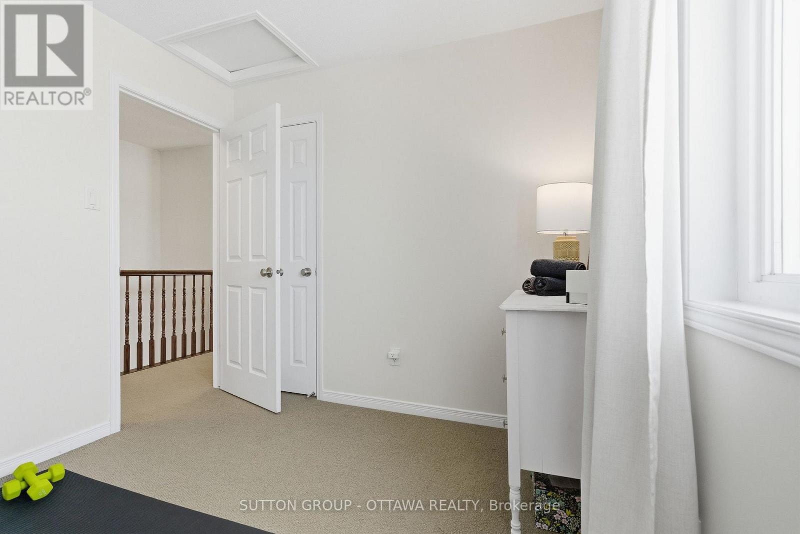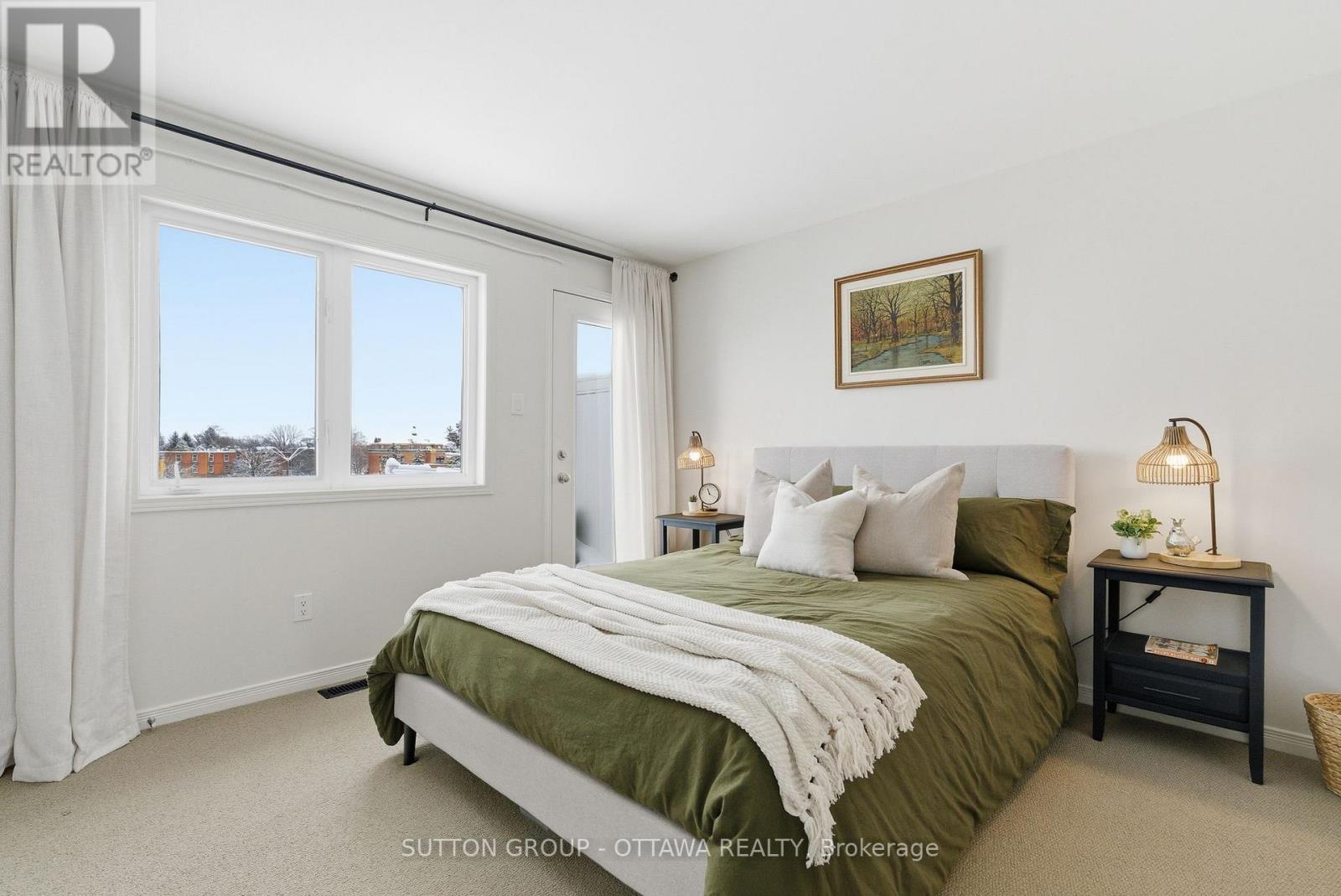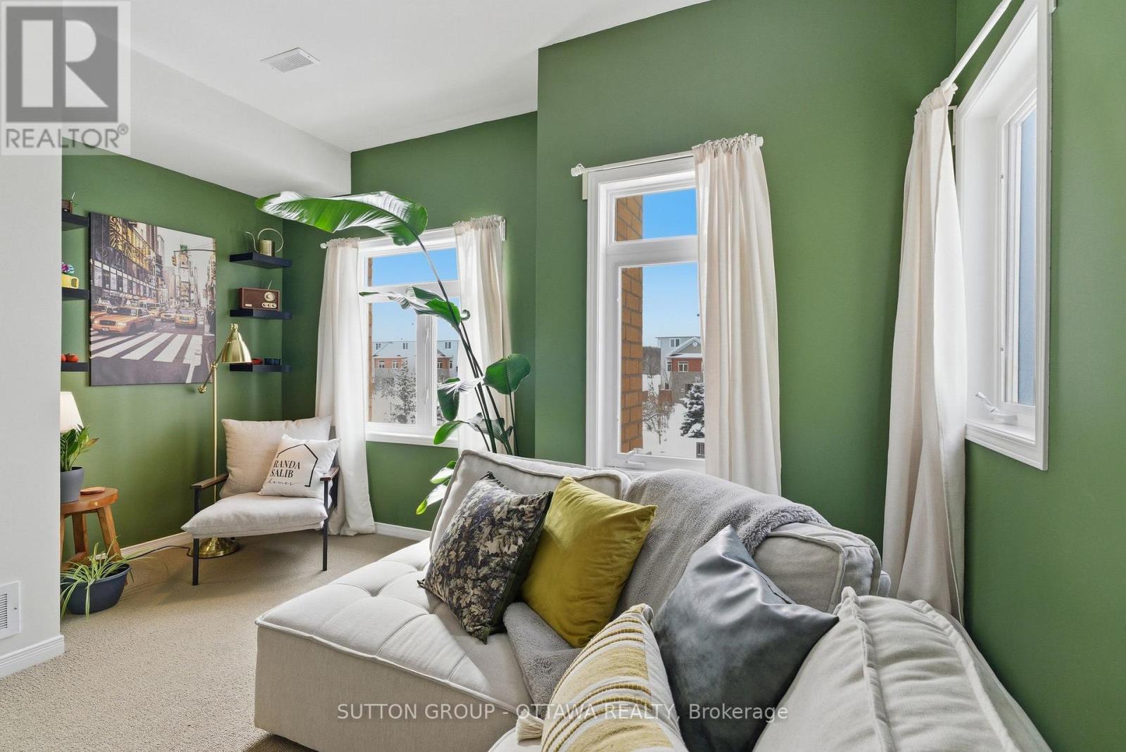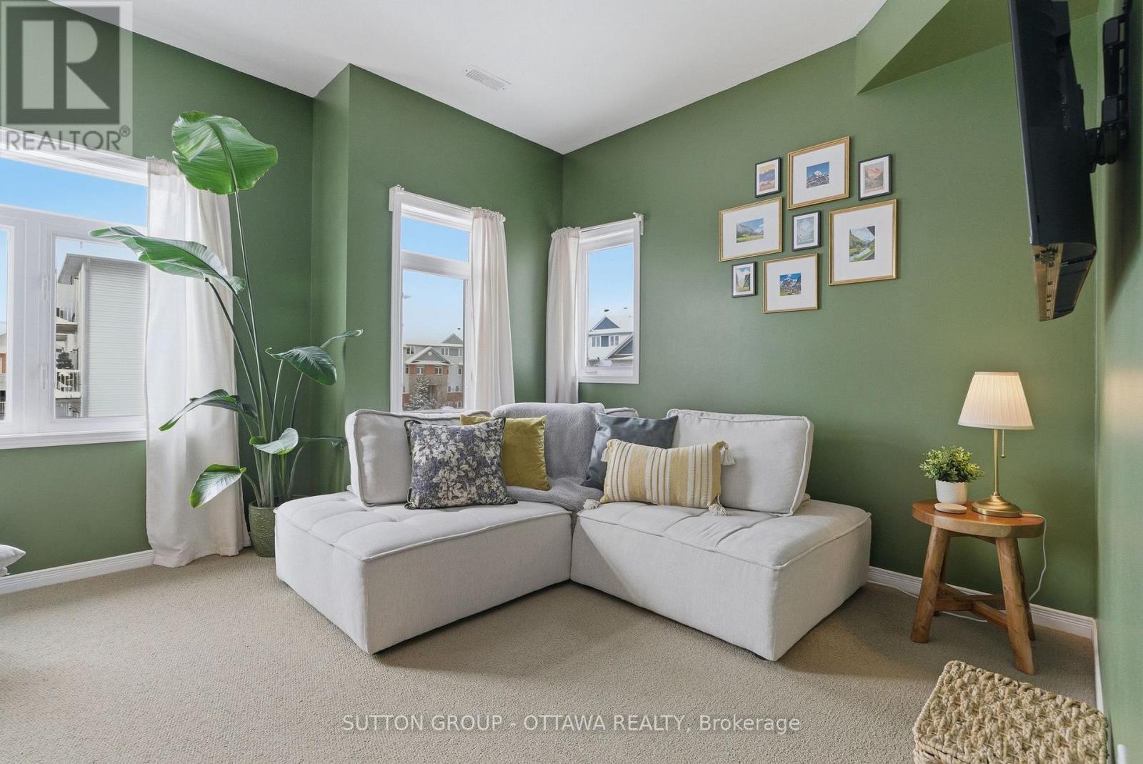 Rarely offered 3 BEDROOM UPPER END UNIT! This tastefully updated 3 bedroom, 2 bathroom unit in the heart of Kemptville is sure to please! Flooded with natural light, the main level boasts an open concept floor plan, upgraded lighting and 9 foot ceilings. The functional kitchen offers stainless steel appliances, sleek backsplash and a peninsula with overhang for added seating. Enjoy summer days lounging on the private, sunny balcony. The bonus main level den with cozy vibes is perfect for working from home, using as a lounge/TV area (as it's set up now), or sending the kids to play! Upstairs, the primary bedroom features double closets as well as access to an additional second-level balcony. Two great sized bedrooms, a linen closet, stacked laundry and a full bathroom complete this level. Upgraded smooth ceilings on the main level + primary bedroom as well as designer paint choices throughout give this unit a crisp, clean finish. Parking is conveniently located directly in front of the unit's entrance. You're a quick 5-minute drive to anything you could possibly need: groceries, restaurants, shops, and more! Or, walk to downtown Kemptville in less than 20 mins where you'll find the library, bakery, pizza shop, clothing boutique, etc. etc.! Condo fees include water. Book a showing today! (id:64974)
