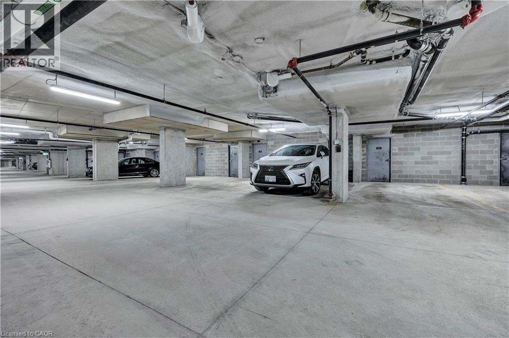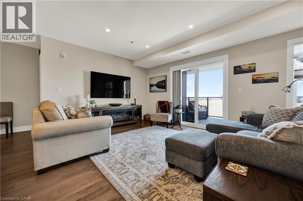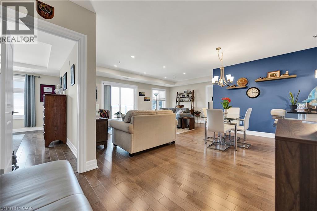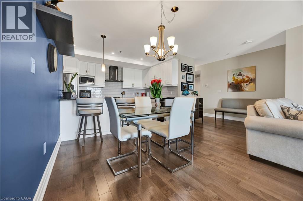 Welcome to Trailside at Carriage Crossing—where comfort, style, and nature come together in one exceptional 2-bedroom, 2-bathroom condominium. Offering over 1,300 sq. ft. of beautifully designed living space, this bright and spacious unit showcases contemporary finishes, engineered hardwood flooring, and an open-concept layout perfect for everyday living and entertaining. The gourmet kitchen is a standout, featuring quartz/granite countertops, stainless steel appliances, stylish cabinetry, and a rare, oversized walk-in pantry that provides incredible storage. The expansive living and dining area is filled with natural light from large windows and opens to a private covered balcony with western exposure—an ideal setting to unwind and take in the beautiful countryside views and breathtaking sunsets. The thoughtfully designed floor plan includes a generous primary suite with dual closets and a spa-inspired ensuite, along with a second bedroom and full bathroom—perfect for guests, a home office, or additional living space. Added conveniences include in-suite laundry, upgraded lighting, and ample storage throughout. This unit comes complete with underground parking, and a storage locker. Residents also enjoy access to a beautifully appointed rooftop terrace with BBQ and seating areas, perfect for relaxing or entertaining while enjoying panoramic sunset views. Nestled in one of Waterloo’s most sought-after communities, you’re just moments from RIM Park, the Walter Bean Trail, Grey Silo Golf Course, the Grand River, and St. Jacobs Farmers’ Market. With easy access to Uptown Waterloo, universities, shopping, dining, and the expressway, this location offers the perfect balance of tranquility and convenience. An outstanding opportunity for professionals, downsizers, or investors—this is one you won’t want to miss. (id:64974)