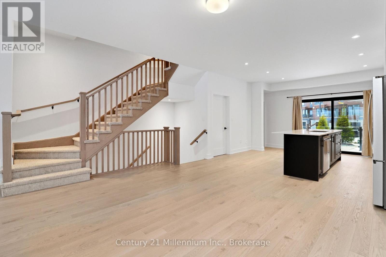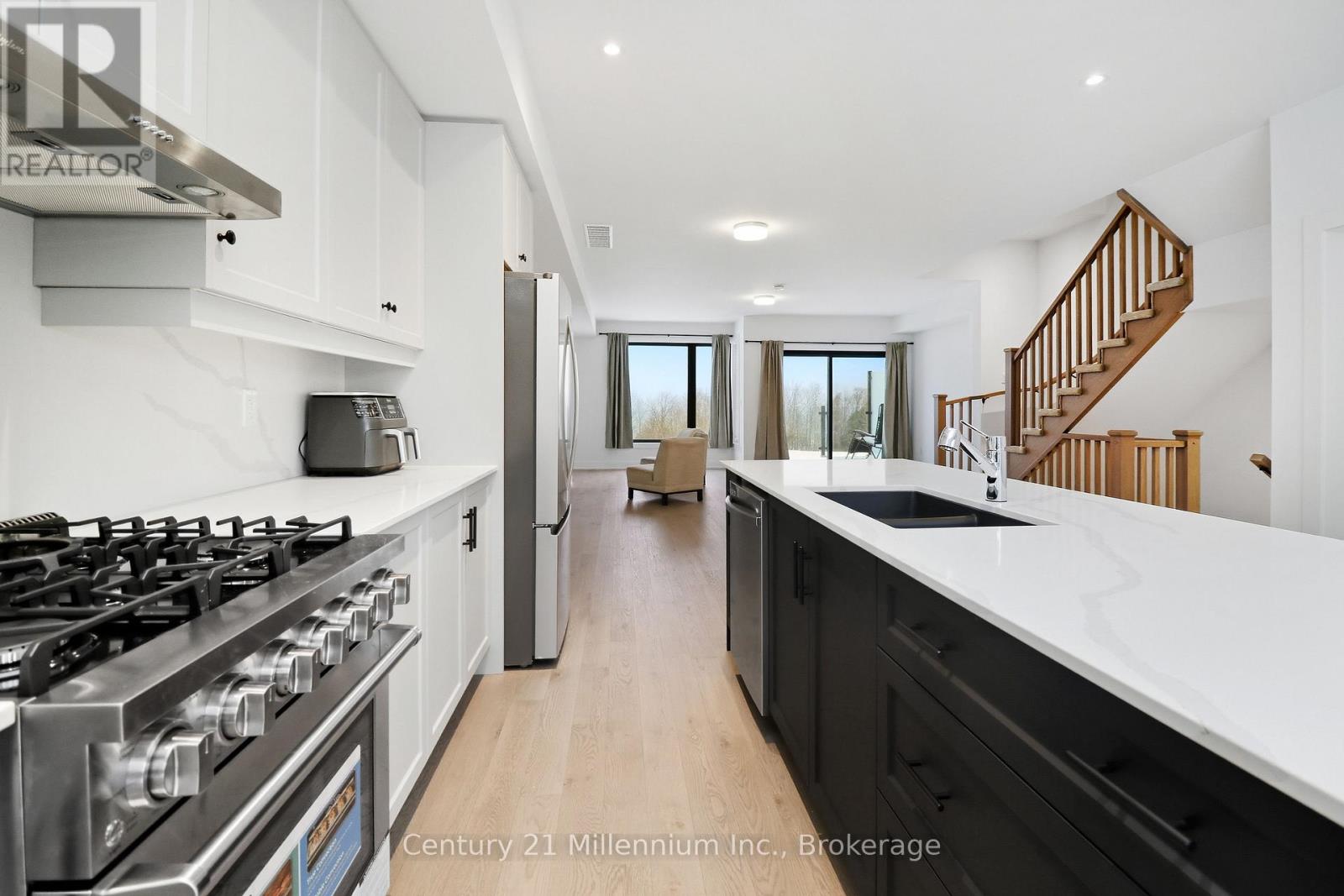 LORA BAY LIVING AT ITS FINEST- Experience luxury living in this stunning 3-story townhome, perfectly positioned to offer breathtaking views of Georgian Bay & the Lora Bay golf course. It has a tandem garage with entrance into a Foyer and stairs leading up to the next level to discover an open-concept layout that seamlessly connects the living, dining and kitchen areas, creating an inviting atmosphere for entertaining and everyday living. There is also a 2pc bathroom located on this level for everyone's convenience. Large windows flood the space with natural light while framing the picturesque views that defines this residence. The kitchen features ample counter space, and a convenient island, making it a cook's delight. Retreat up another level to the primary bedroom, which boasts a private en-suite bathroom with a large window overlooking the bay and golf course. Two additional bedrooms provide flexibility for guests or a home office, all accompanied by a well-appointed bathroom. Outdoor living is elevated with both front and back balconies, perfect for enjoying fresh air and the serene surroundings. The next level up located on the 3rd floor offers a small loft area as well as a two-piece bathroom. The expansive terrace offers an ideal space for hosting gatherings or simply soaking in the stunning vistas. Located in a desirable community, this townhome combines the tranquility of nature with proximity to local amenities, ensuring a lifestyle of convenience and leisure. Don't miss this opportunity to make this exceptional property your new home, where every day feels like a vacation! Rental Application with references, recent credit report and employer's letter is required. No smokers only. Would prefer no pets. Utilities in addition to rent. (id:64974)