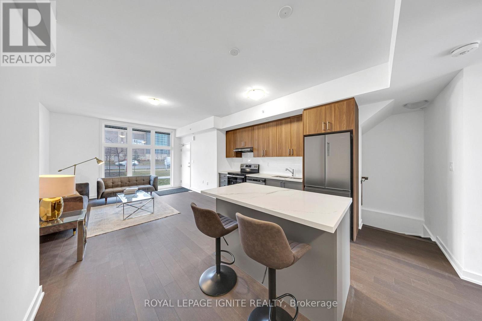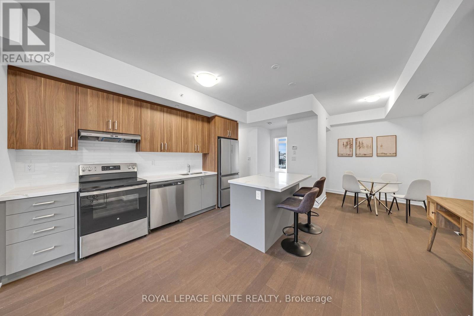 Builder Inventory! Brand new, bright and spacious townhome built by Golden Falcon Homes in an unbeatable location. This 2-bedroom, 2-bathroom townhome features a functional layout with luxury finishes throughout, including engineered hardwood floors, stainless steel appliances, an open concept kitchen, oak staircase, and smooth ceilings. Located just steps from supermarkets, Costco, shopping centres, fitness amenities, the library, and the hospital, and just minutes to the GO Train, public transit, and Highway 401. Low maintenance fees cover waste removal, snow clearing, road maintenance, grass cutting, and landscaping of common areas. Don't miss this exceptional opportunity to own a modern townhome in a highly sought-after neighbourhood, perfect for first time home buyers or downsizers. (id:64974)