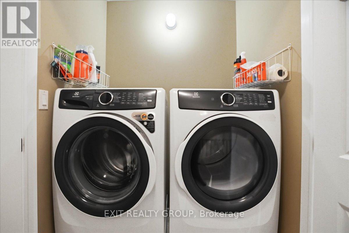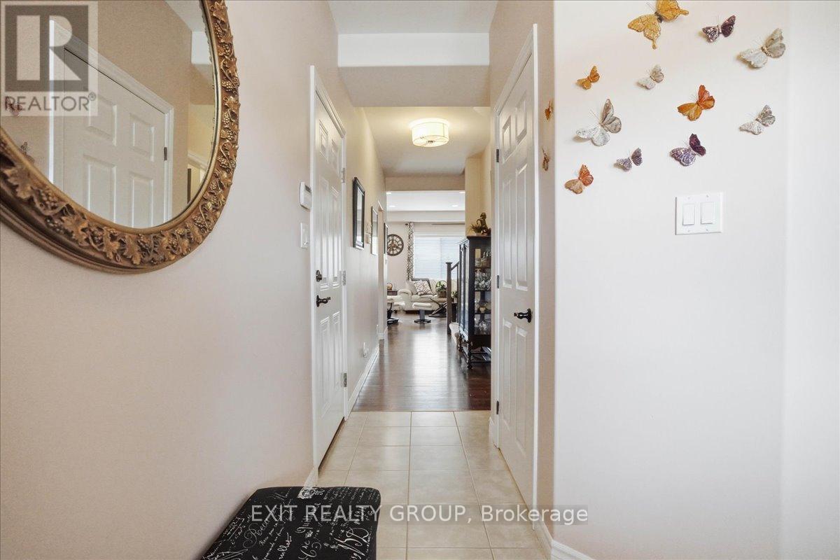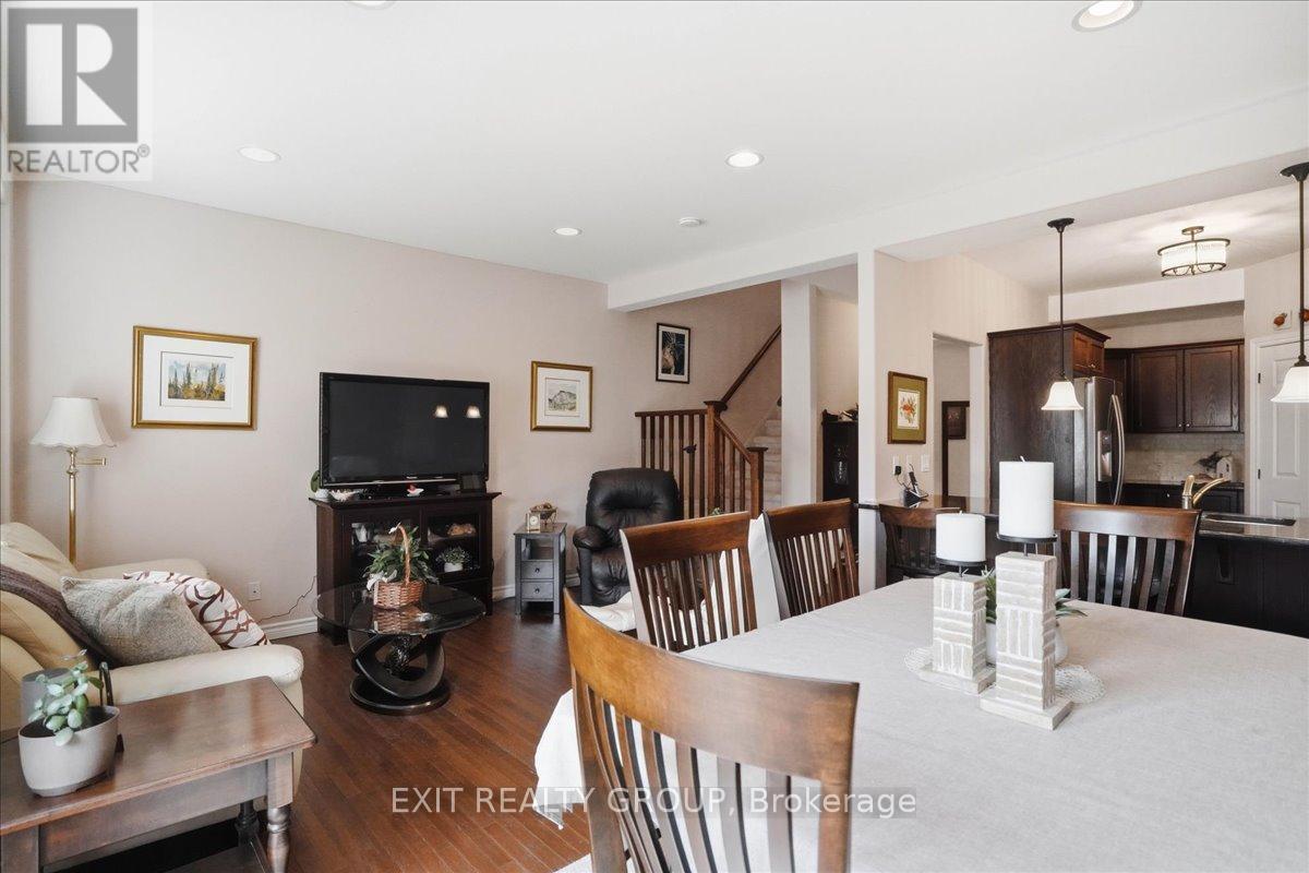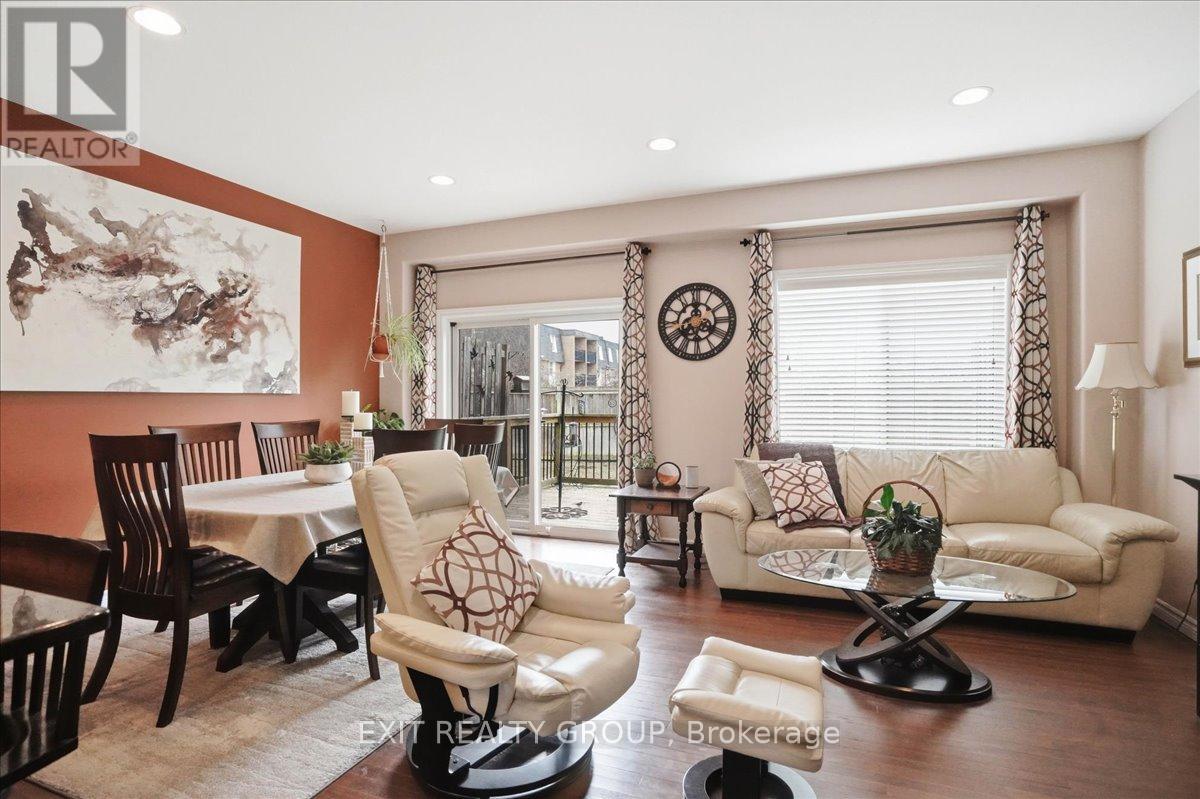 Exquisite 2 bed, 4 bath, two-storey townhouse condo, with an attached garage close to all amenities that Belleville has to offer. The main level greets you with a welcoming foyer providing seamless interior access to the garage for ultimate convenience. At the heart of the home lies a gourmet custom kitchen, anchored by a stylish center island with seating for three - perfect for casual morning coffee - complemented by a practical 2-piece bathroom nearby. The open-concept layout flows into a dedicated dining area, where elegant glass doors lead to your private rear deck and backyard, ideal for alfresco entertaining. The upper level is a retreat, featuring two primary bedrooms, each boasting its own private ensuite for a true 'double-master' experience. This level is rounded out by conveniently located second-floor laundry, eliminating the need for stairs on wash day. The versatile lower level adds significant living space offering an expansive area for a recreation room or den - perfect for a home office, a 2-piece bathroom, and ample storage. Situated in a premier, family-friendly community, this impeccable home offers a rare combination of luxury and function. (id:64974)