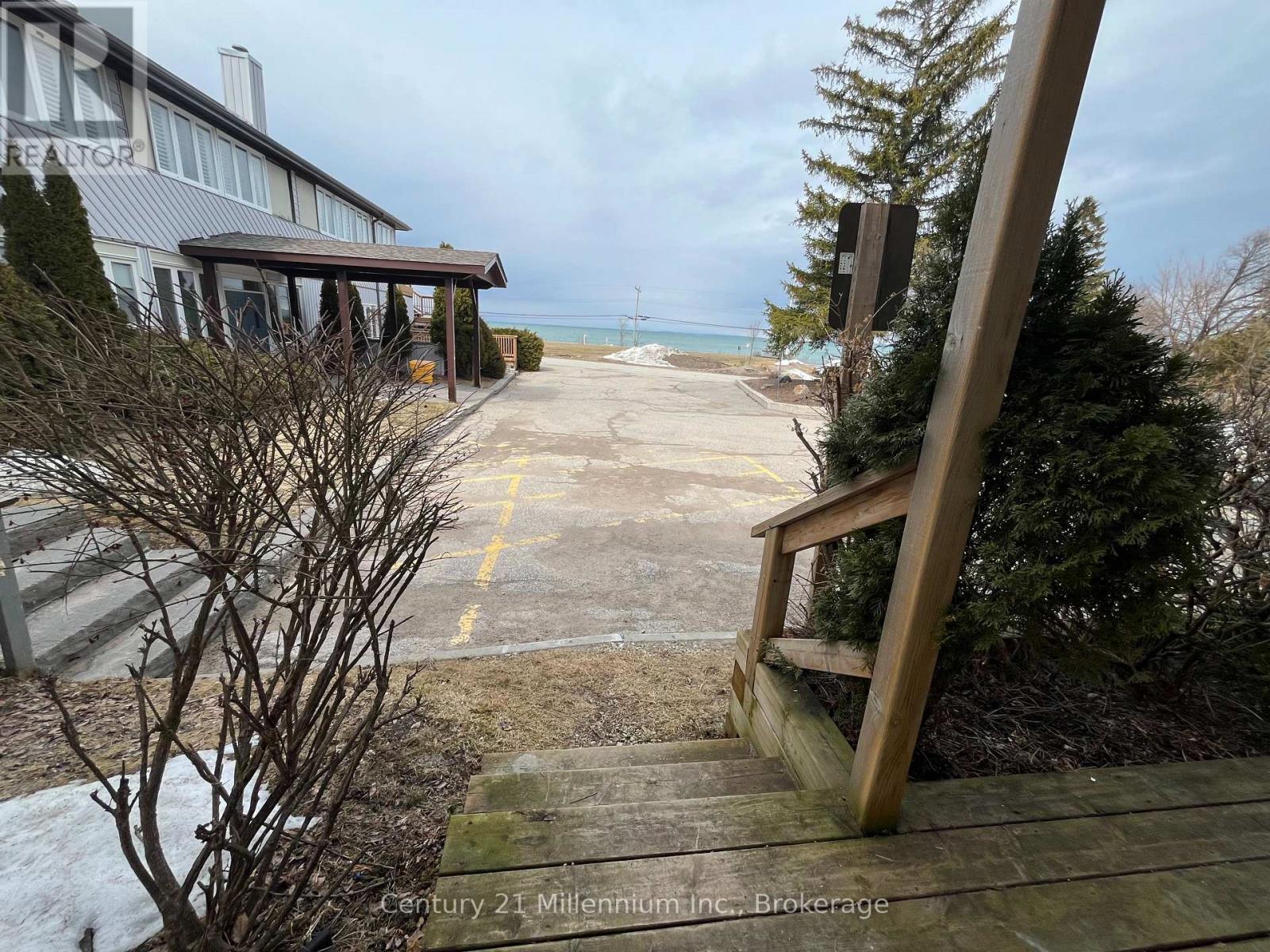 Beautiful views to Georgian Bay right from your own living room and deck. This smartly renovated one bedroom unit is turnkey. Kitchen is stunning with polished white cabinets, eye catching backsplash & is fully open to the living room. Location is hard to beat. It's across from Georgian Bay and so easy to walk to. And there are spaces for your kayak, paddle-board & bike. Enjoy the in-ground pool onsite and a gorgeous courtyard with gardens, outdoor fire-pit and a lovely bridge to access the Georgian Trail. Relax in the sauna, gym, social room. This place makes life simple and so enjoyable and only 5 to 10 min away from dining and shopping. Hiking, cycling, cross-country skiing and snowshoeing is right there, just steps from your door. Feel the weight of the world lift away. (id:64974)