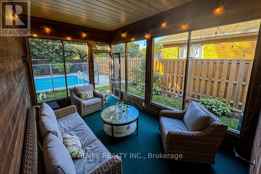 Welcome home to 25 Buckingham St, Brantford. This beautifully maintained 3-bedroom, 2-bathroom raised bungalow is located on a quiet, tree-lined street in the sought-after North End. The main level offers comfortable living with a bright, functional layout, hardwood and tile flooring, and a spacious living area filled with natural light from the large front window. The kitchen features ample cabinetry, generous counter space, and a convenient eat-in dining area. Down the hall, you'll find three well-sized bedrooms and a 4-piece bathroom. The fully renovated basement adds valuable living space, featuring a large rec room with wet bar, laminate flooring, a 3-piece bathroom, laundry area, and plenty of storage. At the rear of the home, a charming cedar-screened sunroom overlooks the private, fully fenced backyard oasis with mature trees and an in-ground saltwater pool, perfect for enjoying summer days. Conveniently located close to parks, schools, the Wayne Gretzky Sports Centre, shopping, dining, and with easy access to Hwy 403. Great opportunity to lease a well-maintained home in a desirable, family-friendly neighbourhood. (id:64974)