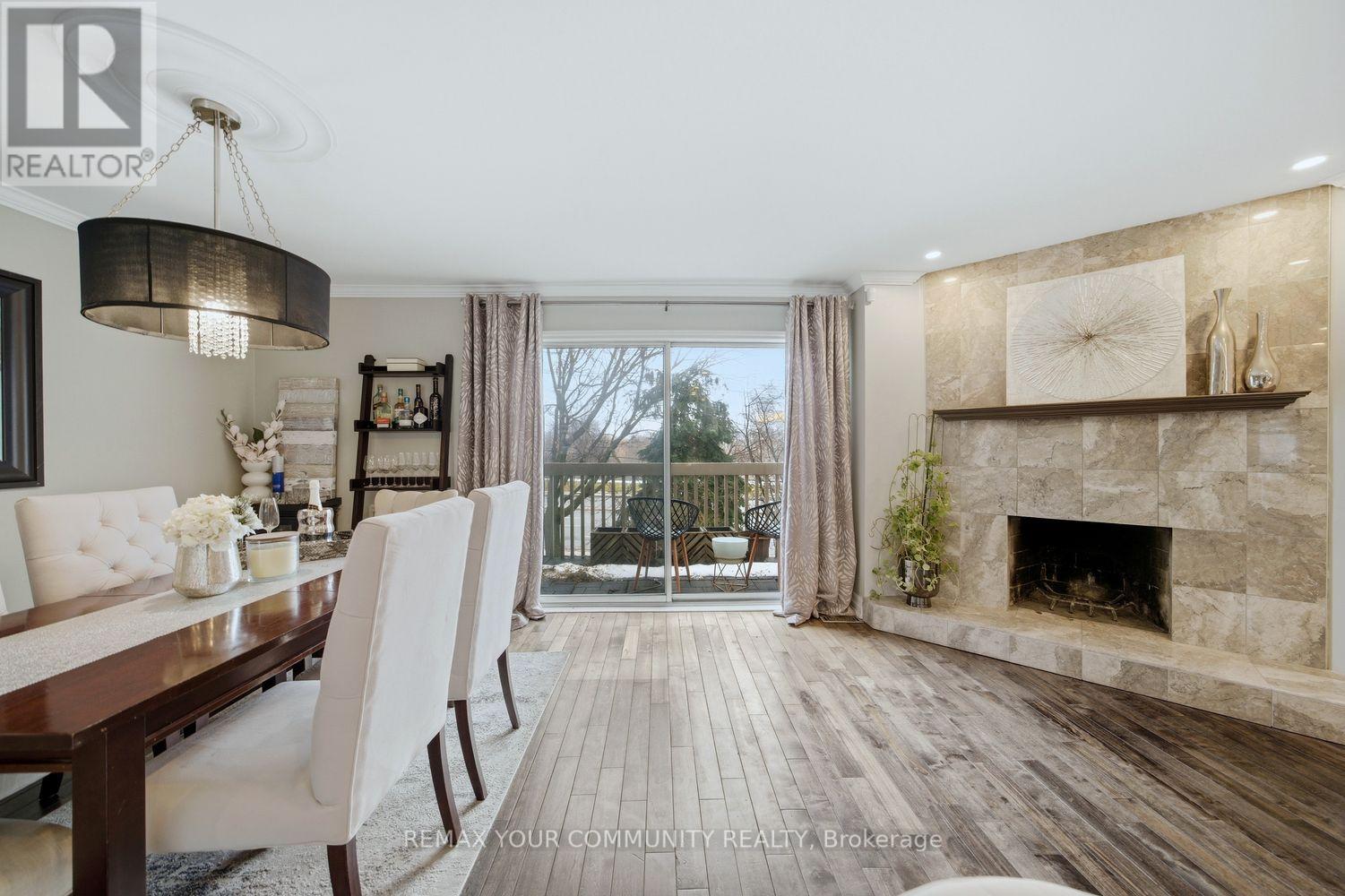 Contemporary 2-storey condo townhome in North York offering the perfect blend of modern comfort, functional space, and unbeatable convenience. Ideal for growing families or professionals, this beautifully updated home delivers a lifestyle of accessibility and community living in one of Toronto's most connected neighbourhoods. This executive residence features 3+1 bedrooms, 2 bathrooms, a private garage, dedicated driveway, separate entrance, and three outdoor living spaces, a rare find in such a central location. Inside, the home showcases a renovated kitchen, new hardwood flooring throughout the main and upper levels, and pot lights throughout, creating a bright and modern atmosphere. The main living space is designed for both relaxation and entertaining, highlighted by a cozy wood-burning fireplace and a walk-out balcony perfect for barbecuing or hosting guests. The modern eat-in kitchen offers generous counter space, ample cabinetry, and a practical layout for everyday living. From the kitchen, step out to another balcony, ideal for morning coffee or fresh air in the evening. Upstairs, the primary bedroom features impressive vaulted ceilings and a walk-in closet. Two additional bedrooms are well-sized with natural light and closet space, ideal for children, guests, or a home office. The lower level offers exceptional flexibility with an additional living area, a second wood-burning fireplace, and a separate entrance, ideal for an in-law suite or extended family, with walk-out access to the backyard. Outdoor living is equally impressive with a low-maintenance fenced yard featuring a brand-new interlock patio, creating a private space perfect for entertaining, dining, and relaxing. Residents also enjoy access to a heated outdoor swimming pool staffed throughout the summer. Families will appreciate proximity to top-rated schools, TTC access, Highway 401, the Don Valley Parkway, Fairview Mall, North York General Hospital, and the Don River Trail. Shows 10+. (id:64974)