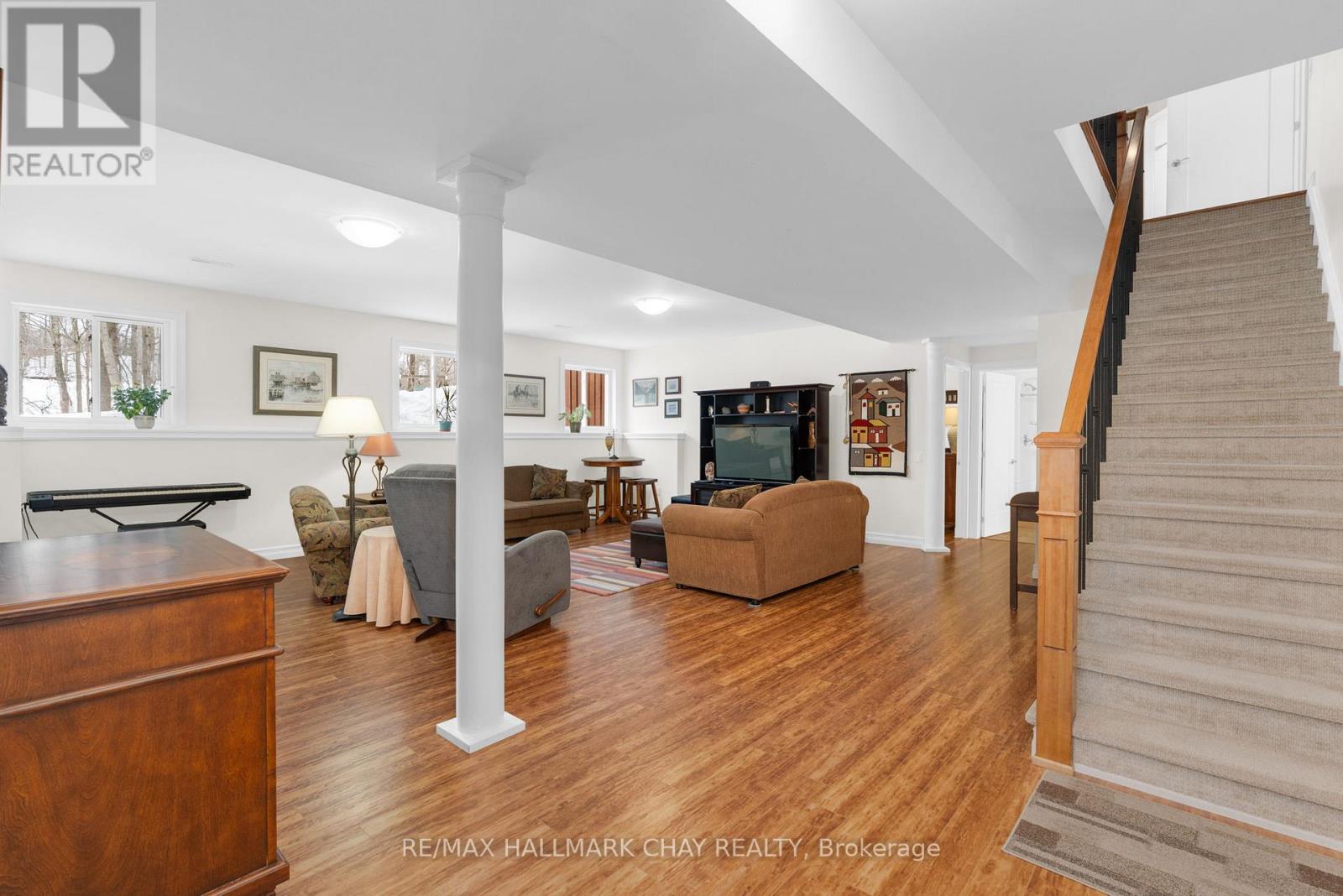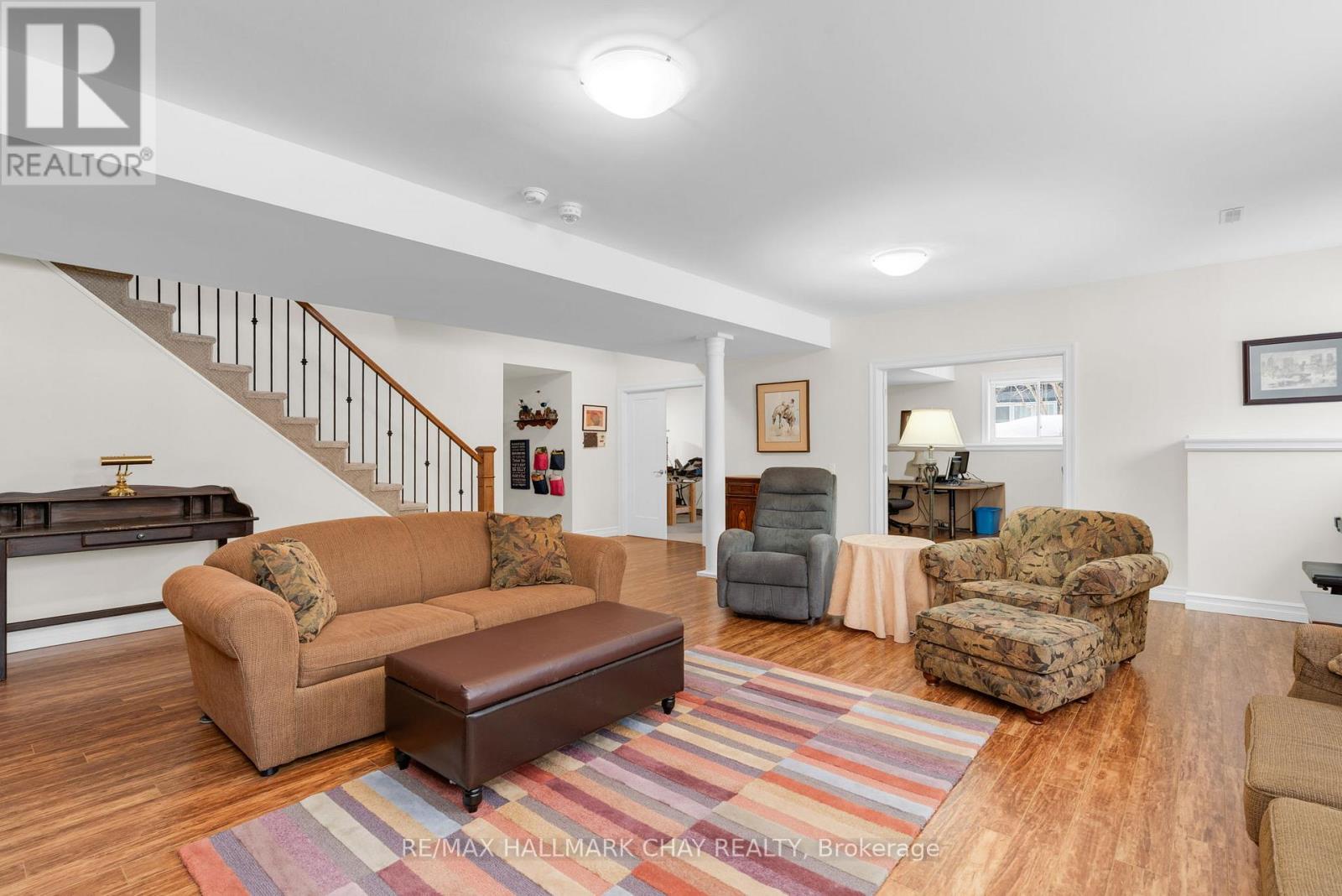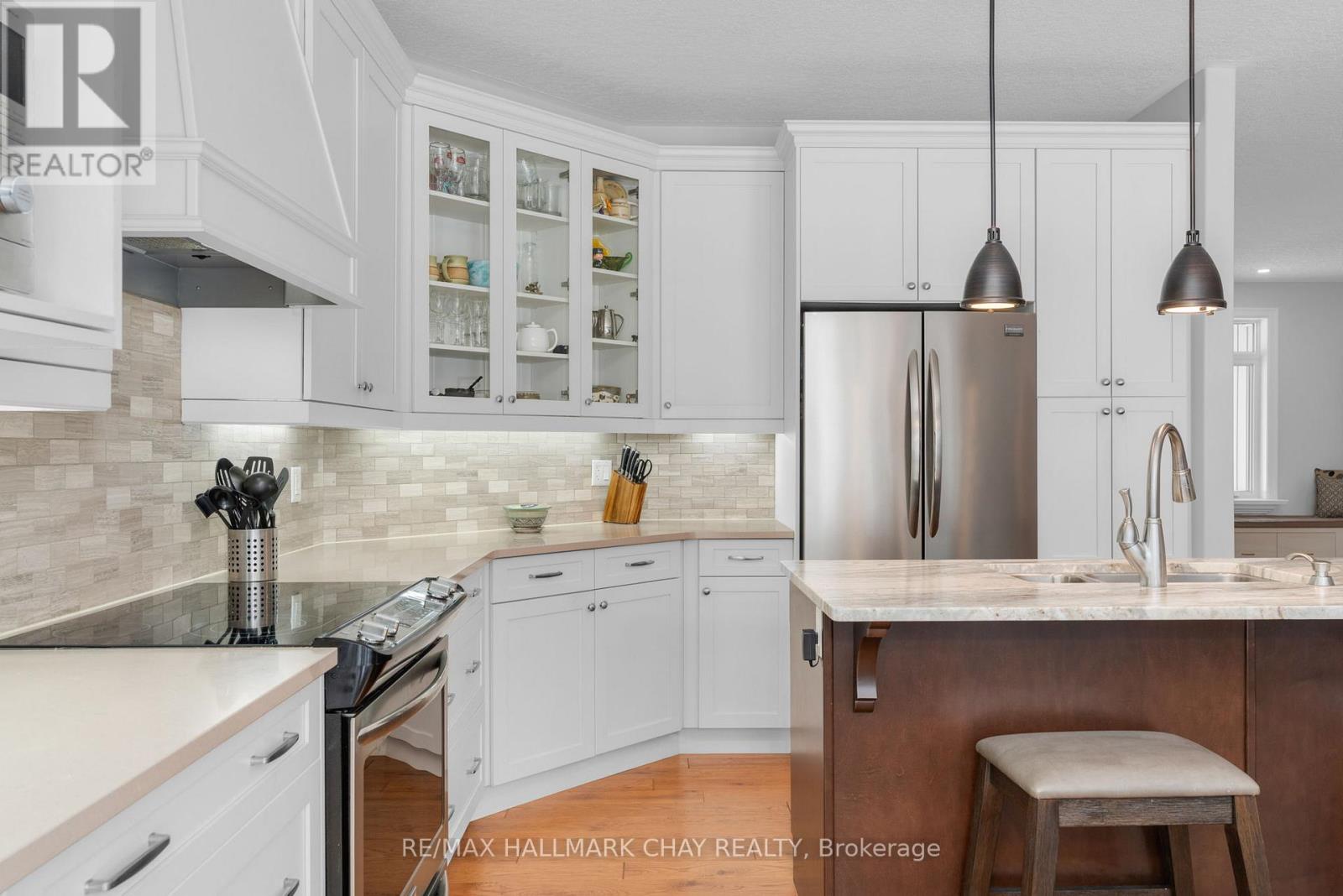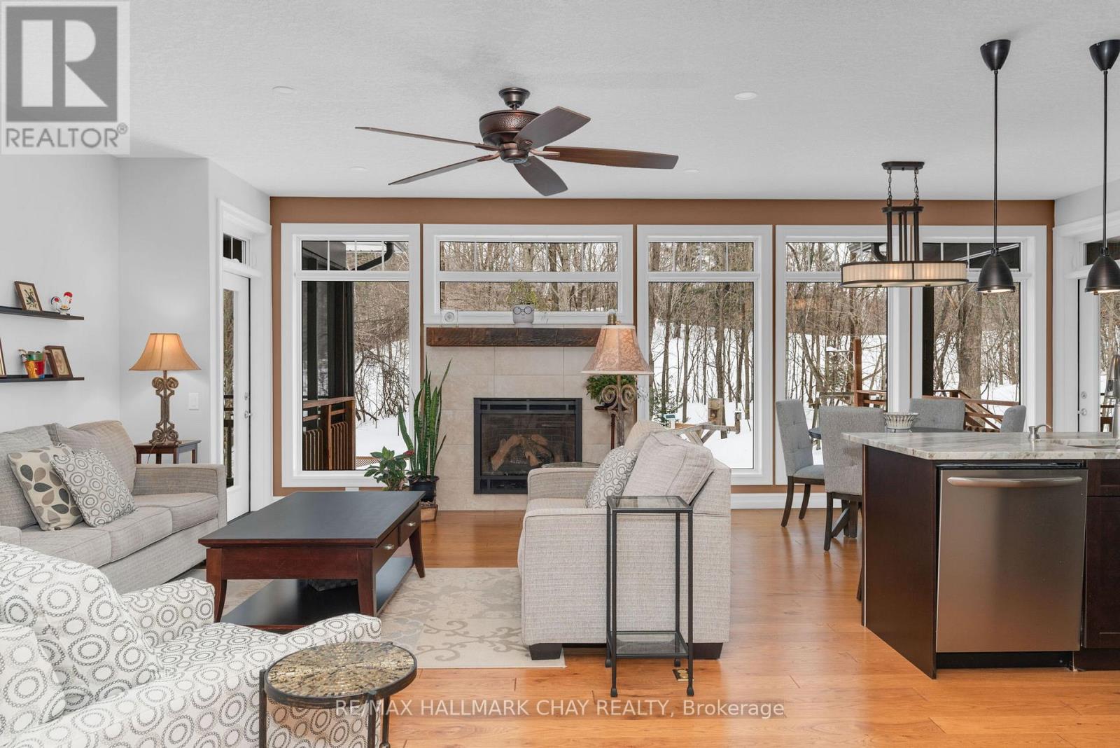 Exceptional pride of ownership in this custom built bunaglow, backing onto the 17 fairway of Horseshoe's Valley Course. This bright home with a raised back level has large windows throughout bringing lots of natural light in and gorgeous nature out door views. 9 foot ceilings on main floor and lower level.This beautiful open concept floor plan offers an eat in kitchen with stainless steel appliances, granite and quartz countertops. The living room has a gas fireplace with a wall of windows with nature view. The open concept area has two door accesses to a covered porch on one side off Kitchen and an enclosed screened room on the other side off Living room. Extended outdoor living. The primary suite offers a 4 pc ensuite and walk in closet. Seperate dining room and laundry room with garage access also on main floor as well as a second bedroom and full 4 pc bath. The bright lower level offers a 3rd bedroom and potentially a 4th bedroom or a gym presently being used as a office. Lower level also offers a 3pc bathroom. There is an unfinished shop space that could also be finsihed space if desired. Doors 34 " wide and lowered light switches to accomodate wheel chair access. Garage doors are 9 ft wide and garage is oversized at 25'2"x 23''1". This home has many custom touches including Rogers and bell high speed, leaf guard eaves, 200 amp service. Upgraded insulation, central vac, wet bar rough in basement. The exterior offers armour stone landscape and perernnial gardens. Walk to horseshoe resort, cross country ski out your yard, golf, alpine ski, vetta spa, hike, mountain bike and snowmobile out your driveway. Come live where you can play too. (id:64974)