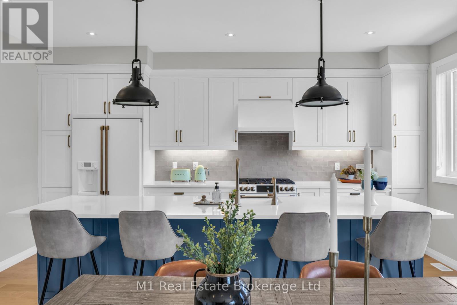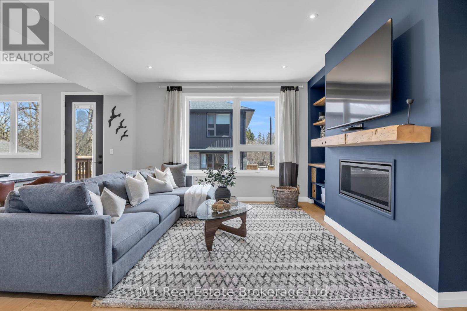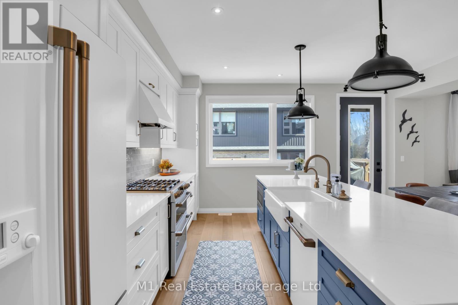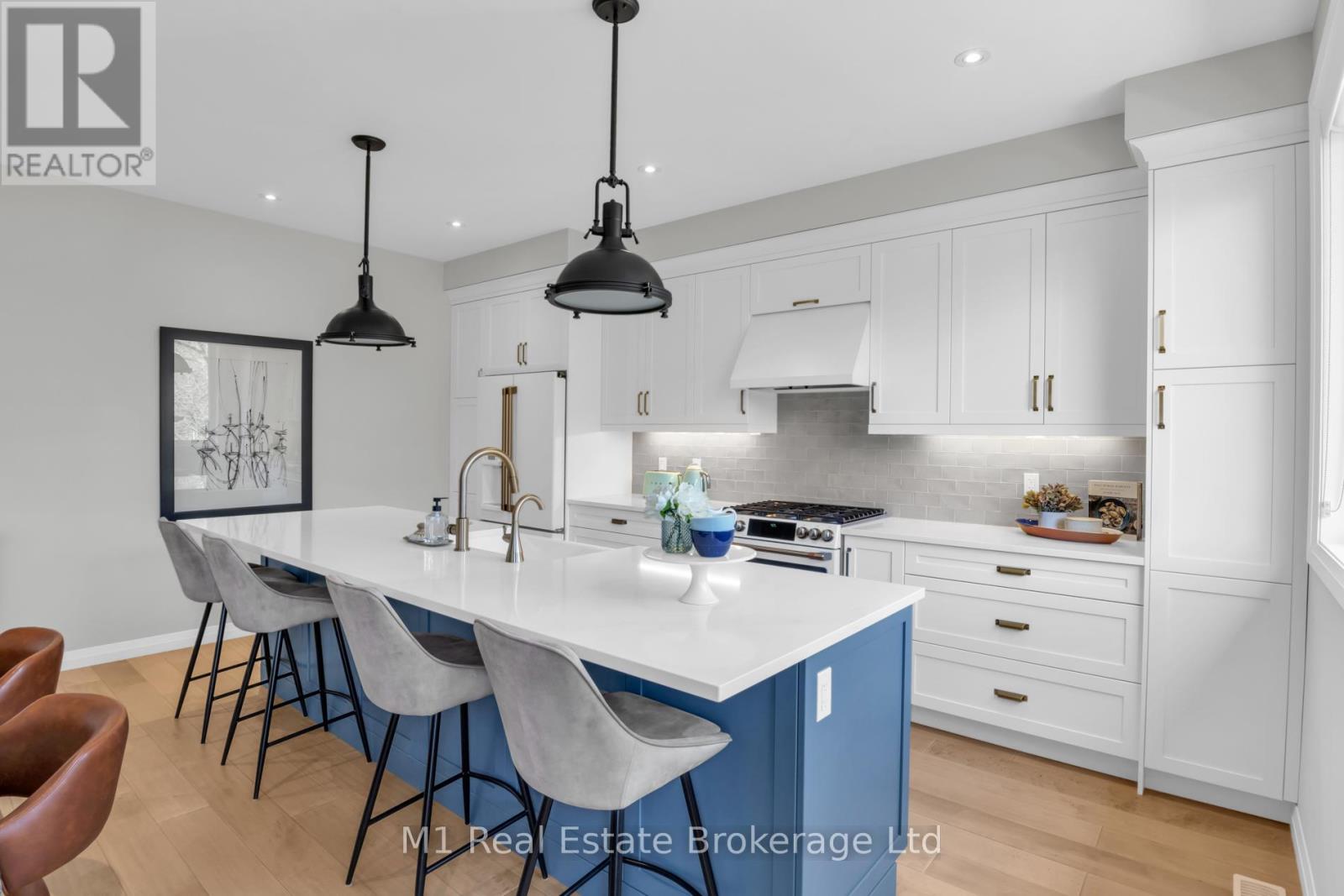 Welcome to this stunning custom-built home in the heart of Fergus, offering over 2000 sq ft of beautifully designed living space where modern style meets farmhouse charm. Featuring 9 foot ceilings throughout, 3 spacious bedrooms and 3 baths, this home showcases meticulous attention to detail and high-end upgrades throughout. The open-concept layout is perfect for both everyday living and entertaining, highlighted by wide plank hardwood flooring and expansive windows that flood the space with natural light. The living room offers a cozy gas fireplace with custom wood shelving. The custom Sutcliffe kitchen is truly the heart of this home, complete with an impressive 11-foot island with breakfast bar, sleek finishes, and premium Café appliances. Upstairs, the primary retreat offers a serene escape, his-and-hers walk-in closets, and a spa-like ensuite featuring a soaker tub and a large glass shower. Step outside to a custom-built deck, ideal for relaxing or hosting, all set on a private street, offering a rare sense of calm and privacy in a charming small-town setting. A truly exceptional home combining comfort, craftsmanship, and location. (id:64974)