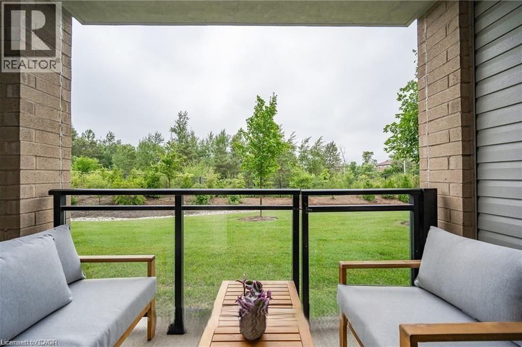 Beautiful, spacious & bright 2 bedrooms, 2 baths condo located in lively & desirable south end of Guelph. This 2 bedroom street level corner unit condo has high ceilings and sparkles like new with lots of high end finishes. The open concept kitchen features quartz countertops, Stainless steel appliances with upgraded dark rich espresso kitchen cabinets with plenty of cabinet space. A bright open concept living room and dining area with laminate floor and neutral color paint. Large Master bedroom with a walk in closet and an abundance of natural light through large windows and fully upgraded in-suite. Laminate floor and neutral paint throughout the unit with plenty of light in the unit. This popular well-built six-story condo building also features free access to an impressive party room complete with full kitchen and tons of space for entertaining, plenty of visitor parking, a bike storage room and a spacious garden area with large gazebo for outdoor enjoyment. walking distance to all of south Guelph's modern conveniences that include restaurants, grocery stores, a library, shopping plazas, public transit and a Galaxy Movie Theatre. There is a direct bus route to the University of Guelph and it's only a few minutes drive to the 401. (id:64974)