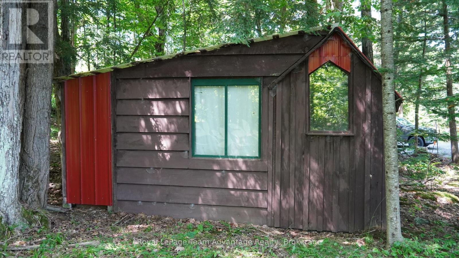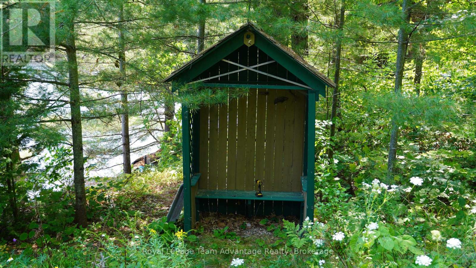 Vacant waterfront lot on the desirable shores of southern Harris Lake offering a level, well treed setting with about 120' (36m) of natural rocky shoreline with deep water for easy docking. Panoramic easterly views over the lake. A driveway is already installed and a garden shed provides convenient storage. Located on a year round maintained municipal road. Hydro is available at the roadside for easy connection. This property is just 15 minutes east of the town of Parry Sound, making it an ideal spot for your future getaway or dream cottage or home. (id:64974)