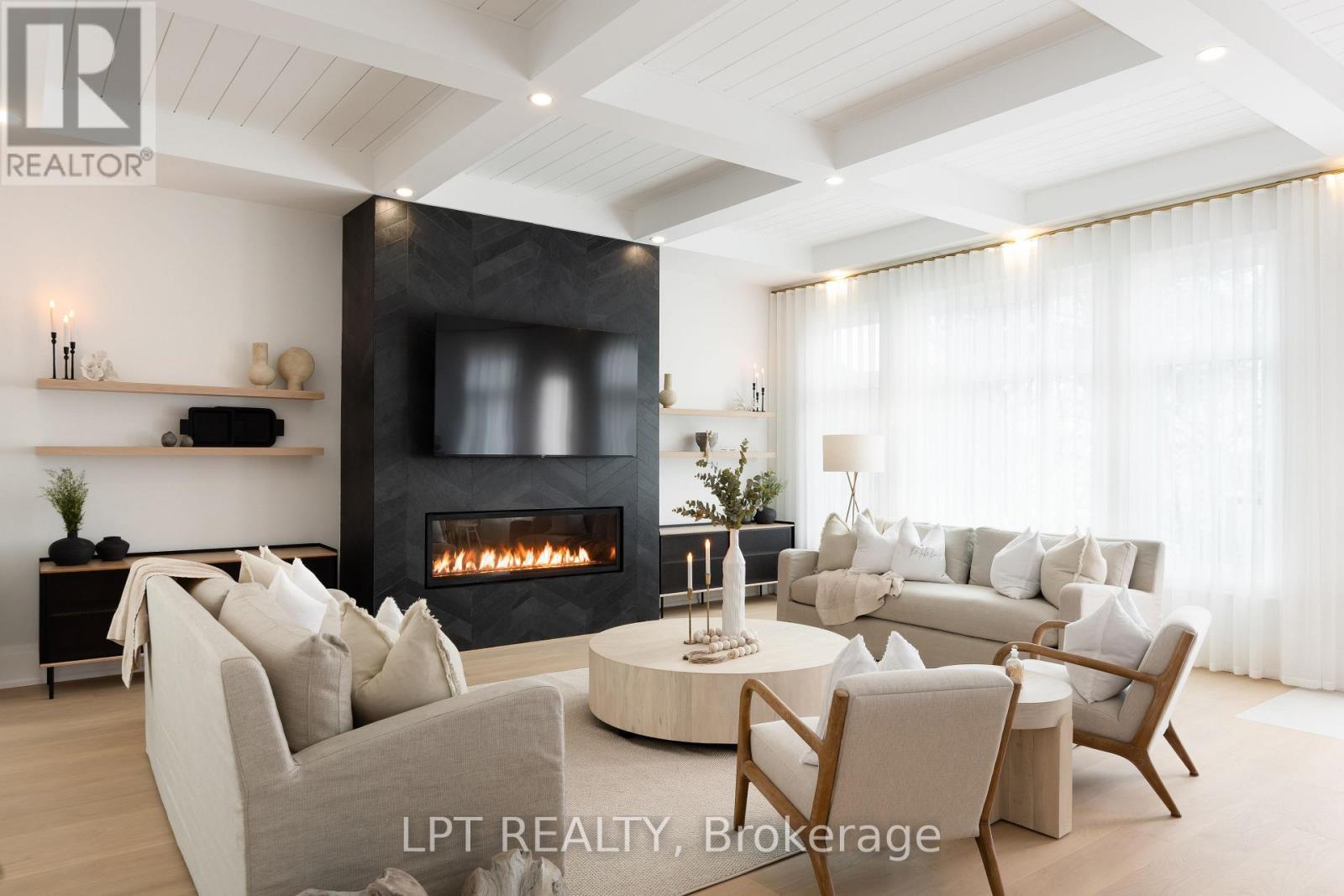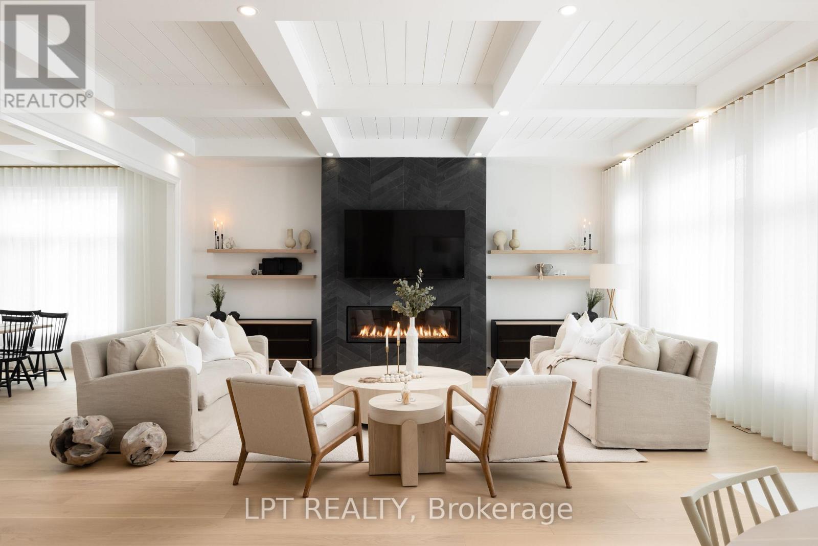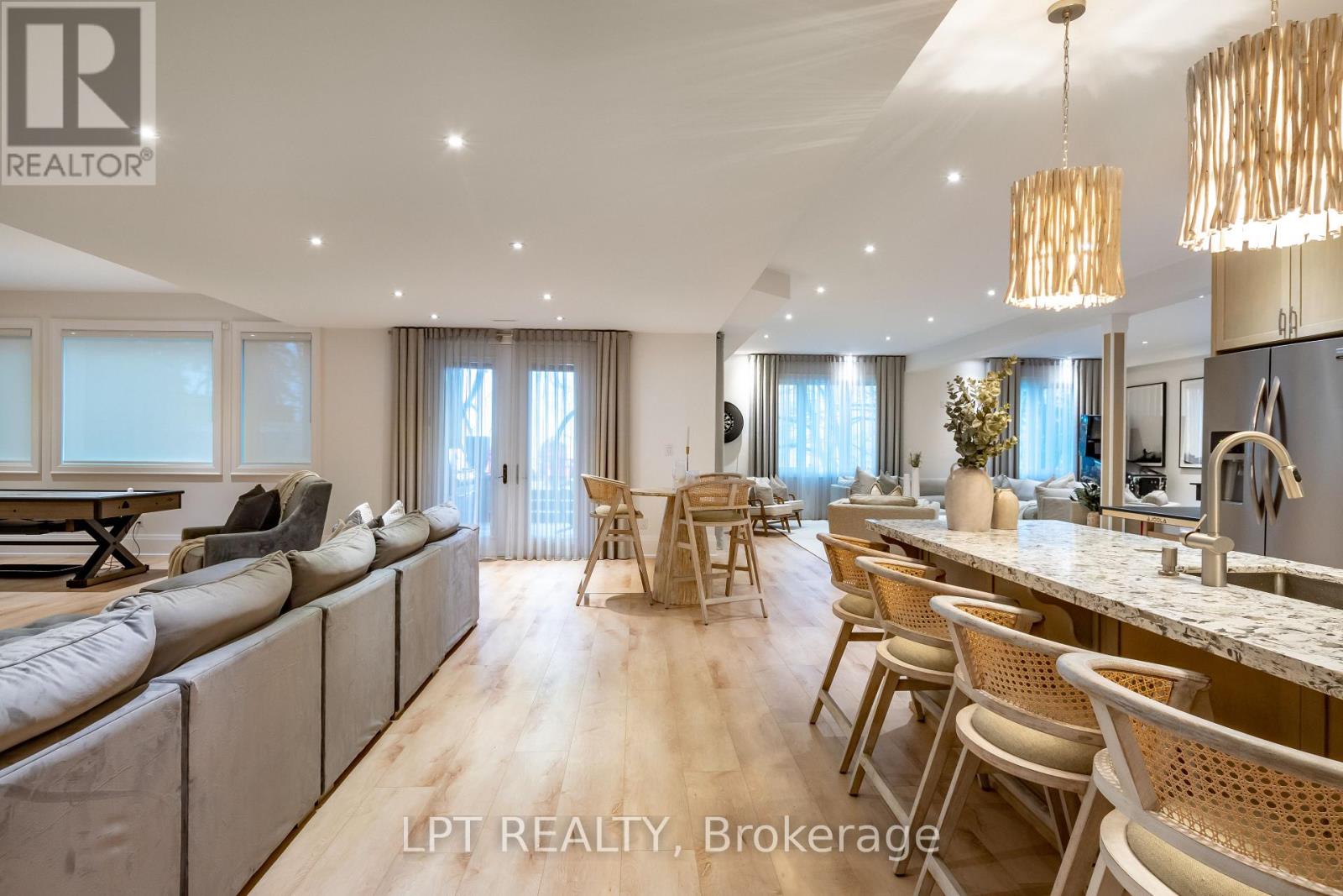 A Truly Exceptional Coastal-Inspired Luxury Waterfront Bungalow Featuring 7 Bedrooms & 8 Bathrooms, Fully-Renovated And Sold Completely Furnished, Offering Approximately 6,800 Sq Ft Of Thoughtfully Designed Living Space On Almost 80 Ft Of Sandy Lake Simcoe Shoreline With A Gradual, Family-Friendly Entry And Water Deep Enough For Boating And Docking. Reimagined From Top To Bottom By A Toronto-Based Design Studio, This Bright, Move-In-Ready Residence Pairs Refined Craftsmanship With A Designer-Created Lakehouse Aesthetic. Natural Textures, Soft Wood Tones, Custom Millwork, Designer Lighting And Siberian Engineered Hardwood Floors Are Complemented By Expansive Windows And Abundant Natural Light Throughout. The Main Level Features A Stunning Open-Concept Kitchen, Dining And Great Room - Flooded With Sunlight And Positioned To Capture Lake Views. The Kitchen Offers Custom Cabinetry, Oversized Island, Premium Appliances, And Curated Finishes. The Great Room Showcases A Statement Fireplace, Built-Ins, Coffered Ceilings And Walk-Out To Glass-Panel Deck. A Grand Foyer With Vaulted Ceiling, Formal Dining Room, Private Office And Four Bedrooms Complete The Main Floor. The Primary Retreat Includes Lake Views, Spa-Inspired 5-Piece Ensuite, And Custom Walk-In Closet. The Fully-Finished Walk-Out Lower Level Offers 9.5' Ceilings, Second Kitchen, Two Bedrooms And Private Wellness Spa Featuring Sauna And Steam/Aroma Shower - Ideal For Entertaining Or Extended Family Living. The Finished Loft Above The Oversized 3-Car Garage Includes A Kitchenette And 3-Piece Ensuite, Offering Excellent Flexibility For Guests Or Additional Living Space. Outdoor Living Is Equally Curated With Dock, Lakeside Deck, Wooden Barrel Sauna, Hot Tub And Sun-Soaked Lounge Areas Designed For Year-Round Enjoyment. Everything You See Included. A Rare Opportunity To Own A Fully-Furnished, Designer Lakefront Home With Ample Parking And Walking Distance To Shops, Golf And Amenities In The Heart Of Jackson's Point. (id:64974)
