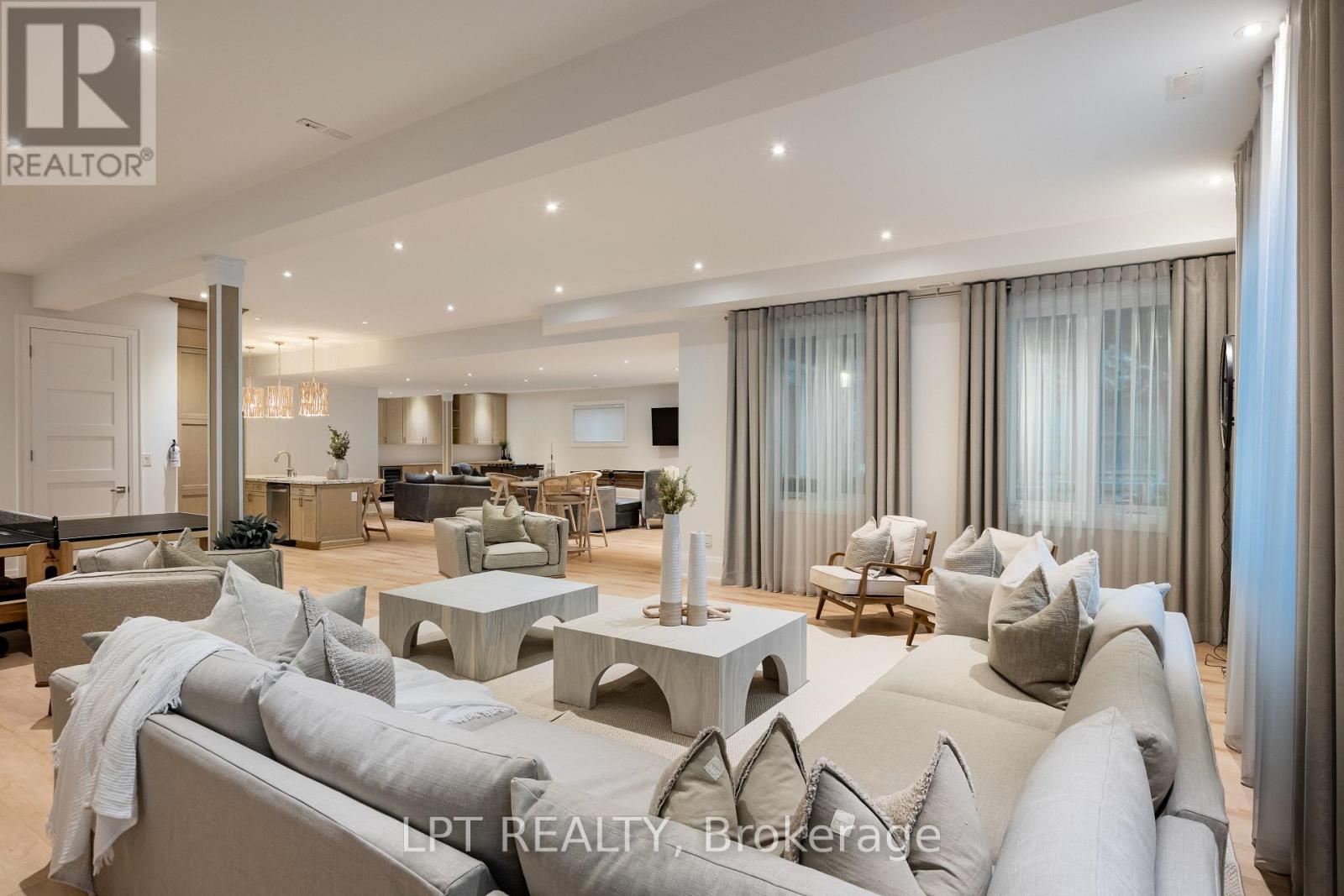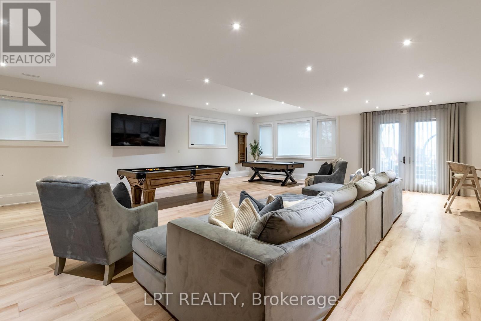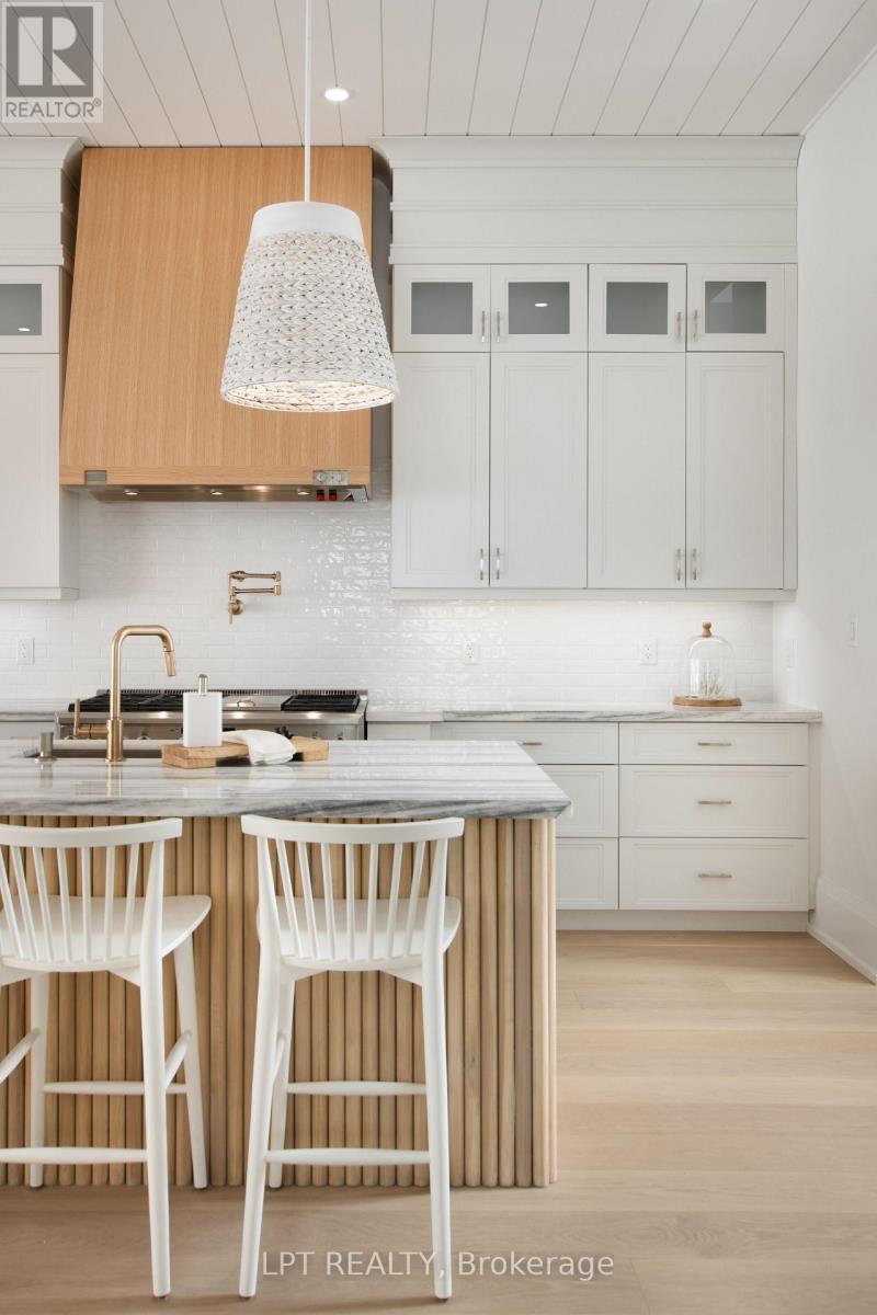 A Truly Exceptional Coastal-Inspired Luxury Waterfront Bungalow Featuring 7 Bedrooms & 8 Bathrooms, Fully-Renovated And Sold Completely Furnished, Offering Approximately 6,800 Sq Ft Of Thoughtfully Designed Living Space On Almost 80 Ft Of Sandy Lake Simcoe Shoreline With A Gradual, Family-Friendly Entry And Water Deep Enough For Boating And Docking. Reimagined From Top To Bottom By A Toronto-Based Design Studio, This Bright, Move-In-Ready Residence Pairs Refined Craftsmanship With A Designer-Created Lakehouse Aesthetic. Natural Textures, Soft Wood Tones, Custom Millwork, Designer Lighting And Siberian Engineered Hardwood Floors Are Complemented By Expansive Windows And Abundant Natural Light Throughout. The Main Level Features A Stunning Open-Concept Kitchen, Dining And Great Room - Flooded With Sunlight And Positioned To Capture Lake Views. The Kitchen Offers Custom Cabinetry, Oversized Island, Premium Appliances, And Curated Finishes. The Great Room Showcases A Statement Fireplace, Built-Ins, Coffered Ceilings And Walk-Out To Glass-Panel Deck. A Grand Foyer With Vaulted Ceiling, Formal Dining Room, Private Office And Four Bedrooms Complete The Main Floor. The Primary Retreat Includes Lake Views, Spa-Inspired 5-Piece Ensuite, And Custom Walk-In Closet. The Fully-Finished Walk-Out Lower Level Offers 9.5' Ceilings, Second Kitchen, Two Bedrooms And Private Wellness Spa Featuring Sauna And Steam/Aroma Shower - Ideal For Entertaining Or Extended Family Living. The Finished Loft Above The Oversized 3-Car Garage Includes A Kitchenette And 3-Piece Ensuite, Offering Excellent Flexibility For Guests Or Additional Living Space. Outdoor Living Is Equally Curated With Dock, Lakeside Deck, Wooden Barrel Sauna, Hot Tub And Sun-Soaked Lounge Areas Designed For Year-Round Enjoyment. Everything You See Included. A Rare Opportunity To Own A Fully-Furnished, Designer Lakefront Home With Ample Parking And Walking Distance To Shops, Golf And Amenities In The Heart Of Jackson's Point. (id:64974)
