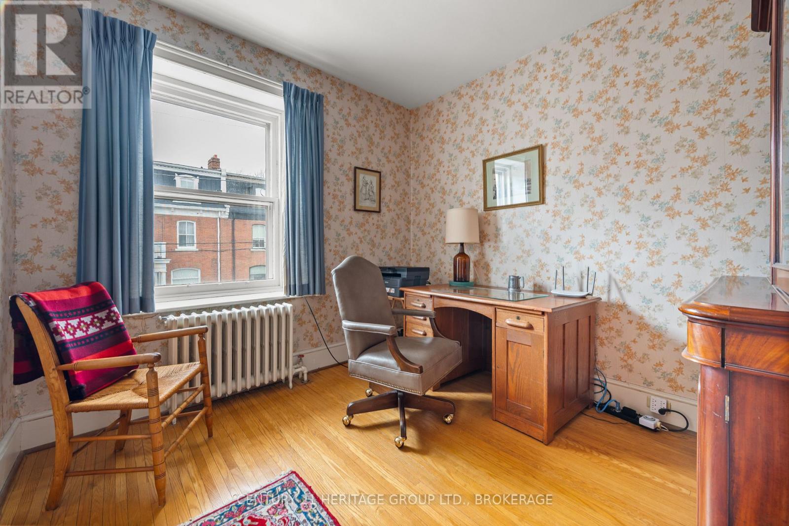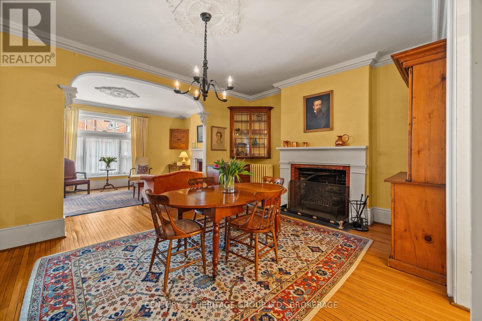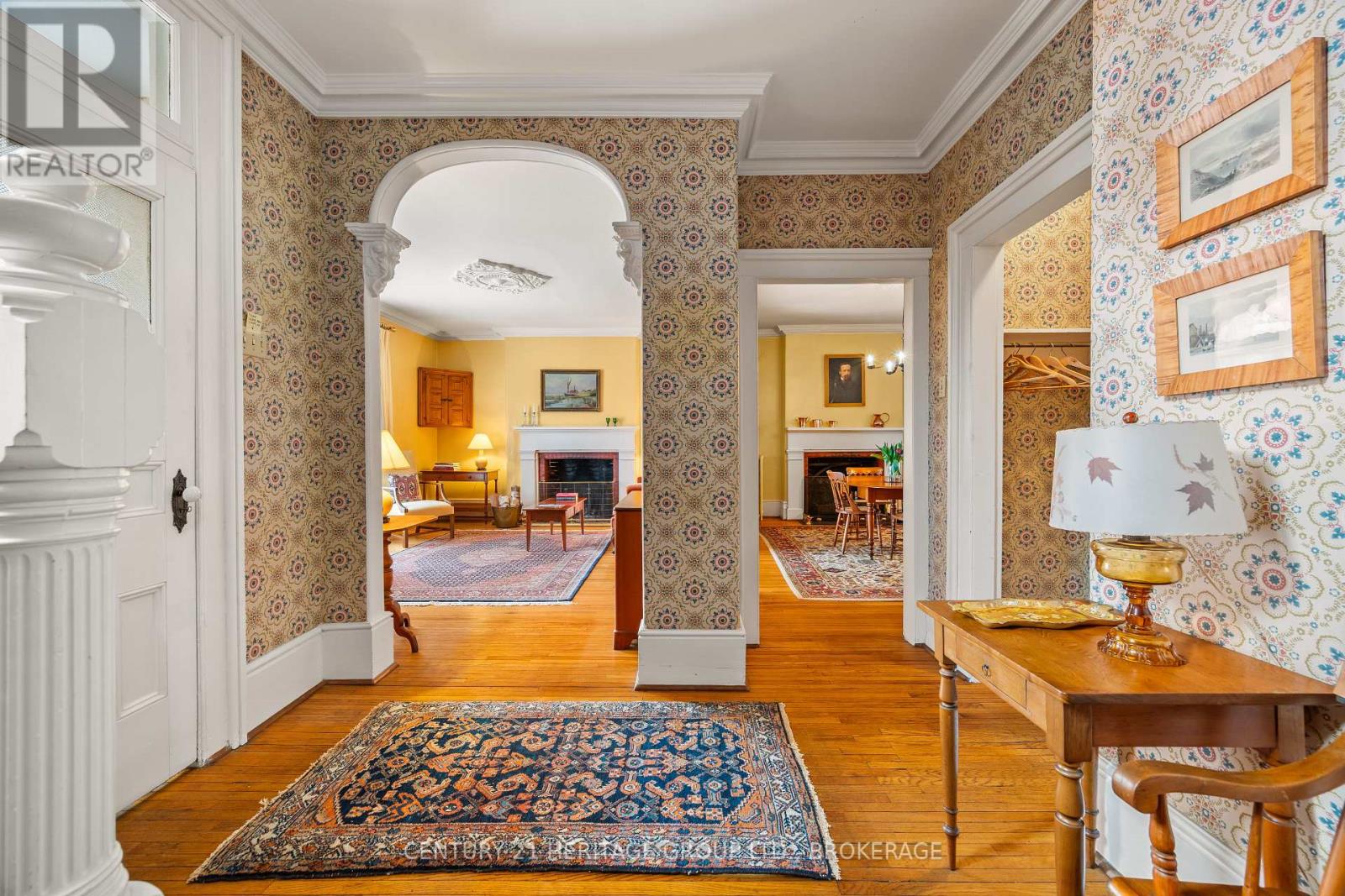 25 Wellington St - 175 years young and wholly magnificent - offers the perfect riposte to those who feel the world is crumbling around us. Built in 1851 by English-Canadian architect John Grist, this two and a half storey landmark limestone (with a superb board and batten addition) is one short block from City Park and two from Lake Ontario and ideally located between the market square and the university and the hospitals. This is its first appearance on the market since 1963. There are three fireplaces (including one in the largest of the second-floor bedrooms), more staircases than I could count, and a very rare "horsewalk" - an interior alleyway intended to permit a horse to be moved into long-gone rear stables. A window on the landing between floors is so large that one could launch a shuttle from it. The formal living and dining room have nearly unreachable ceilings and plaster mouldings. Serious plans have been hatched in these spacious Victorian parlours, jokes delivered, kids shushed, courtships proposed and dissolved. Life is packed right into the lath and plaster walls. The modern addition contains a main-floor bedroom (we're up to five now), and a bathroom (that makes three), as well as a breakfast room longer than the Brighton Pier. On the finished third floor you might install a guest suite, or hobby room, a cinema, or bed-sit. The lot is L-shaped, having merged with an old property that exits onto Lower Union. There is gravel parking, and a walkway and a garden. You expect Anthony Hopkins to appear with pastries. It is hard to know where to stop. I wrote some of these words on-site, a radiator ticking faintly, and felt strongly I was being shown a more hopeful way of thinking about the world, a comforting blend of history and perspective. My feeling is you should move for it. But a century from now it may be offered for sale again, so perhaps you wait. (id:64974)