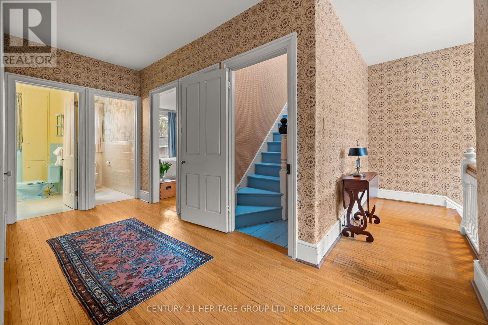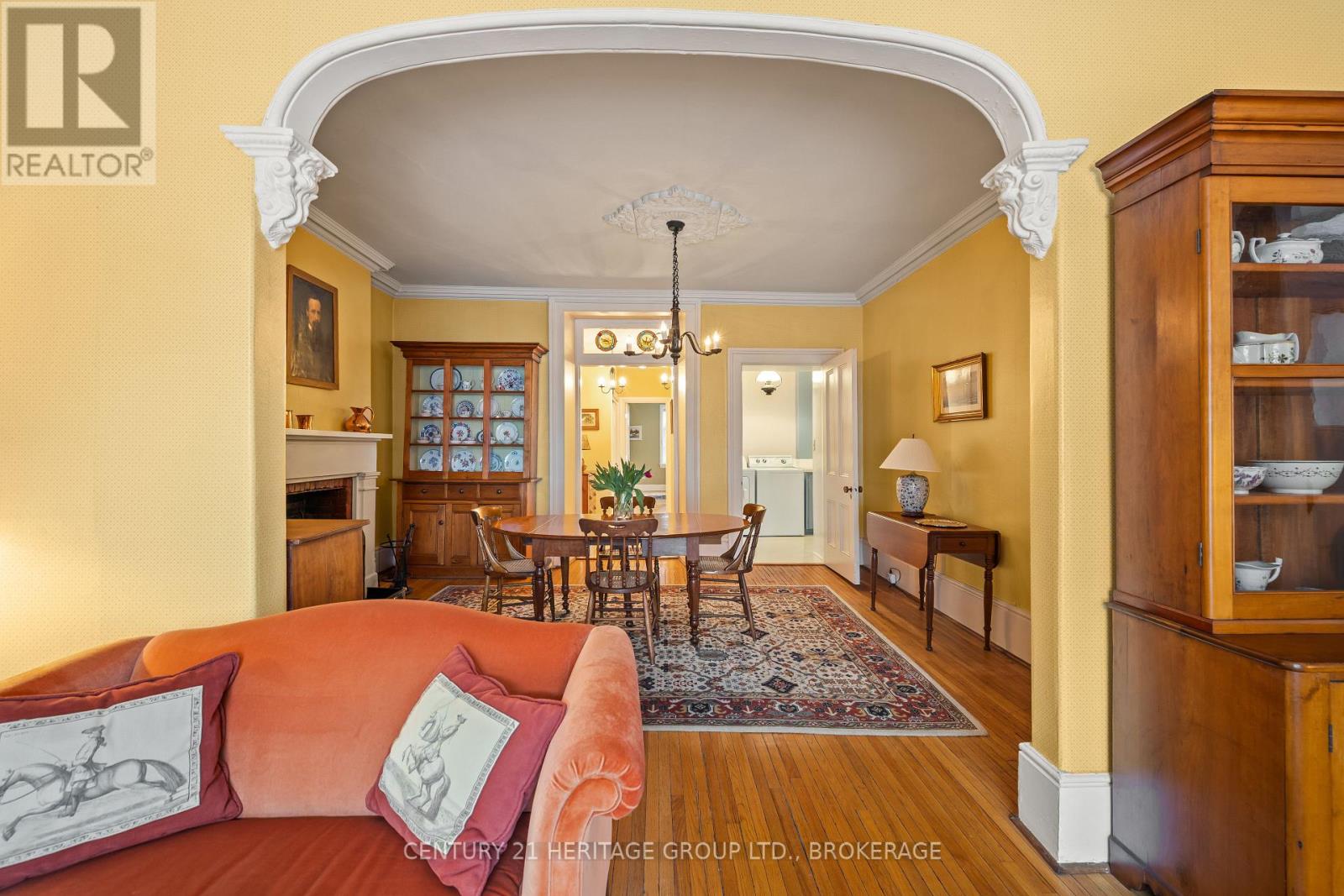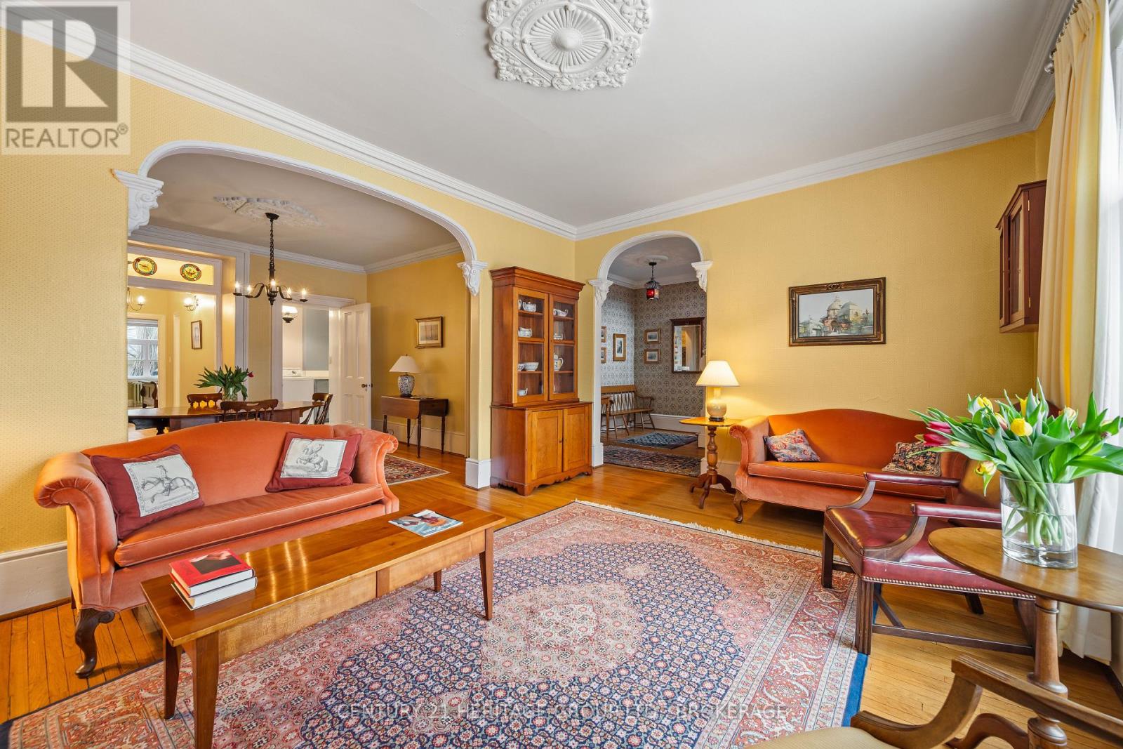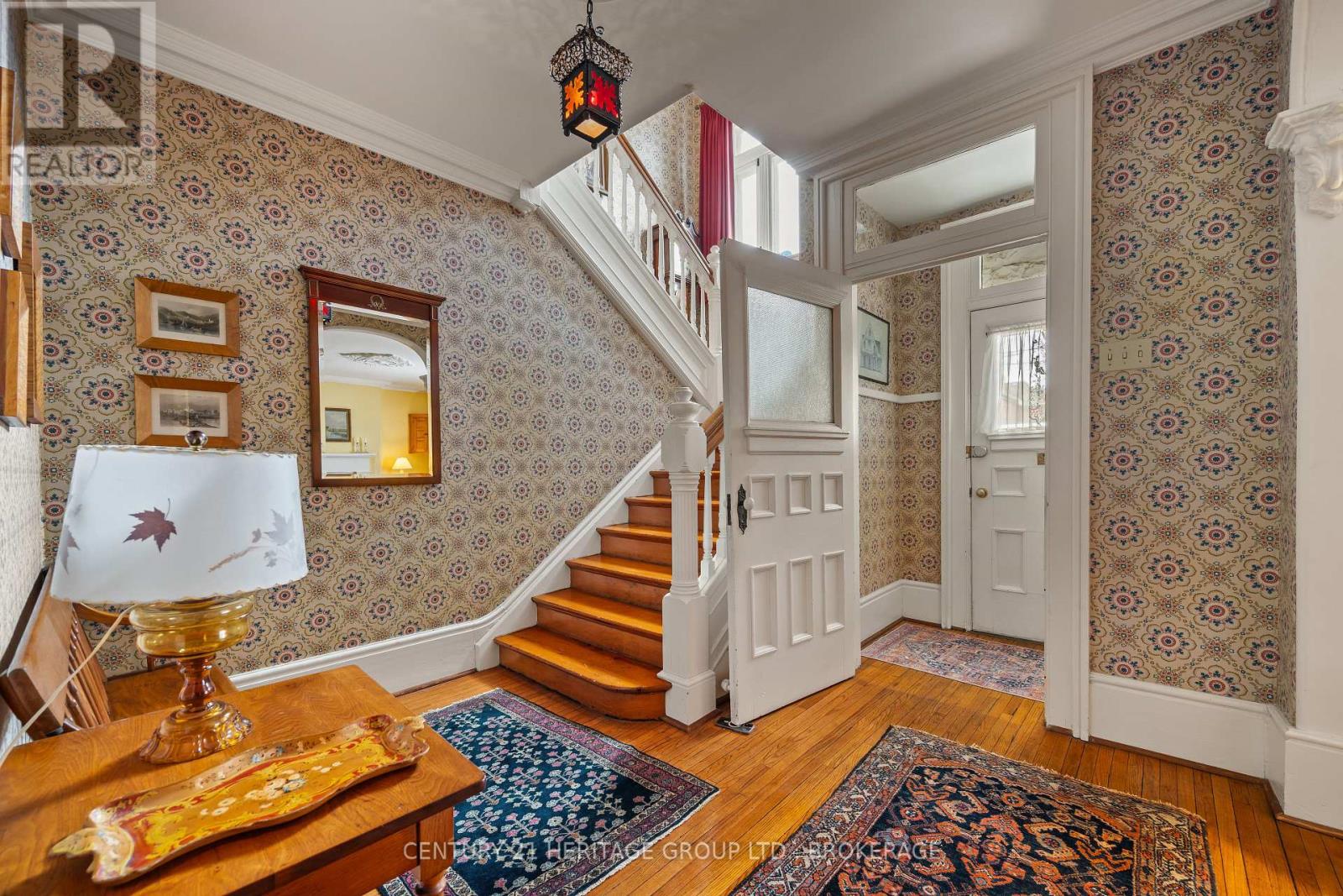 25 Wellington St - 175 years young and wholly magnificent - offers the perfect riposte to those who feel the world is crumbling around us. Built in 1851 by English-Canadian architect John Grist, this two and a half storey landmark limestone (with a superb board and batten addition) is one short block from City Park and two from Lake Ontario and ideally located between the market square and the university and the hospitals. This is its first appearance on the market since 1963. There are three fireplaces (including one in the largest of the second-floor bedrooms), more staircases than I could count, and a very rare "horsewalk" - an interior alleyway intended to permit a horse to be moved into long-gone rear stables. A window on the landing between floors is so large that one could launch a shuttle from it. The formal living and dining room have nearly unreachable ceilings and plaster mouldings. Serious plans have been hatched in these spacious Victorian parlours, jokes delivered, kids shushed, courtships proposed and dissolved. Life is packed right into the lath and plaster walls. The modern addition contains a main-floor bedroom (we're up to five now), and a bathroom (that makes three), as well as a breakfast room longer than the Brighton Pier. On the finished third floor you might install a guest suite, or hobby room, a cinema, or bed-sit. The lot is L-shaped, having merged with an old property that exits onto Lower Union. There is gravel parking, and a walkway and a garden. You expect Anthony Hopkins to appear with pastries. It is hard to know where to stop. I wrote some of these words on-site, a radiator ticking faintly, and felt strongly I was being shown a more hopeful way of thinking about the world, a comforting blend of history and perspective. My feeling is you should move for it. But a century from now it may be offered for sale again, so perhaps you wait. (id:64974)
