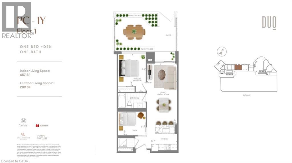 Brand new from VanMar Developments! Stylish 1 bed plus den, 1 bath Garden Suite with 10’ ceilings at DUO Tower C, Station Park. 657 sf interior with oversized 289 sq ft private terrace. Sleek breakfast bar setup with modern kitchen featuring quartz counters & stainless steel appliances. Large closable den space. In-suite laundry. Dedicated exterior entrance off the terrace as well as interior entrance through building corridor. Station Park amenities include: peloton studio, bowling, aqua spa & hot tub, fitness, SkyDeck outdoor gym, yoga deck, sauna & much more. Steps to shopping, restaurants, schools, transit, Google & Innovation District. (id:64974)