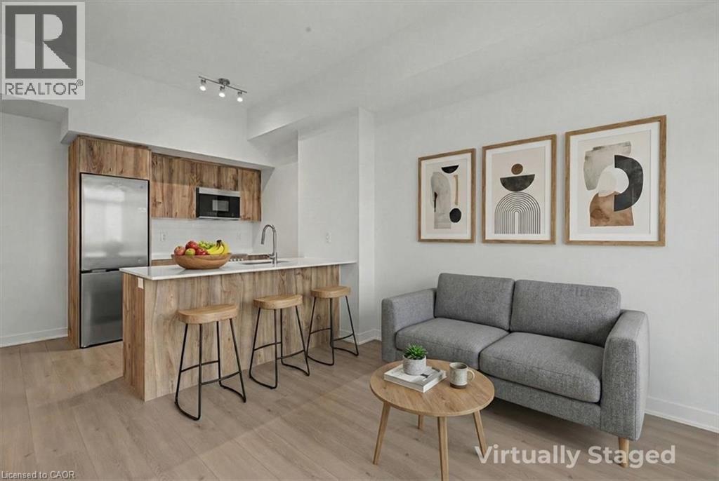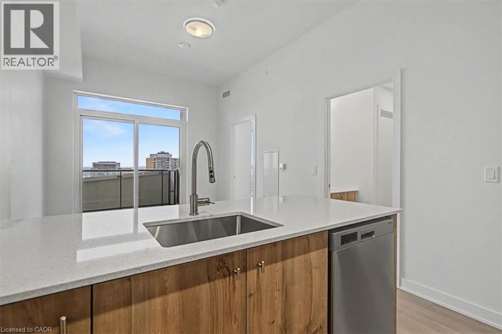 Welcome to Unit 2202 at Station Park Duo, the newest addition to Kitchener’s premier urban community. This bright and beautifully finished one bedroom, one bath condo delivers modern, low-maintenance living in the heart of Midtown. The sleek kitchen is complete with stainless steel appliances, granite countertops, soft-close cabinetry and pot lights, opening into a sun-filled living space with stunning sunset views from your private balcony. In-suite laundry adds everyday ease. 1 underground parking space and 1 locker included. Station Park is recognized for its exceptional resort style amenities including concierge service, a sky deck, swim spa, hot tubs, bowling lanes, a fully equipped fitness centre with Peloton and yoga studio, resident lounges, co working spaces, BBQ terraces, dog amenities, EV charging, and more. Steps from the LRT, Google, Downtown Kitchener, Uptown Waterloo, dining, shopping and the Innovation District. Short-term rentals (Airbnb) permitted (license capped at 20% of owners). Some photos virtually staged. (id:64974)