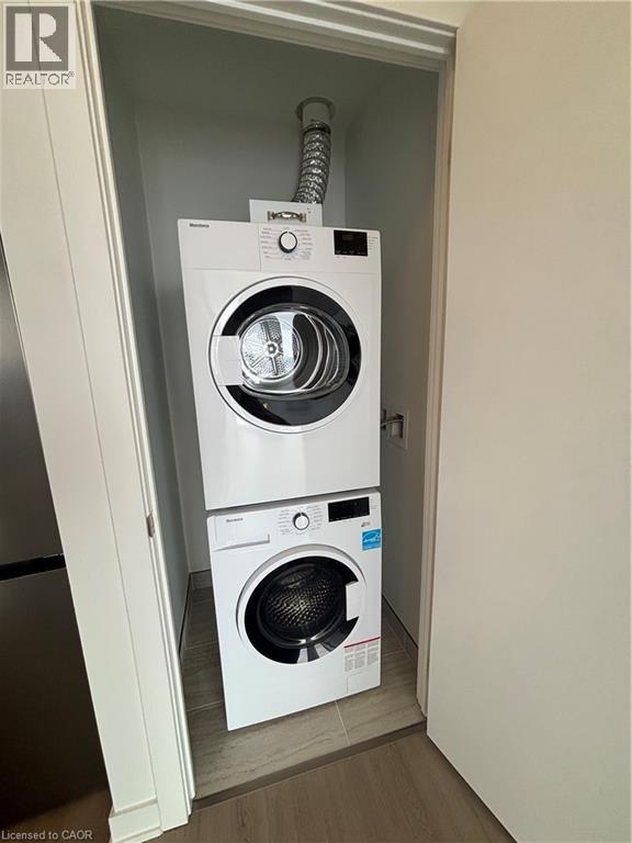 Welcome to this stunning 30th-floor corner unit at DUO Condos in the heart of Station Park, downtown Kitchener. This bright 1-bedroom suite features 9-foot ceilings and expansive floor-to-ceiling windows, filling the space with natural light and showcasing sweeping city views from your private balcony. The open-concept layout offers quartz countertops, sleek modern cabinetry, high-efficiency stainless steel appliances, a glass standing shower, and in-suite laundry. Residents enjoy 24-hour concierge service and access to premium amenities including a bowling alley, games lounge, swim spa, sauna, state-of-the-art fitness centre with Peloton studio, and an expansive outdoor terrace. Ideally located steps to the Innovation District, LRT, GO Transit, Victoria Park, shopping, dining, Grand River Hospital (WRHN), and major employers such as Google, D2L, and Communitech. Available immediately. (id:64974)