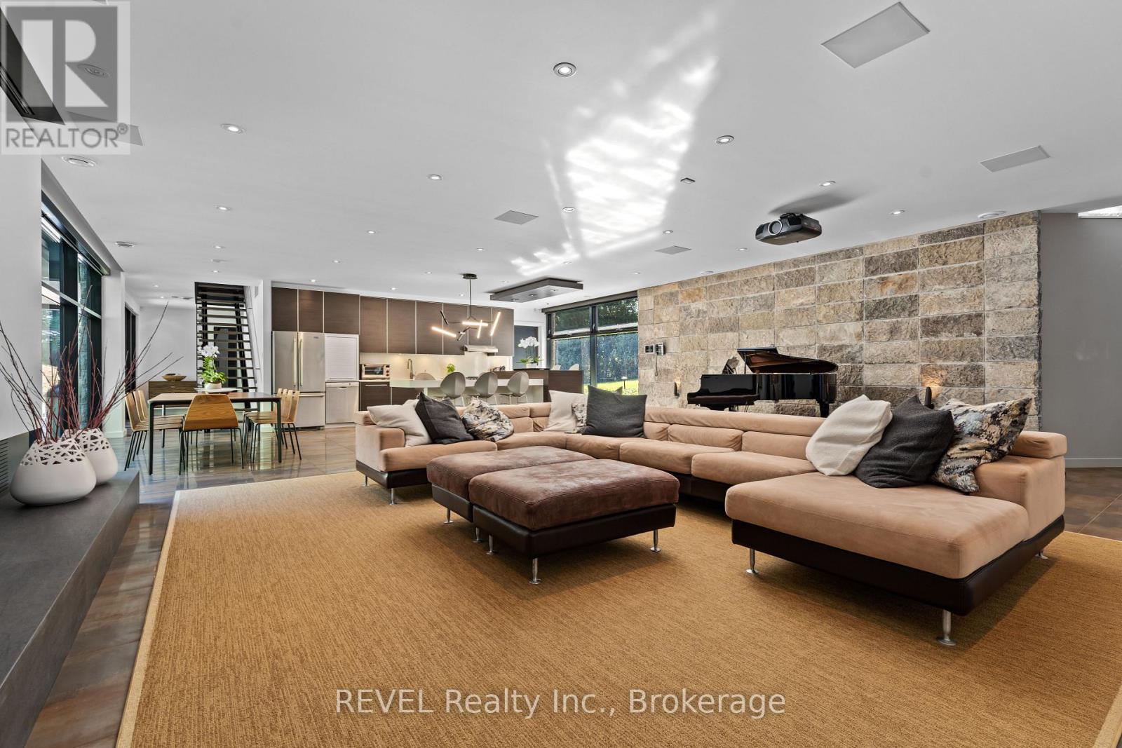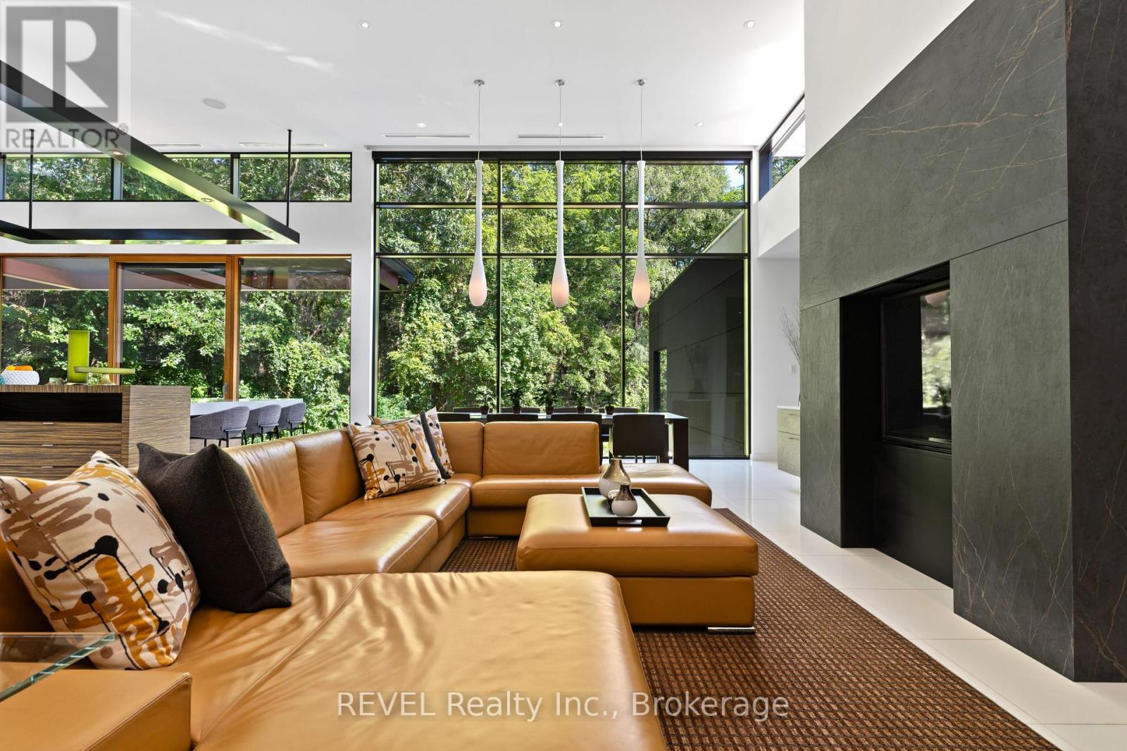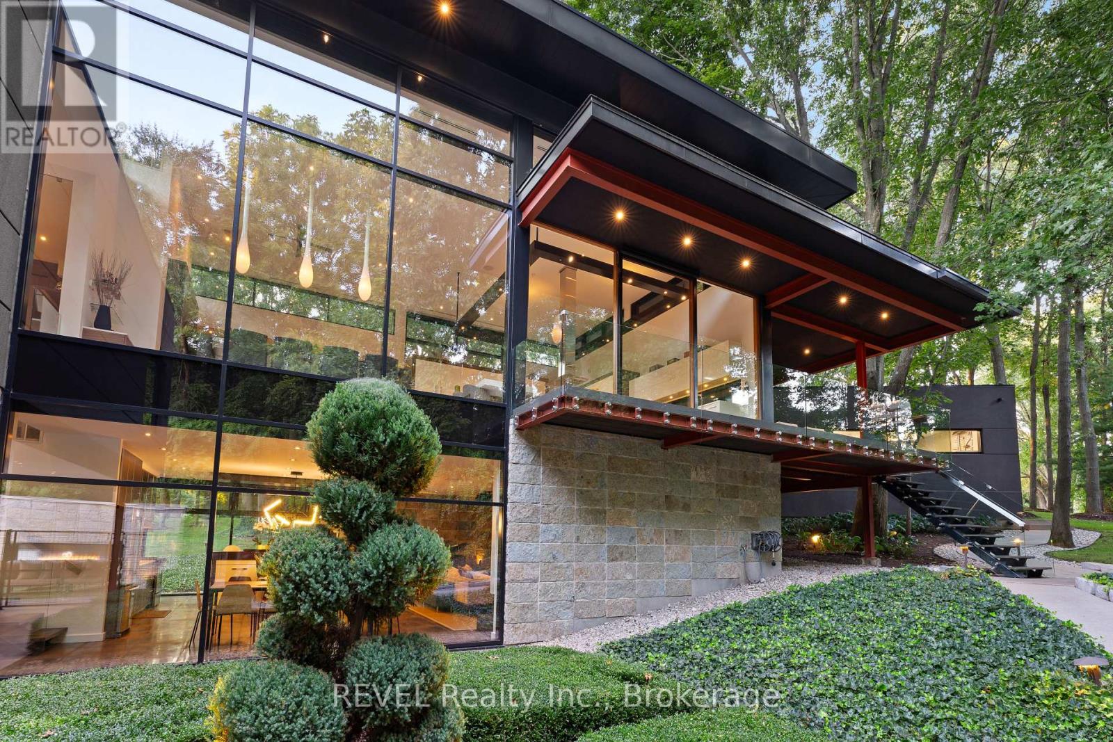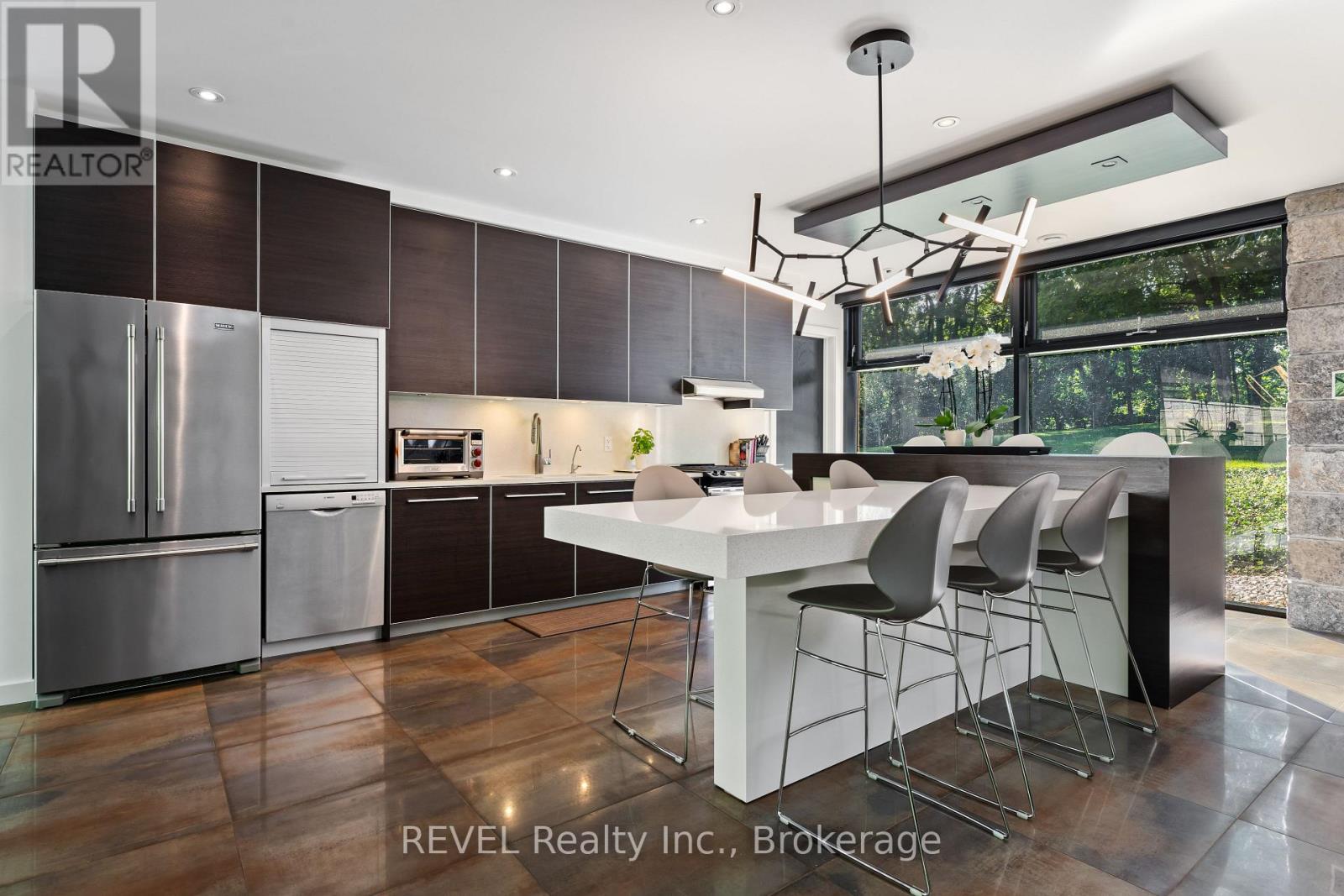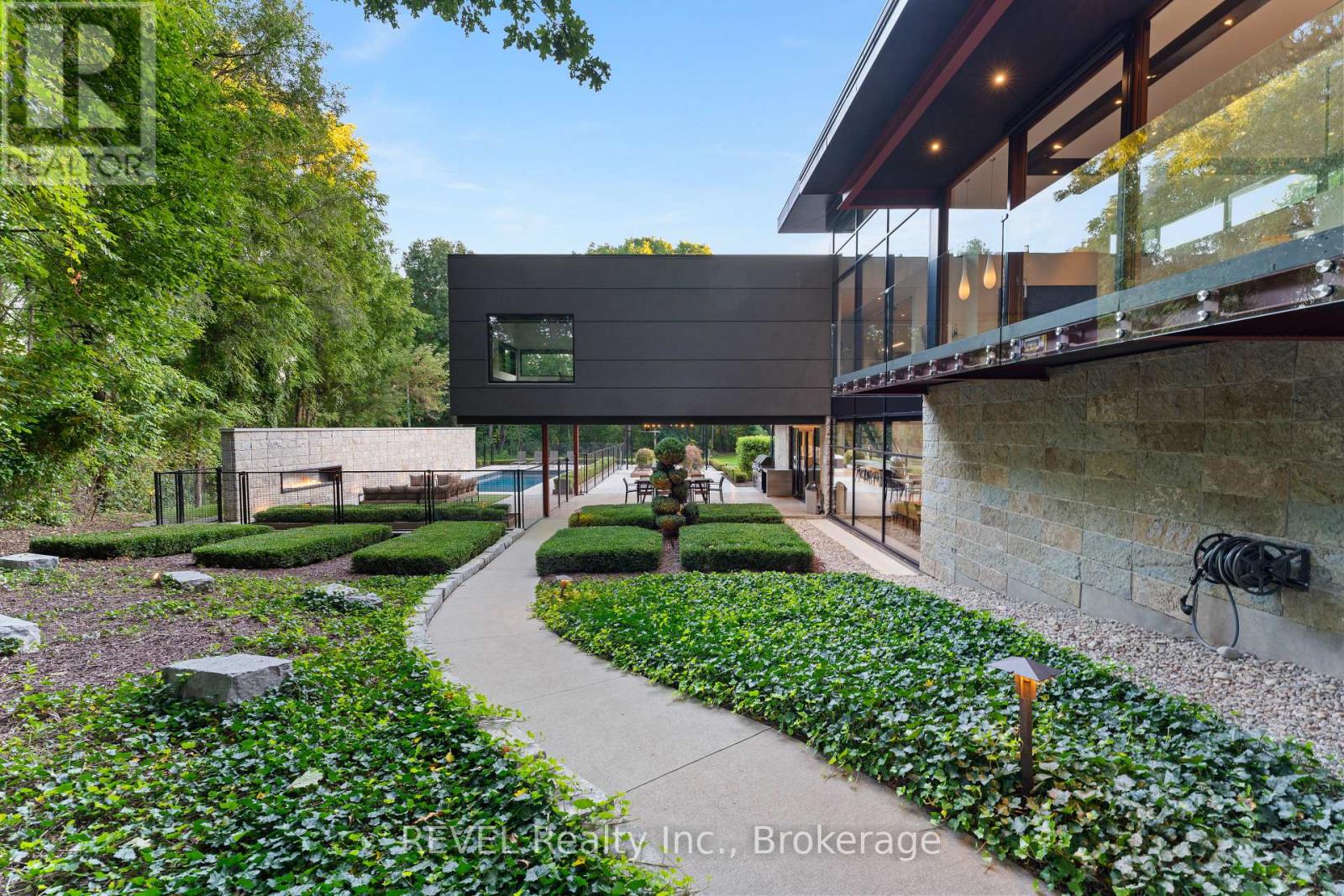 Architectural majesty and artistic risk define luxury for this modern bungalow estate in the charming township of Fonthill. Emerging from a 2.9 acre property populated by picturesque, Carolinian trees, this modernly unique one story creation with full walkout and floor to ceiling curtain wall windows, fuses a designer eye with an environmentalist's appreciation for natural integration. Structured with steel frame construction, and offering in floor heating via boiler and concrete floors on both main and lower levels, this mansions elite finishes, set against the views of forested privacy, present pleasurable pastoral perspectives and authentic tranquility, inside and out. Features include 16' ceilings in main living area; specialty imported glass porcelain tiles; engineered hardwood; fully automated light and sound systems by Crestron Products; surround sound theater area with power drop down screen; wine and artisanal meat cellar; enormous upper and lower designer kitchens with quartz stone countertops; three plus one spacious bedrooms; main floor glass walled office; master ensuite with oversized shower; and customized built ins throughout for exceptional storage capacity. The sauntering transition to resort worthy outdoor amenities is just as dazzling, with walkouts that seamlessly flow into a heated saltwater pool area with feature stone wall, outdoor gas fireplace, cedar clad washroom and change rooms. For the luxury car enthusiast, and with 400 amp electrical service available, enjoy the recently built 2600sq.ft showcase accessory garage(detached) that complements an oversized four car garage attached to the home. With approximately 5400 sq. ft of fully finished and fully serviced living space conceptualized to exploit every possible vantage point of this incredible landscape, this estate sets a new standard as the epitome of luxury listings. (id:64974)