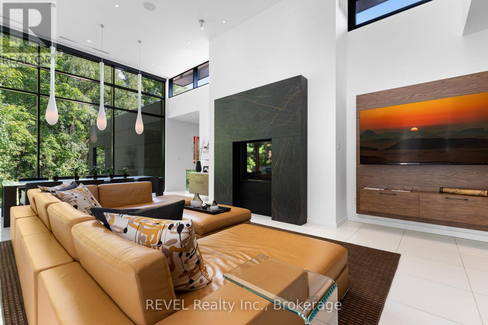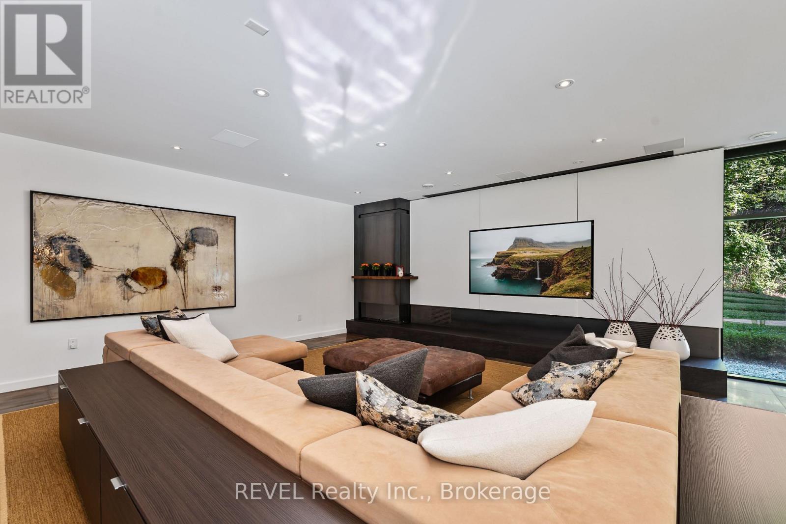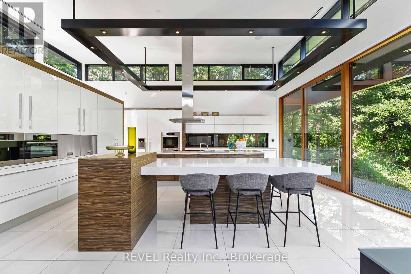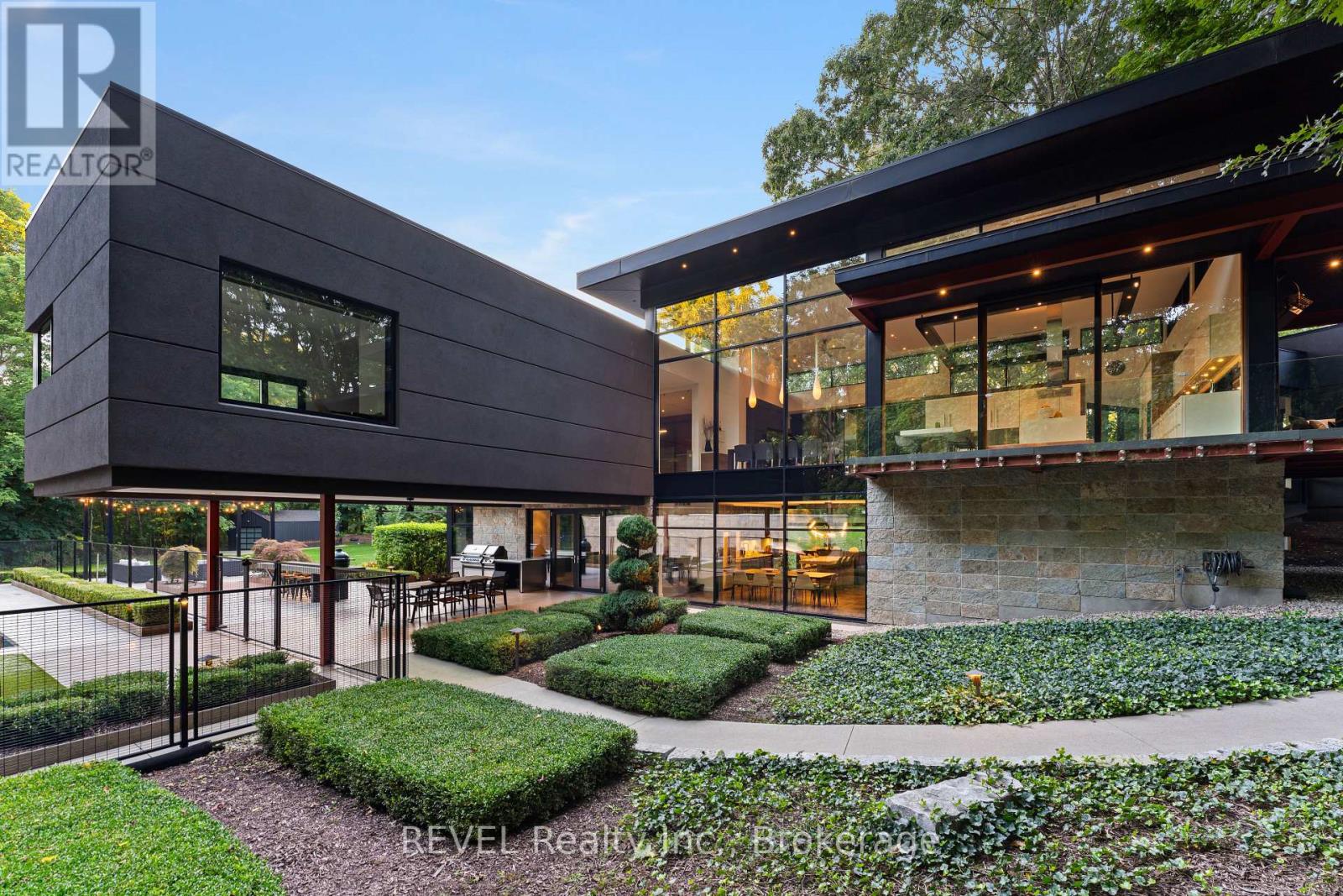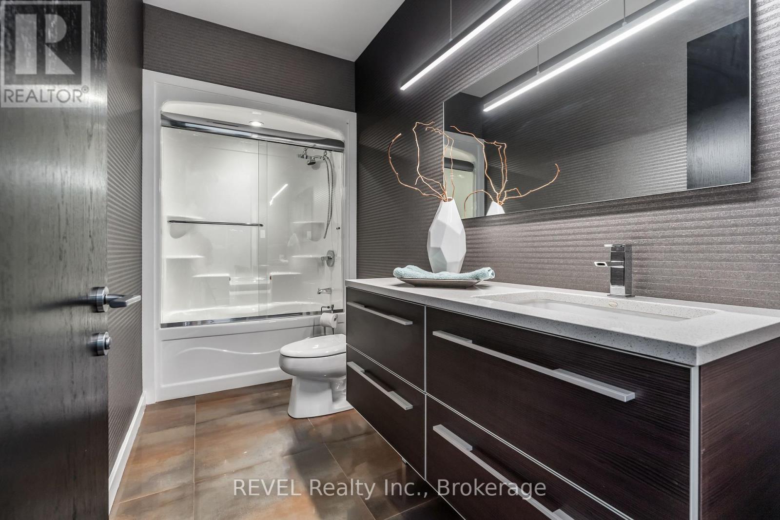 Architectural majesty and artistic risk define luxury for this modern bungalow estate in the charming township of Fonthill. Emerging from a 2.9 acre property populated by picturesque, Carolinian trees, this modernly unique one story creation with full walkout and floor to ceiling curtain wall windows, fuses a designer eye with an environmentalist's appreciation for natural integration. Structured with steel frame construction, and offering in floor heating via boiler and concrete floors on both main and lower levels, this mansions elite finishes, set against the views of forested privacy, present pleasurable pastoral perspectives and authentic tranquility, inside and out. Features include 16' ceilings in main living area; specialty imported glass porcelain tiles; engineered hardwood; fully automated light and sound systems by Crestron Products; surround sound theater area with power drop down screen; wine and artisanal meat cellar; enormous upper and lower designer kitchens with quartz stone countertops; three plus one spacious bedrooms; main floor glass walled office; master ensuite with oversized shower; and customized built ins throughout for exceptional storage capacity. The sauntering transition to resort worthy outdoor amenities is just as dazzling, with walkouts that seamlessly flow into a heated saltwater pool area with feature stone wall, outdoor gas fireplace, cedar clad washroom and change rooms. For the luxury car enthusiast, and with 400 amp electrical service available, enjoy the recently built 2600sq.ft showcase accessory garage(detached) that complements an oversized four car garage attached to the home. With approximately 5400 sq. ft of fully finished and fully serviced living space conceptualized to exploit every possible vantage point of this incredible landscape, this estate sets a new standard as the epitome of luxury listings. (id:64974)