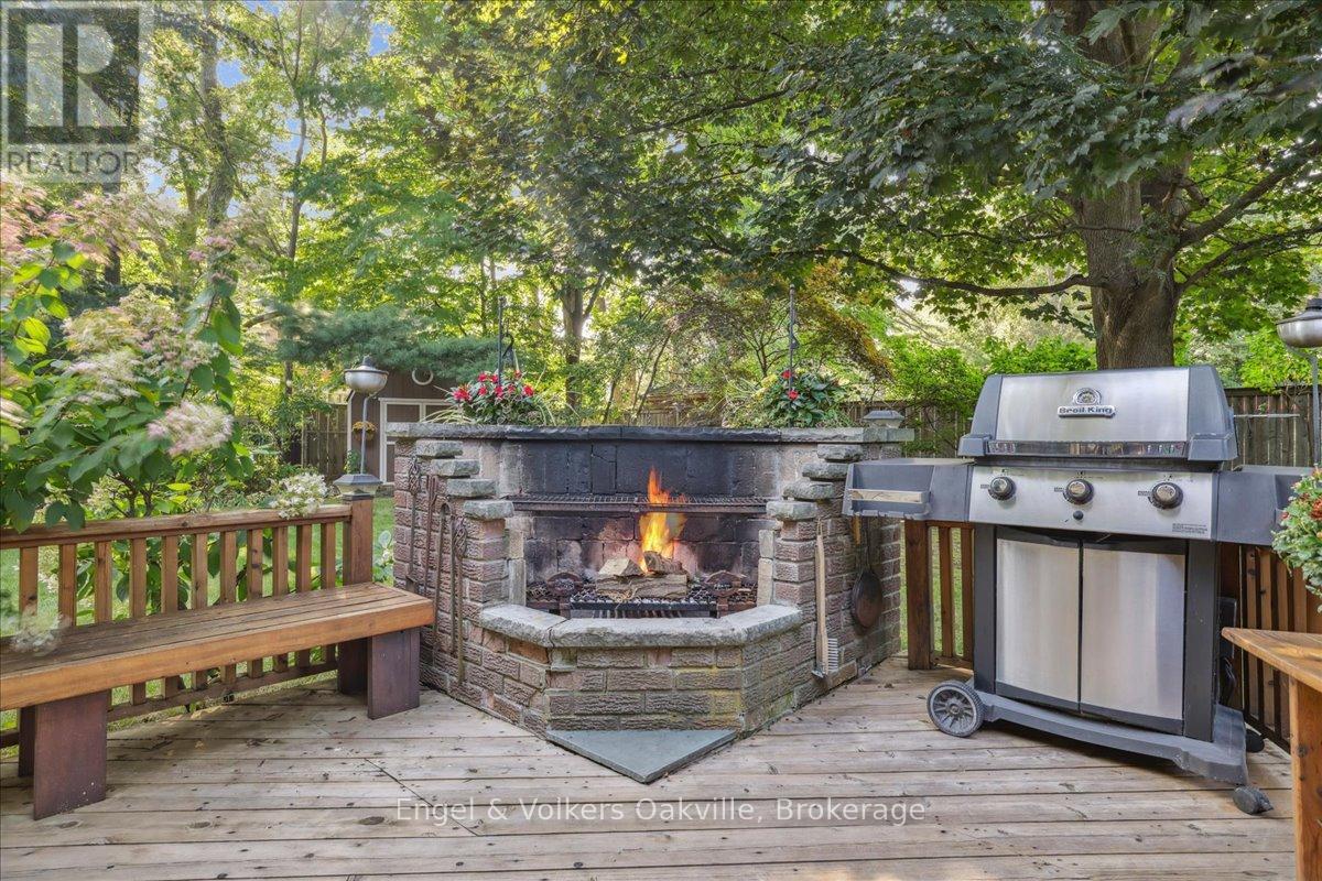 Welcome to 250 Gatestone Avenue- where every season feels like home! Tucked away on a picturesque tree - lined street, this pride of ownership home is situated in a sought after neighborhood of East Oakville. Sprawling property of 100 x 150 ft lot size is surrounded by mature trees , professionally landscaped complete w/irrigation and shed (2020). This 5 bedroom home has elegant curb appeal and the driveway conveniently accommodates 6 vehicles with an additional double car garage ! Step inside the covered veranda to an oversized foyer featuring a solid wood staircase and lots of natural light from the bay windows showcasing the front gardens. Elegant living room/dining room open concept, carpet free w/custom wood wainscoting. The eat-in kitchen is complete with island, desk area and walk out to a private deck, ideal for entertaining around the outdoor fireplace perfect for your own personal escape. The family room has a cozy wood fireplace w/ walk-out to the backyard deck. The home boasts over 3500 square ft of total liveable space, all five bedrooms on the second level are generous in size and offer comfort and connection for the family . The spacious primary has double door entry , ensuite privileges (renovated 2019) walk in closet and a balcony accommodating lounge chairs and table. The lower level is timeless w/solid wood wet bar and bar fridge and oversized recreation room w/custom wood built-in shelves and custom solid oak wood walls. An additional bathroom , work shop, cedar closet and tons of storage! Excellent schools in the area such as St. Vincents, Oakville Trafalgar Highschool, Maple Grove Public School, St. Mildreds Lightbourne Schools and close proximity to QEW. Follow your Dream, Home. (id:64974)