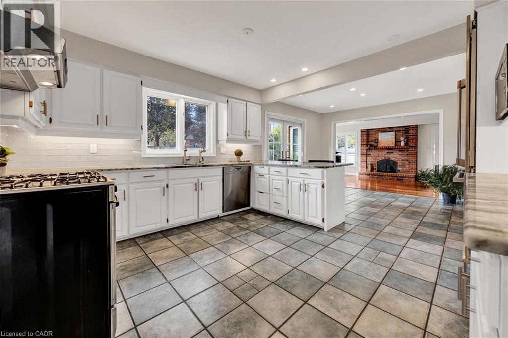 Welcome to 250 Grey Squirrel Place—an elegant family home tucked along a quiet crescent in one of Waterloo’s most desirable neighbourhoods, Colonial Acres, where warmth, space, and sophistication meet. Set on a rare double lot, this property offers exceptional outdoor space and privacy. The moment you step inside, you’re met with a stunning view of the main floor: a vaulted 14-foot ceiling in the front living room anchored by a wood-burning fireplace and framed by gleaming hardwood floors. A second wood fireplace enhances the cozy atmosphere in the main-level family room, while a dedicated office provides a quiet workspace. The mudroom/laundry room, conveniently located by the garage entrance, adds everyday practicality. The kitchen is designed for connection and function, featuring granite counters, Bosch stove and Miele appliances, and a walkout to the brand-new 2025 tiered wood deck overlooking the double-sized backyard—complete with a sports court, two Honeycrisp apple trees, and a peach tree, offering the perfect space for family play, gardening, or summer entertaining. Upstairs, you’ll find four generous bedrooms, including a serene primary suite with an ensuite, along with a second full washroom. The fully finished basement extends your living space with two additional bedrooms, a three-piece bathroom, and a large recreation room perfect for movie nights or weekend gatherings. With a double-car garage, interlock driveway, and mature trees surrounding the property, every detail speaks to comfort and quality. Ideally located minutes from Uptown Waterloo, the University of Waterloo, and Waterloo Park, with quick access to The Boardwalk, RIM Park, and Grey Silo Golf Course, this home offers the perfect balance of family living and professional convenience. (id:64974)