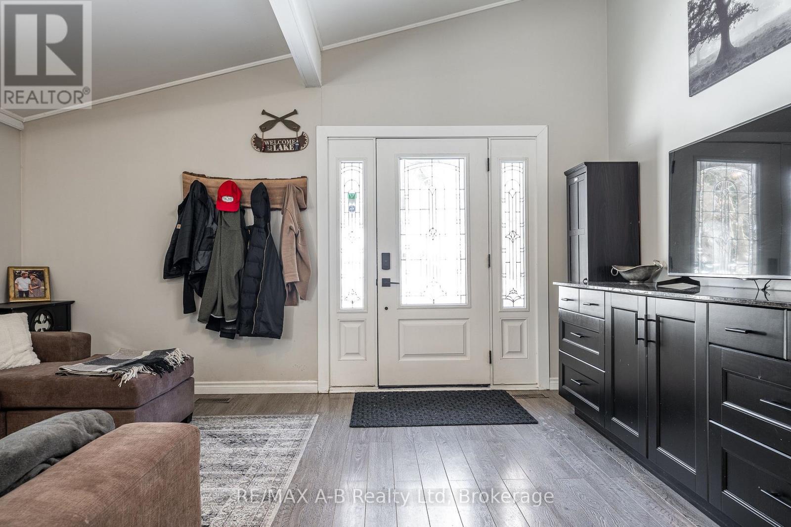 Updated Viceroy home in the Tree Tops Community of Lakeside, just steps from Lake Sunova, offering comfortable year-round living. The home features high ceilings in the living room, an eat-in kitchen, and a rear family room with a gas fireplace and dining area that opens directly to the backyard. A spacious deck overlooks mature trees and open farmland, providing a private and relaxing outdoor setting. With a minimal annual community fee of $750, residents enjoy road maintenance, common-area grass cutting, deeded access to the community portion of lake and beach, and use of the community hall, playground, tennis courts, and pickleball courts. A 24'x16' insulated garage with loft adds valuable space and includes its own gas heat, air conditioning, and 60-amp electrical service, ideal for storage, a workshop, or hobbies. Click on the virtual tour link, view the floor plans, photos and YouTube link and then call your REALTOR to schedule your private viewing of this great property! (id:64974)