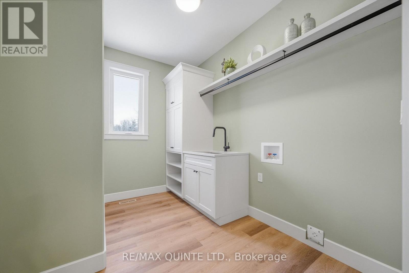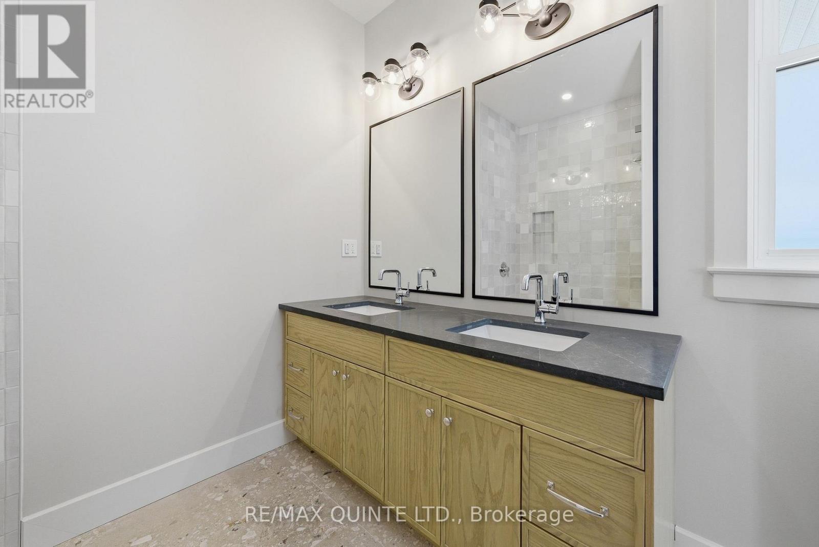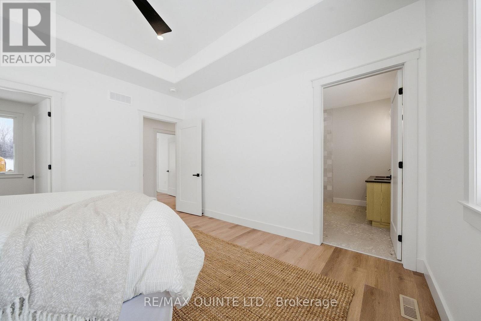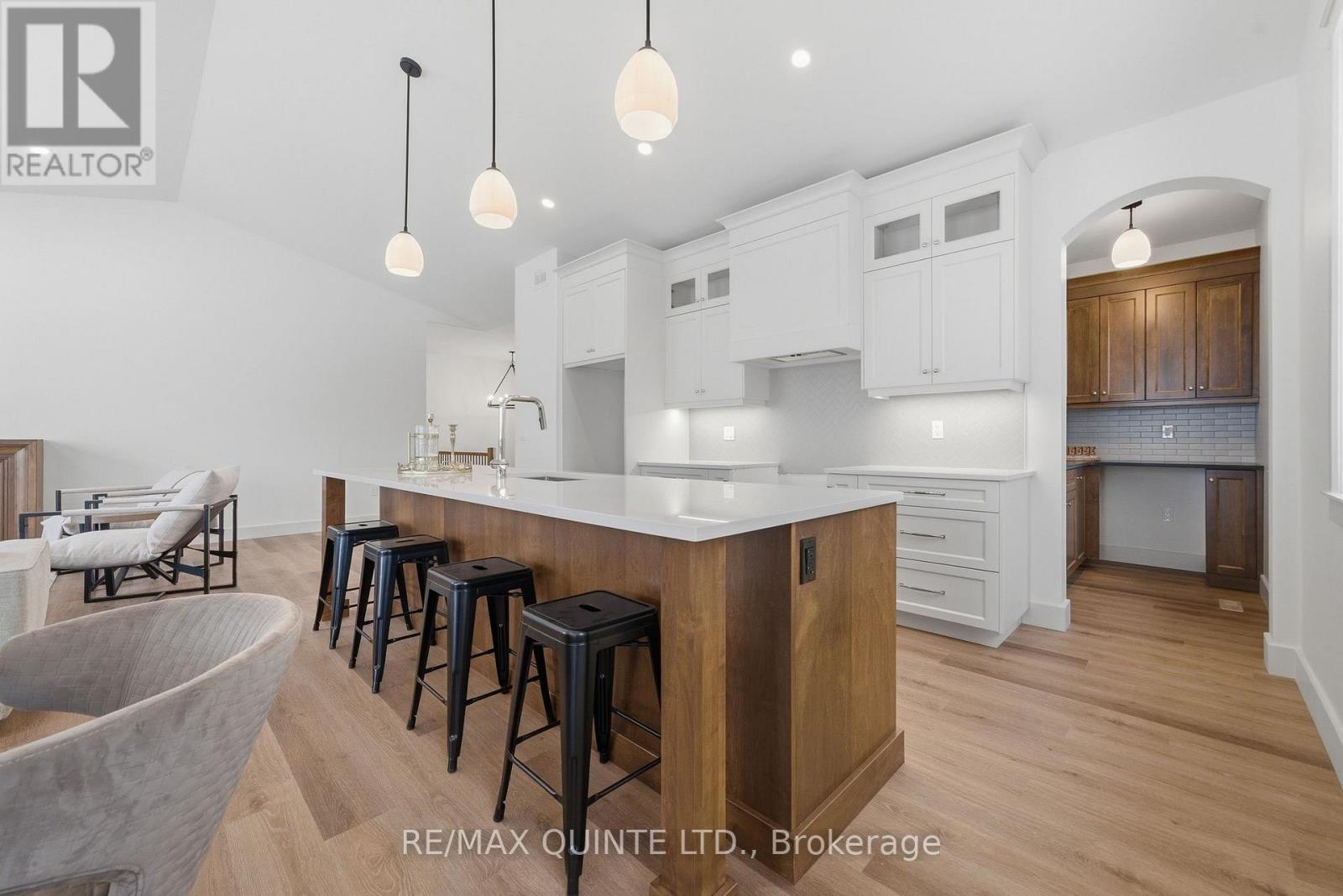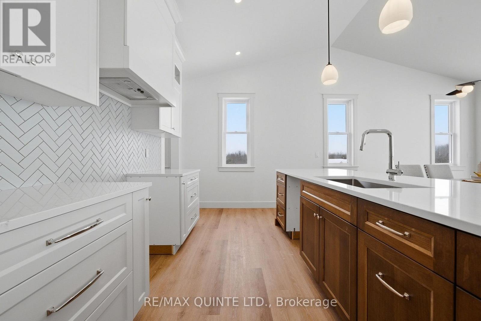 Brand-New completed executive home on Harmony Road. This gorgeous 1,730 sq. ft. bungalow is on a country lot, offering rural privacy while being only 15 minutes from Belleville. Designed with family living in mind, the home features a bright, open-concept kitchen, dining, and living area with large windows, vaulted ceilings, and patio doors leading to a covered deck. The kitchen is finished with quartz countertops, under-cabinet lighting, and a large walk-in pantry with a sink. The spacious primary suite includes a walk-in closet and a spa-inspired ensuite with double sinks, heated tile floors, a quartz vanity, and a custom tiled shower with a glass enclosure. Two additional bedrooms, a full main bathroom, and a conveniently large mudroom accessed from the 3-car garage. The home includes a private laundry room, set apart in its own space located near the bedrooms. The lower level is designed with an additional bedroom, den/office, full bathroom, and a recreation room with a walkout. With so many advanced features throughout the home, the best way to truly admire them is to see it with your own eyes! (id:64974)