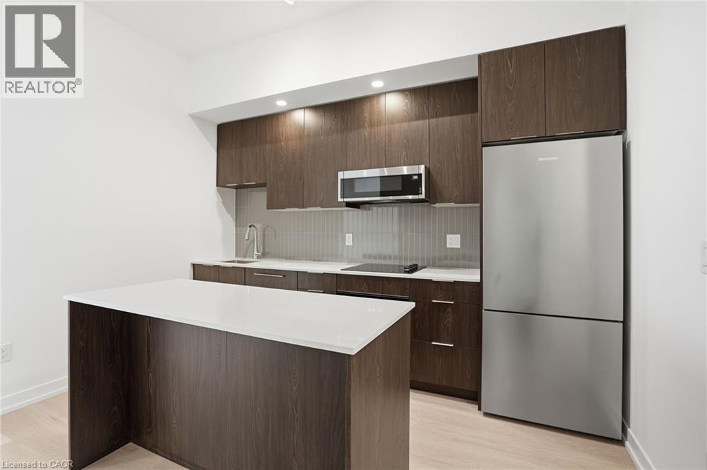 Welcome to this brand new, never lived in 2 bedroom, 2 bathroom residence located in a truly high end, luxurious building that stands apart from your typical condo. From the moment you enter, you will notice the quality of finishes, thoughtful design, and upscale feel throughout both the unit and the building amenities. This bright and spacious unit features a beautifully designed kitchen with quartz countertops, a large island for additional cooking and baking space, a full size fridge, and a generous amount of cabinetry. The open concept layout flows seamlessly into the living area, and with large windows and plenty of lighting throughout, the unit feels bright, open, and inviting. The unit also includes keyless entry and a smart thermostat, adding convenience and modern comfort to your daily living. Both bathrooms are finished with stylish cabinetry and quartz countertops. The primary bedroom features a private ensuite with a stand up shower, while the second bathroom includes a full tub. This is not your typical condo building. Residents enjoy access to premium amenities including a fully equipped gym, yoga studio, co working space, party room and a pet washing station. The unit also includes one parking space and one locker for additional storage. One of the most impressive features is the private rooftop terrace exclusive to this unit, complete with water, electrical, and gas hookups. This space allows you to create your own outdoor oasis with a barbecue, patio furniture, dining area, and lounge space, perfect for entertaining and enjoying summer evenings. Immediate possession available as the unit is vacant. Looking for a one plus year lease. Tenant to pay all utilities including hydro, water, and gas. Internet is included in the monthly rent. No pets preferred. Seeking AAA tenants. $700 key deposit. (id:64974)