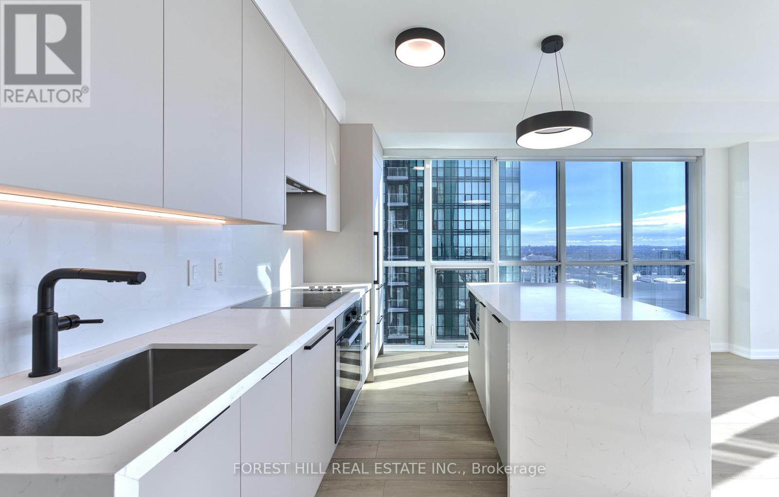 **Newly renovated modern South-East facing corner Condo in a prime North York Location. Nine-foot ceilings and the open concept design flood the space with light, while you enjoy unobstructed views of the CN tower and downtown core. Newly renovated kitchen is a chef's dream. Premium Miele appliances integrate seamlessly with new custom cabinetry featuring ambient LED lighting. A striking waterfall edge quartz island with breakfast bar seating becomes your natural gathering place, anchored by sleek new lighting. Every detail has been thoughtfully considered. Brand new, high-quality waterproof vinyl flooring delivers both durability and sophistication underfoot, while coordinated brand new matte black plumbing fixtures, hardware, and lighting create visual cohesion throughout. Upgraded matte grey closet doors add subtle elegance, and light-filtering blinds strike the perfect balance between privacy and natural luminosity. The master ensuite elevates the experience further with a stylish matte black glass sliding door shower system. The versatile den seamlessly transitions into a home office or provides additional storage, adapting to your lifestyle. $50k in upgrades making it one of a kind unit. Beyond your walls, the building elevates your lifestyle. Twenty-four-hour concierge and security, a rooftop terrace with BBQ, gym, indoor pool, party room, and guest suites ensure there's always something to enjoy.Your location is unbeatable. Direct indoor access to Yonge and Sheppard subway lines means effortless commuting. The surrounding complex features LCBO, Food Basics, a food court, pharmacy, schools, and countless entertainment options-all steps away. HWY 401 access is quick and convenient.This is where modern aesthetic meets thoughtful design. Don't miss this incredible opportunity! (id:64974)