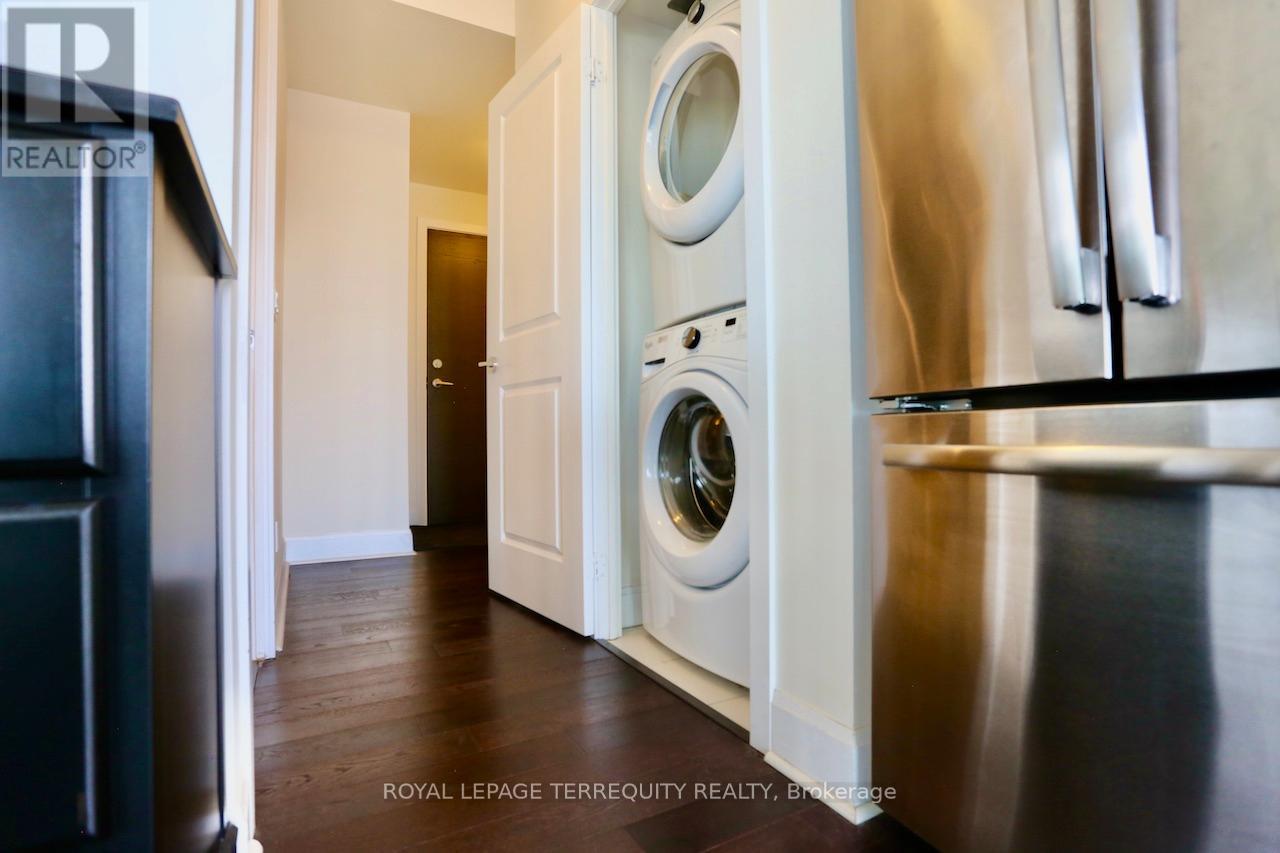 Partial View of Lake, Oversized 1 bedroom corner suite with 381SF wrap-Around Balcony with 2x Walk-Outs, Floor-To-Ceiling Glazing, 9ft Ceilings, 1x Parking, 1x Locker(Oversized), SS Appliances, Ensuite Laundry, Window Coverings | Amenities: Guest Suites, Car Wash, Gym, Concierge, Games Room, Rooftop Deck, Party Room, Security Guard, Media Room, Fibrestream, Internet, Visitor Parking, Outdoor Pool.619SF Interior + 381SF Balcony = 1000SF (Builders Layout Plan)Oversized locker situated immediately across parking stall on P3Watch Virtual Tour! Vacant Possession Possible - Friendly Tenant. (id:64974)