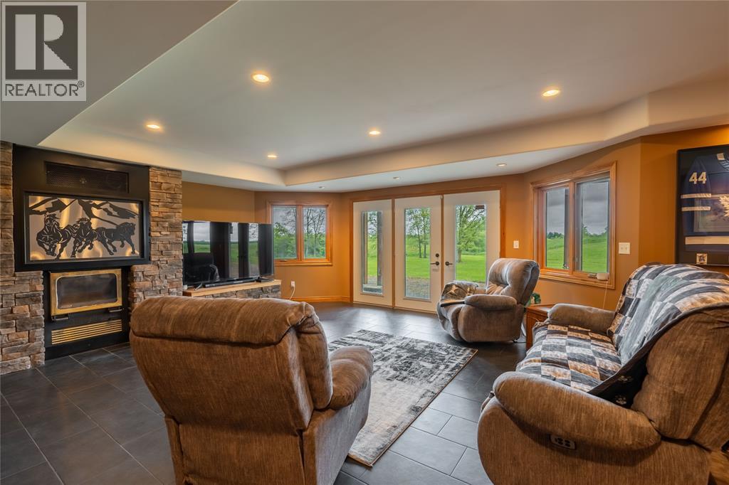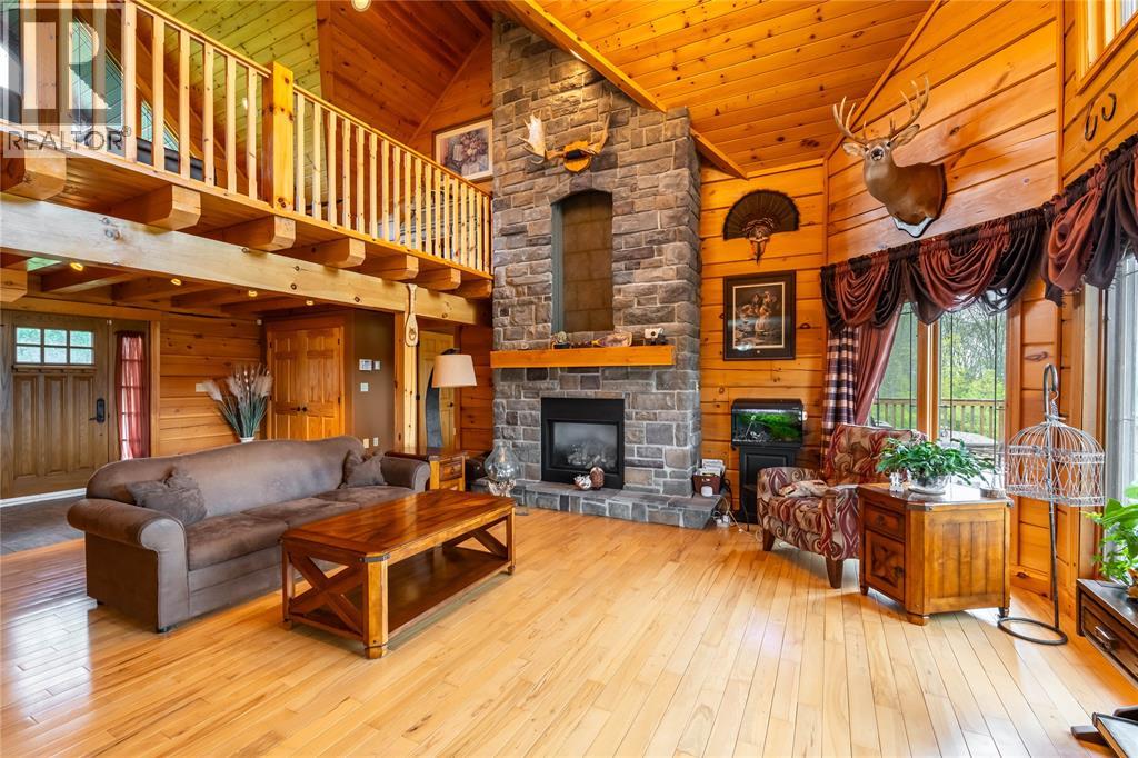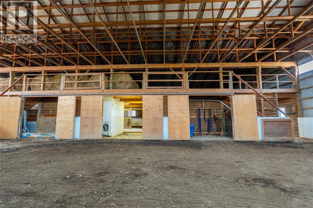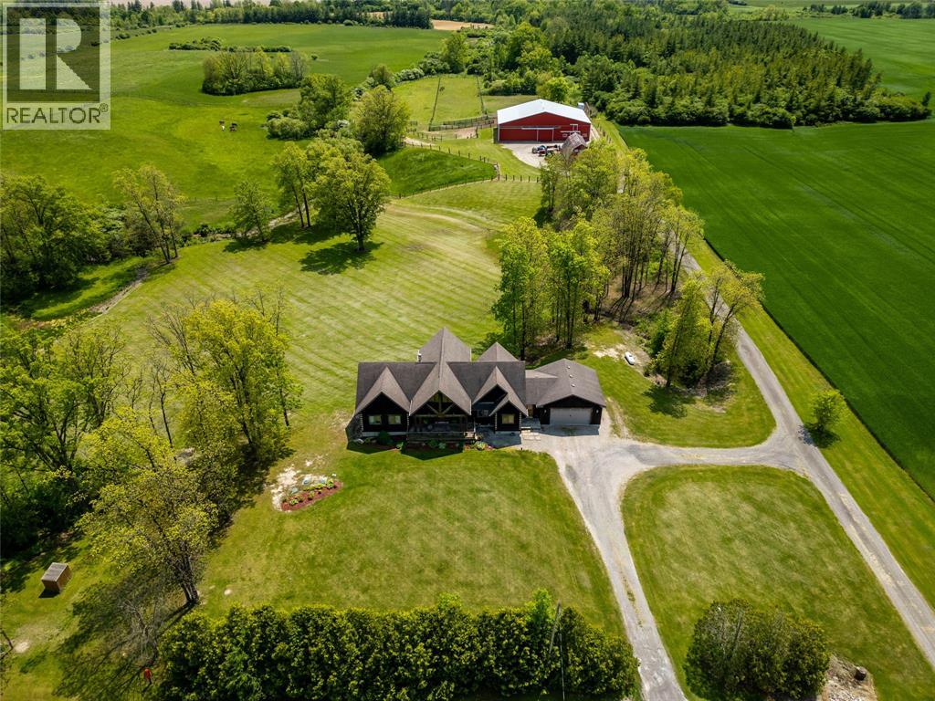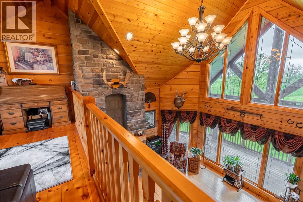 Introducing an exceptional country estate that captures the essence of luxury living amidst stunning rolling hills and breathtaking topography. This one-of-a-kind property spans 50 acres, featuring 30 workable acres, perfect for equestrian pursuits. The estate includes a remarkable horse barn equipped with 10 stalls, a wash stall, and 4 paddocks, complemented by multiple picturesque pasture fields. An impressive indoor arena, sized at 64 x 72, awaits both horses & riders. The centerpiece of this estate is the striking log home, designed to resemble a stylish chalet retreat. With 4 spacious bedrooms & 2 luxurious bathrooms, the interior showcases exquisite craftsmanship with wooden beams and gleaming wood finishes throughout. The main floor living area truly embodies the heart of the home, featuring a showstopper combination of expansive windows and a stunning stone fireplace with waterfall feature that creates a warm and inviting ambiance. The kitchen has abundant cabinetry, counter space & beautiful stone backsplash. The expansive back deck wraps around the entire rear of the house, providing a tranquil setting for outdoor dining and relaxation. The oversized master bedroom has a remarkable custom walk-in closet complete with cabinetry & shelving. The ensuite bathroom is a spa like retreat with elegant travertine tile, oversized shower & Jacuzzi tub.The second story offers an ideal sitting room that overlooks the main living area. Custom windows provide views not only of the living space below but also of the serene property, creating a seamless connection with nature, offering panoramic views of the picturesque surroundings. Cozy up by the floor-to-ceiling stone fireplaces in both the main living area & basement, where the walkout design provides easy access to the outdoors & entertaining. The spacious finished basement offers a large recreation room with in-floor heating, complete with a pool table along with a rough in wet bar, bathroom & 3 additional bedrooms. (id:64974)