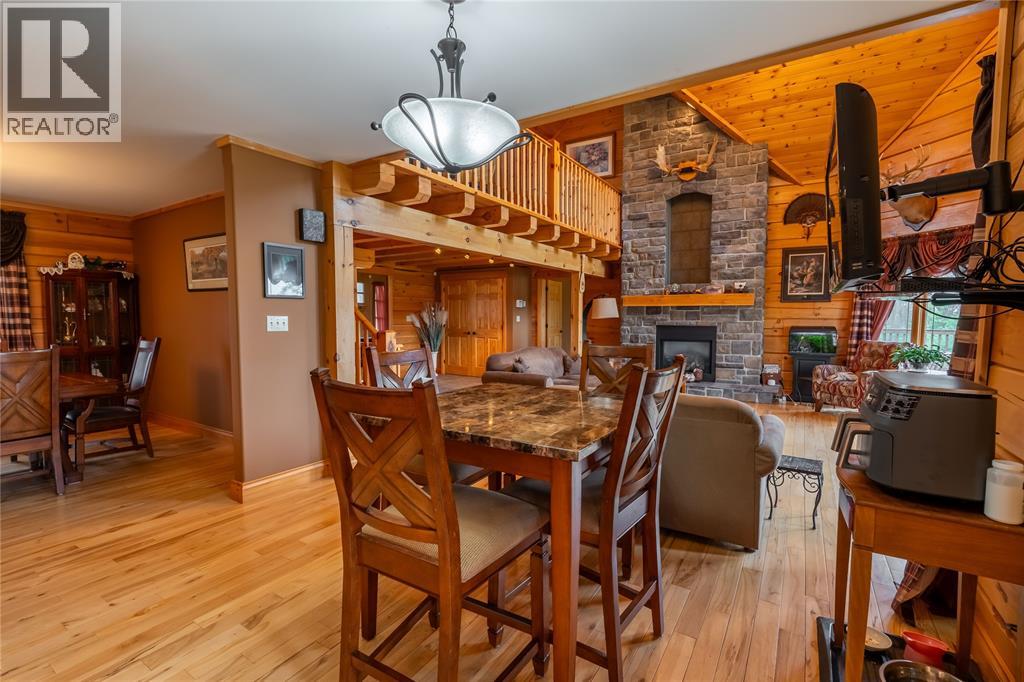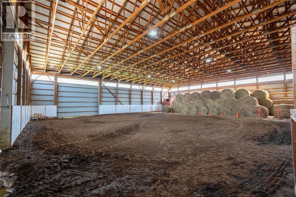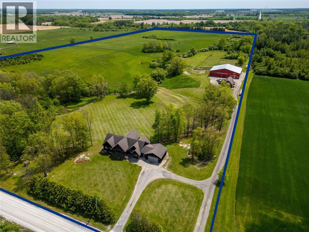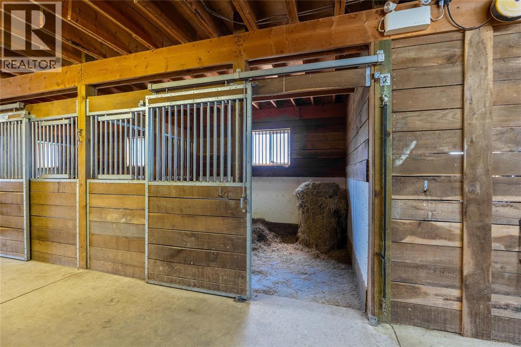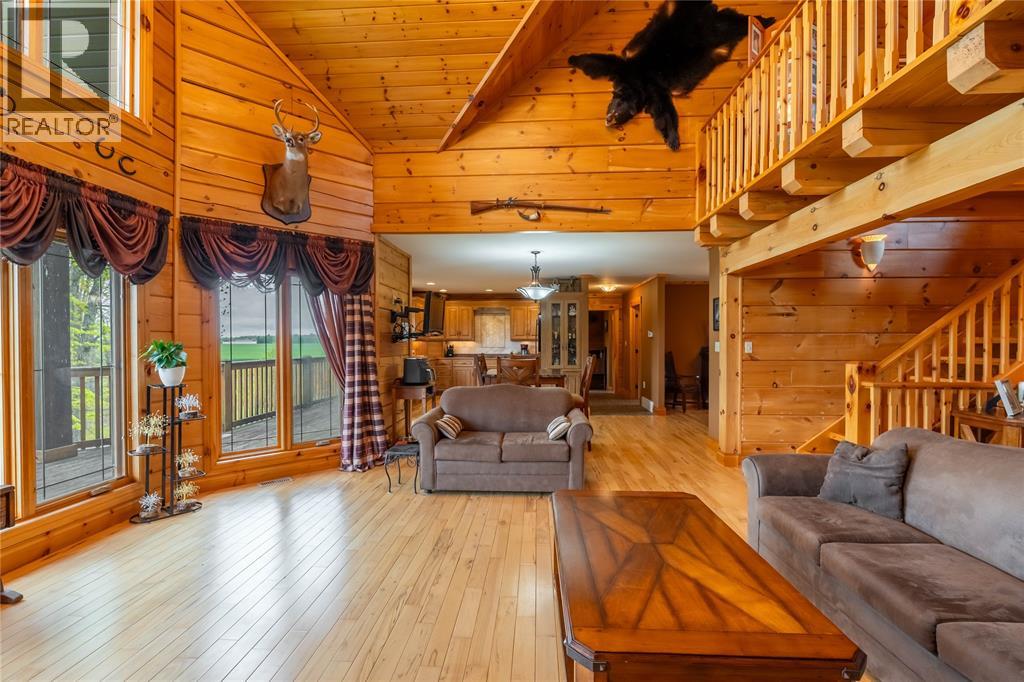 Introducing an exceptional country estate that captures the essence of luxury living amidst stunning rolling hills and breathtaking topography. This one-of-a-kind property spans 50 acres, featuring 30 workable acres, perfect for equestrian pursuits. The estate includes a remarkable horse barn equipped with 10 stalls, a wash stall, and 4 paddocks, complemented by multiple picturesque pasture fields. An impressive indoor arena, sized at 64 x 72, awaits both horses & riders. The centerpiece of this estate is the striking log home, designed to resemble a stylish chalet retreat. With 4 spacious bedrooms & 2 luxurious bathrooms, the interior showcases exquisite craftsmanship with wooden beams and gleaming wood finishes throughout. The main floor living area truly embodies the heart of the home, featuring a showstopper combination of expansive windows and a stunning stone fireplace with waterfall feature that creates a warm and inviting ambiance. The kitchen has abundant cabinetry, counter space & beautiful stone backsplash. The expansive back deck wraps around the entire rear of the house, providing a tranquil setting for outdoor dining and relaxation. The oversized master bedroom has a remarkable custom walk-in closet complete with cabinetry & shelving. The ensuite bathroom is a spa like retreat with elegant travertine tile, oversized shower & Jacuzzi tub.The second story offers an ideal sitting room that overlooks the main living area. Custom windows provide views not only of the living space below but also of the serene property, creating a seamless connection with nature, offering panoramic views of the picturesque surroundings. Cozy up by the floor-to-ceiling stone fireplaces in both the main living area & basement, where the walkout design provides easy access to the outdoors & entertaining. The spacious finished basement offers a large recreation room with in-floor heating, complete with a pool table along with a rough in wet bar, bathroom & 3 additional bedrooms. (id:64974)
