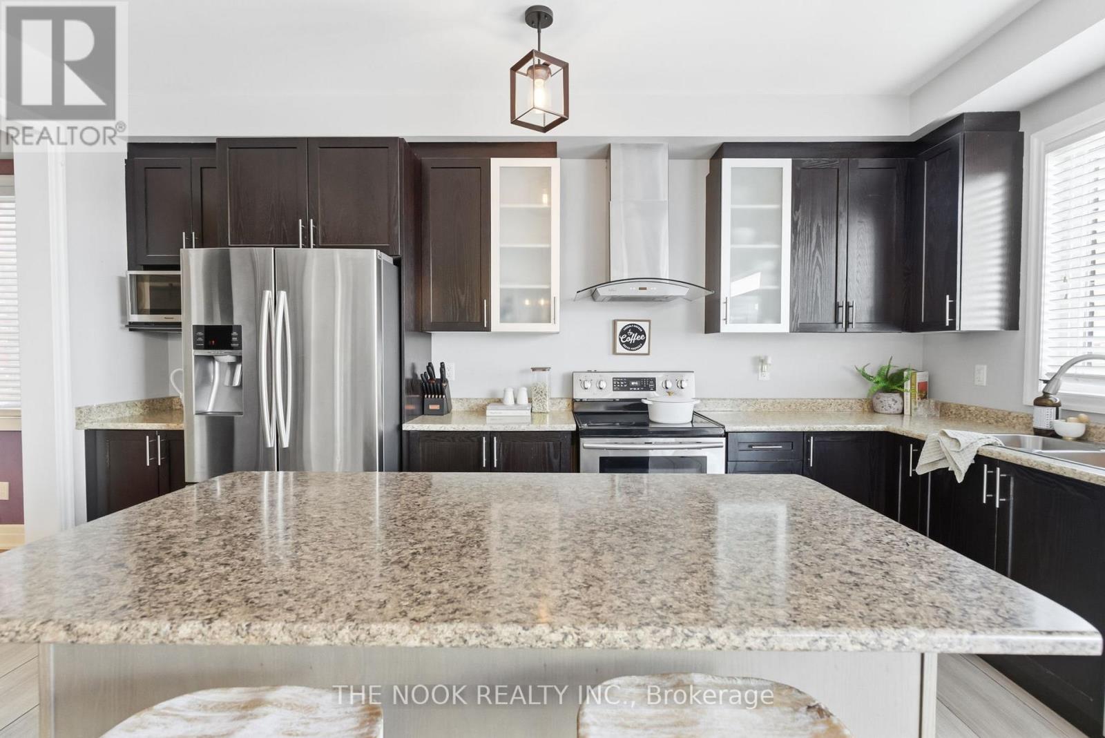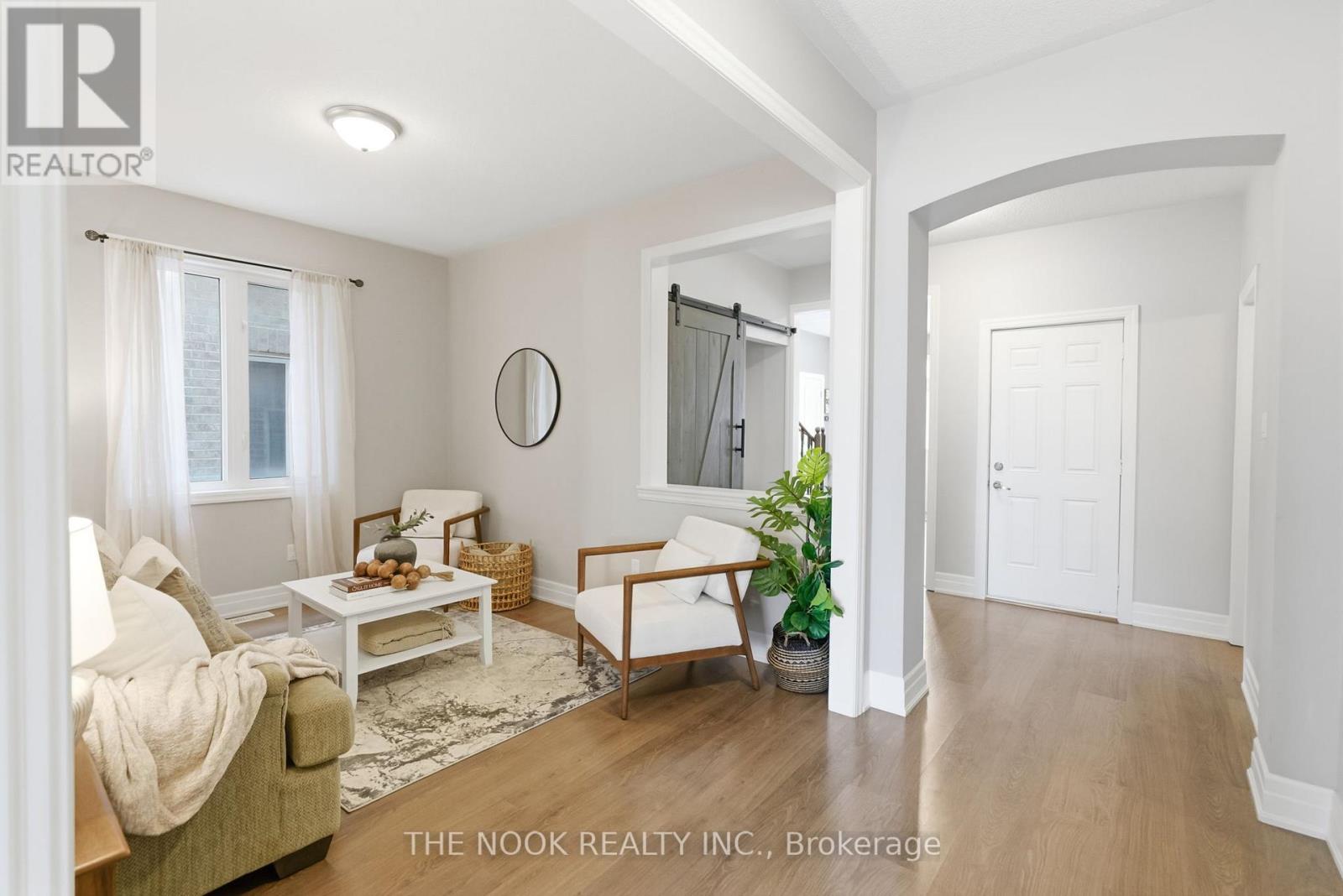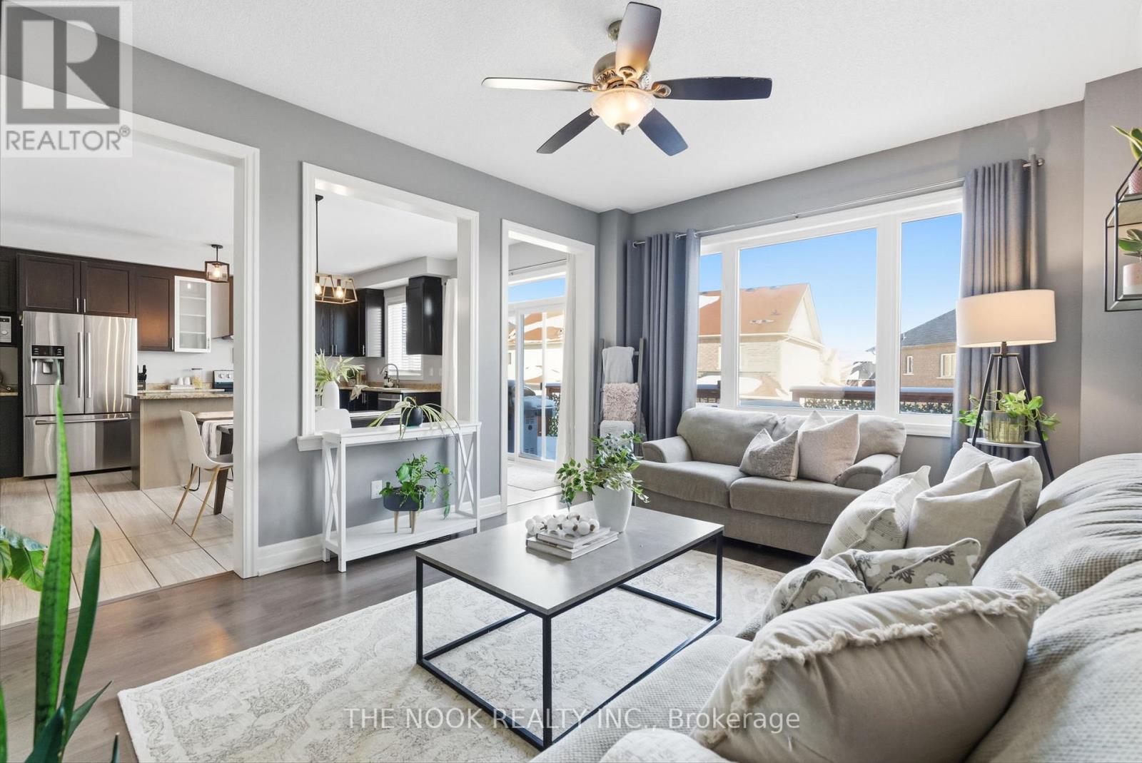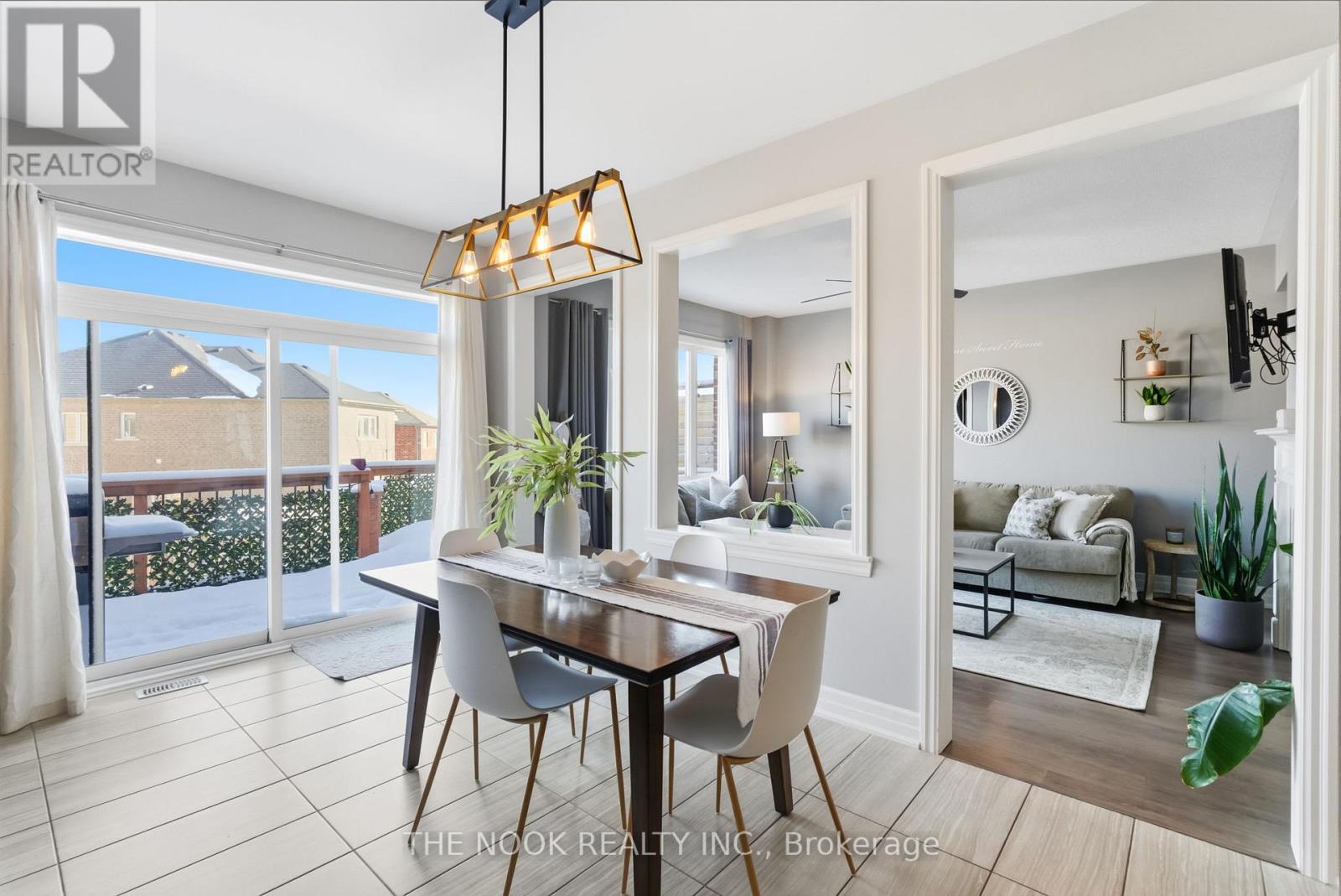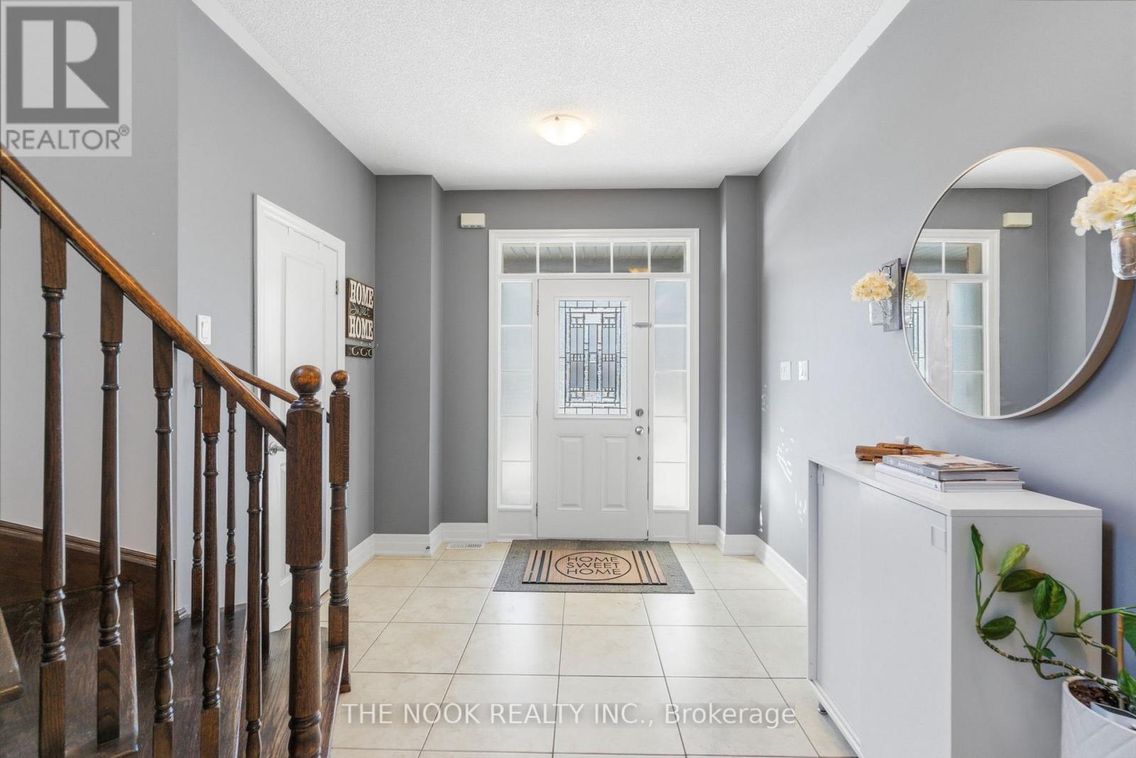 Welcome to this expansive and rarely offered layout, featuring a distinct side entrance with coat closet-ideal for in-law apartment conversion with approximately 1,360 sq. ft. of lower-level space-along with over 3,000 sq. ft. of above-grade living space, making this one of the only upgraded designs of its kind in the neighbourhood. This impressive 5+2 bedroom executive home offers exceptional scale and flexibility for growing or multigenerational families. The main level is thoughtfully designed for both everyday living and entertaining, featuring an open-concept living area, separate formal dining room, and an additional sitting room providing multiple living zones. Sunrises fill the kitchen with natural light, while morning coffees can be enjoyed on the deck off the breakfast area, and evenings on the front porch as the sun sets.The primary bedroom retreat features a spa-inspired ensuite with soaker tub, double shower, double vanity, and a large walk-in closet. A spacious secondary bedroom with walk-in closet shares a Jack-and-Jill (Juliet) bathroom with the adjacent bedroom. Upgraded extra larger powder room The lower level is ready for your imagination, currently used as a children's play area, and includes a kitchenette, two-piece bathroom, and rough-in for a stand-up shower. With two additional bedrooms and walk-out access to the backyard through patio doors, this space offers excellent potential for extended family use (subject to approvals). 4 Car driveway with no sidewalk to shovel. Located in a family-friendly prestigeous Windfield Farms neighbourhood, close to shopping, dining, parks, schools, Ontario Tech University, Durham College, Costco and with easy access to Highway 407-an exceptional opportunity for families seeking space, flexibility, and long-term value. (id:64974)