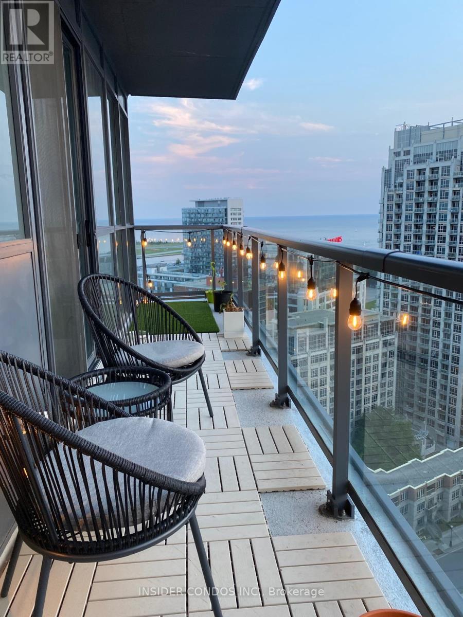 Sunrise and sunset views with stunning 180 southwest exposure through floor-to-ceiling windows fill this bright and beautifully updated suite. Featuring renovated flooring throughout, an upgraded kitchen, and a stylish coffee bar, this unit offers both comfort and modern appeal. Ideally located next to Fort York, Billy Bishop Airport, parks, Loblaws, LCBO, with easy access to highways and public transit for ultimate convenience. Second parking space available for rent. (id:64974)