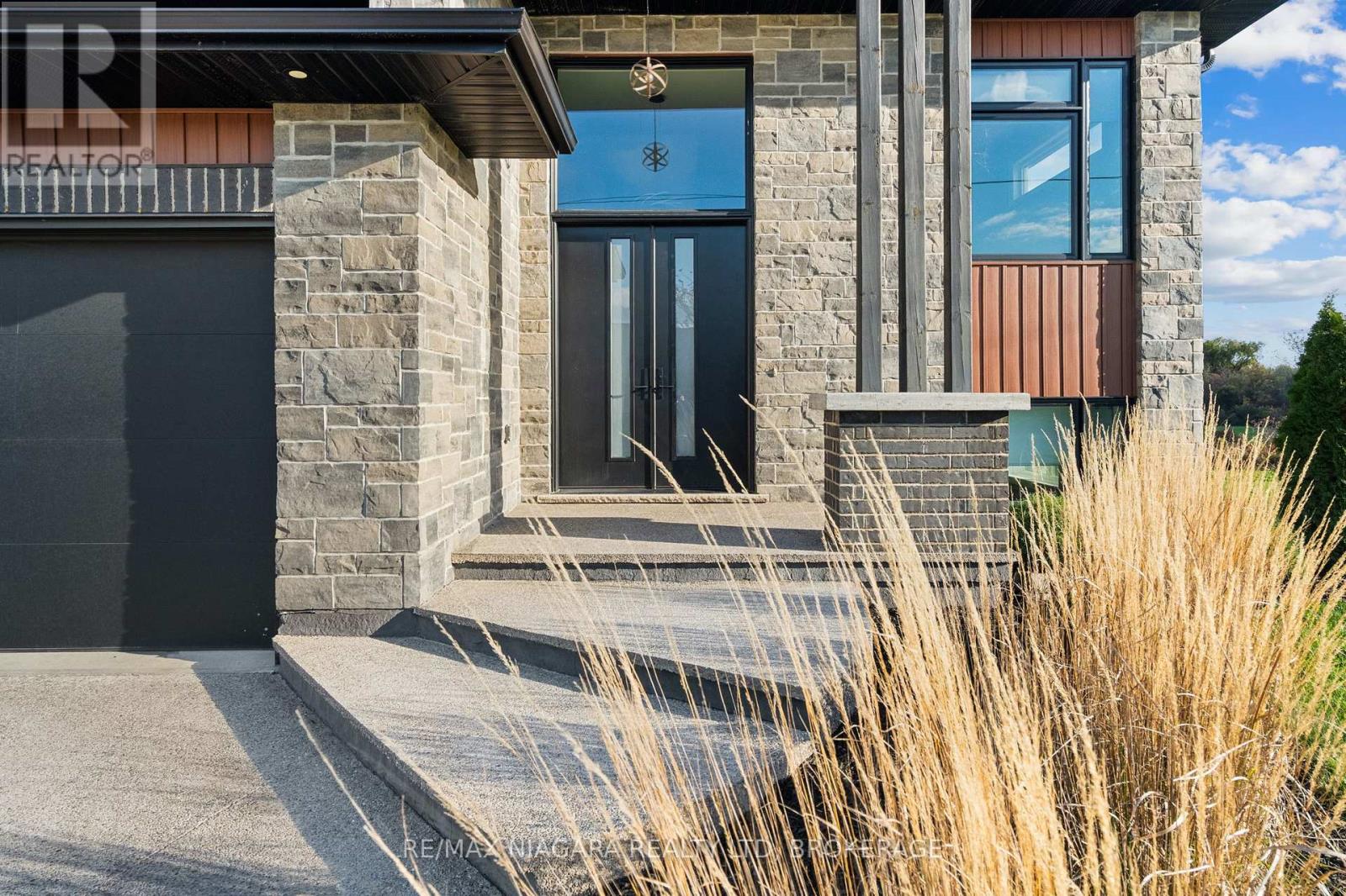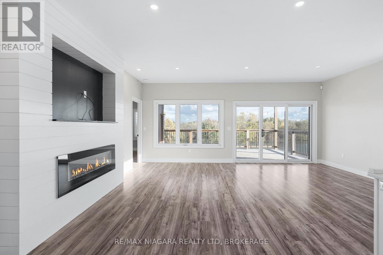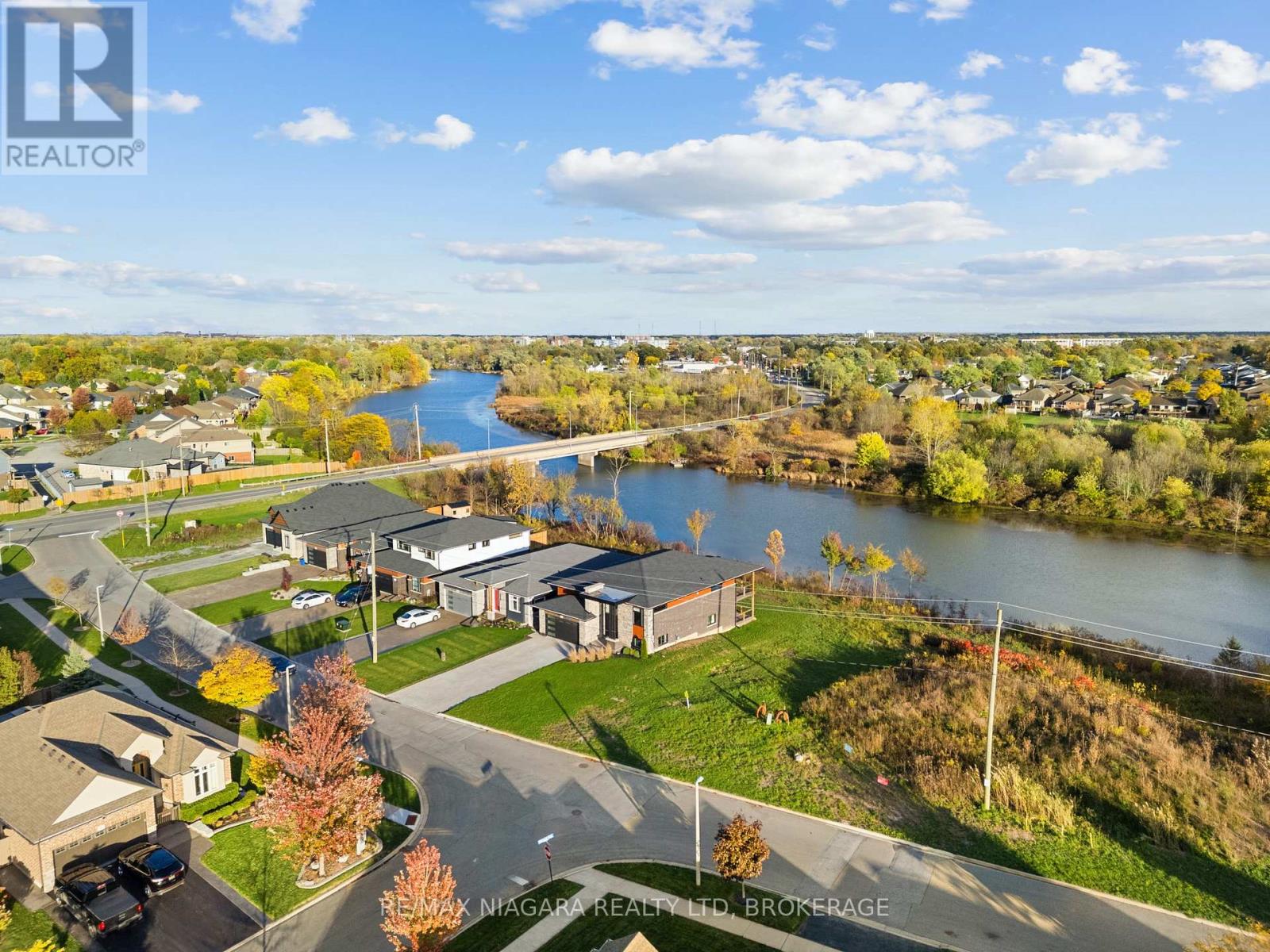 Luxury waterfront living on the Welland River. This exceptional raised bungalow offers 2+2 bedrooms, 2+1 bathrooms, and over 2,600 sq. ft. of beautifully finished living space thoughtfully designed to accommodate multi-generational living while maintaining comfort and style.The bright, open-concept main level features a custom kitchen with quartz island, a spacious great room with a wall-mounted fireplace, and direct access to a covered deck overlooking a stunning riverbend view. The primary suite provides a private retreat with a spa-inspired ensuite, complete with a walk-in glass and tile shower and a freestanding soaker tub. The fully finished walkout lower level offers a self-contained living area with a full kitchen, two bedrooms, a 3-piece bathroom, and a large recreation space with direct access to the waterfront patio-ideal for extended family or guests. Elegant finishes throughout - rare opportunity to enjoy modern living in a tranquil waterfront setting in Niagara. (id:64974)