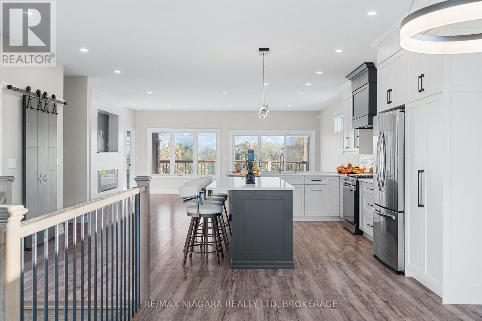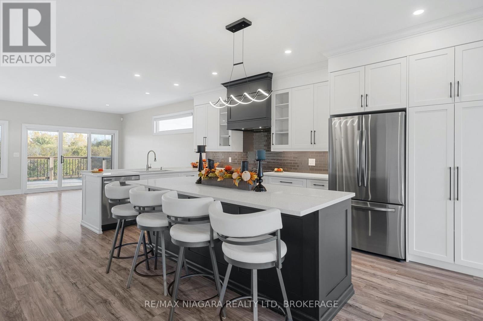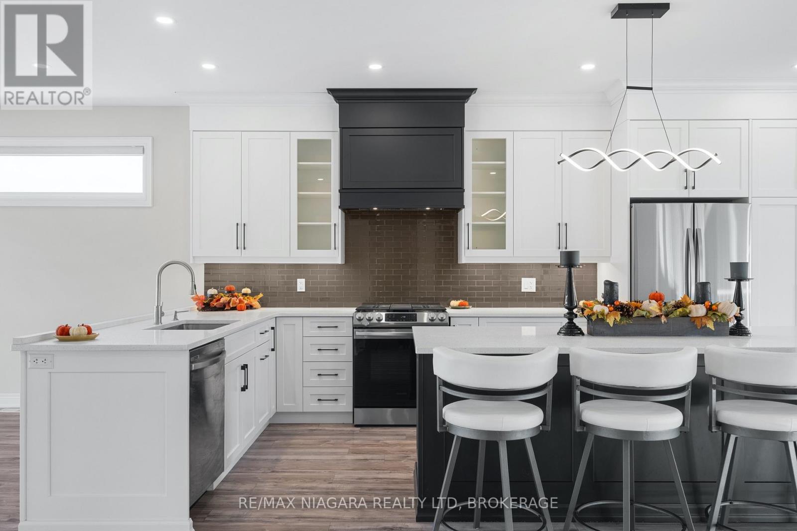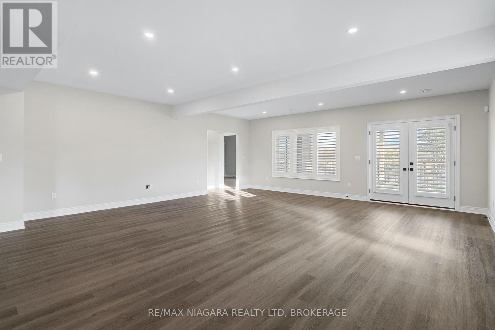 Luxury waterfront living on the Welland River. This exceptional raised bungalow offers 2+2 bedrooms, 2+1 bathrooms, and over 2,600 sq. ft. of beautifully finished living space thoughtfully designed to accommodate multi-generational living while maintaining comfort and style.The bright, open-concept main level features a custom kitchen with quartz island, a spacious great room with a wall-mounted fireplace, and direct access to a covered deck overlooking a stunning riverbend view. The primary suite provides a private retreat with a spa-inspired ensuite, complete with a walk-in glass and tile shower and a freestanding soaker tub. The fully finished walkout lower level offers a self-contained living area with a full kitchen, two bedrooms, a 3-piece bathroom, and a large recreation space with direct access to the waterfront patio-ideal for extended family or guests. Elegant finishes throughout - rare opportunity to enjoy modern living in a tranquil waterfront setting in Niagara. (id:64974)