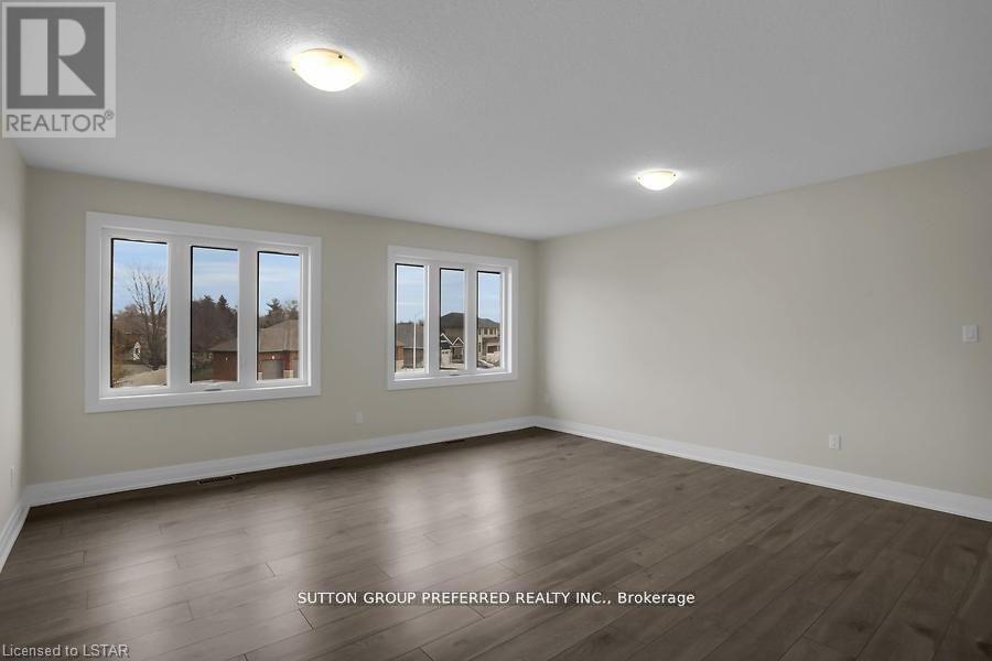 Stunning executive 2-storey with 5 bedrooms& 4 bathrooms is on a premium pie shaped lot backing onto farmland! This brick & stone 2851 sqft family home with 3 car attached garage is ready to move in! Tastefully designed with high quality finishing, this home features an open concept floor plan. Great room showcases the electric fireplace. Quartz countertops in bright kitchen and bathrooms. 4-pc ensuite with large glass corner shower & 2 sinks and walk-in closet off main bedroom. Convenient second floor laundry with cupboards. Impressive 9ft ceilings, 8ft doors, beautiful luxury plank vinyl & gleaming tile floors. Desirable location in Highland Estate subdivision close to park, walking path, rec centre, shopping, library, splash pad, pickle ball court, & public school with quick access to the 401. Move in and enjoy this family home. Other new homes for sale - contact listing agent. (id:64974)