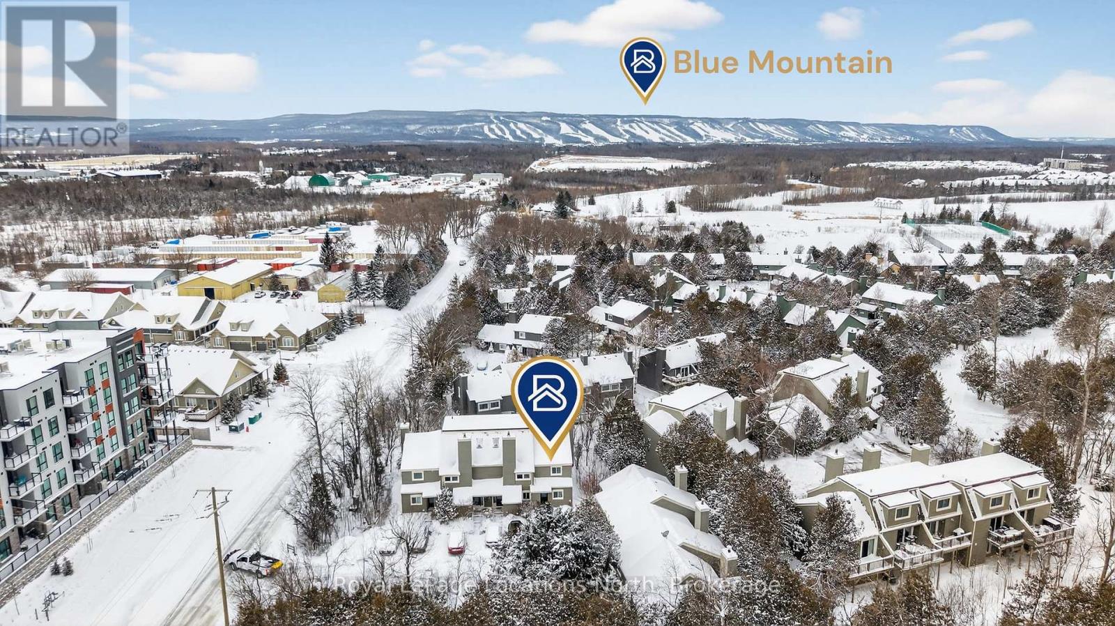 Welcome to 253-13 Harbour Street West. This 2-bedroom, 1-bath townhouse condo is nestled among the mature trees of Cranberry, where convenience meets comfort for year-round living and weekend getaways. The home features a reverse floor plan, with an abundance of natural light in the upper-level living area. Vaulted ceilings, a wood-burning fireplace, and a walkout to a spacious rear deck overlooking peaceful woodlands create a warm and inviting space to relax or entertain. The ground level offers two sizeable bedrooms and a 4-piece bathroom, providing a practical and comfortable layout. Enjoy easy access to all that Collingwood has to offer, with shopping, dining, and Cranberry Golf Course just a short walk away. Whether you're envisioning a cozy weekend escape or a year-round home, this property provides the perfect foundation to make it your own. Book your private showing today! (id:64974)