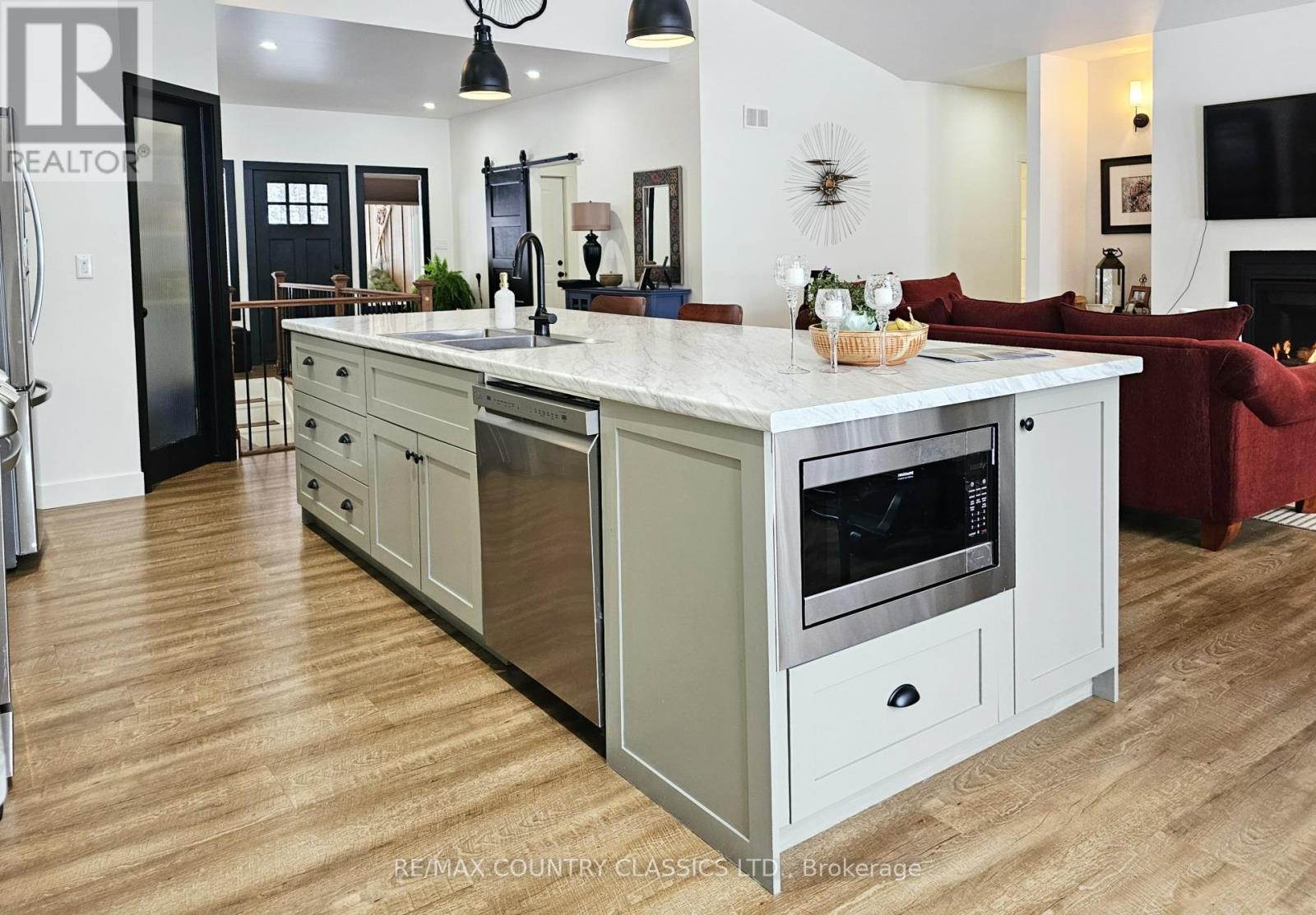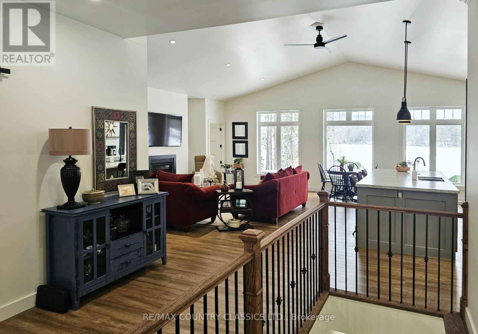 Executive waterfront home on Halfway Lake in the Kasuby area of the Madawaska Valley. The property has 2 bedrooms and 2 bathrooms, plus an unfinished lower level of over 1,600 sq. ft. that can be developed for additional living space and sleeping areas. The lake is spring-fed with clear water. There is 150 feet of natural sandy shoreline with gradual entry, suitable for children and older adults. The home faces south for consistent sunlight throughout the day and offers a good level of privacy.Additional features include a spacious side sunporch on the west side and a large rear deck at the back entrance, suitable for morning or evening use. The primary bedroom includes a walk-in closet and a large 3-piece ensuite, with views of the waterfront. The guest bedroom is located near a separate 3-piece bathroom, with a wide hallway for easy access. The main floor includes a laundry area with extra storage and direct access to the garage. Suitable as a year-round residence or waterfront retreat. (id:64974)